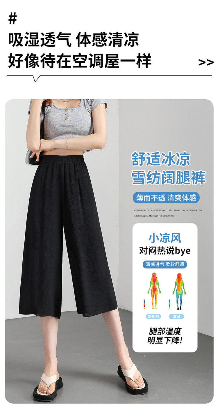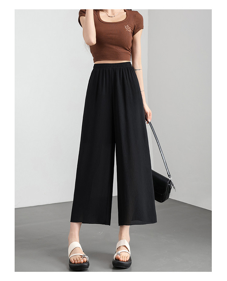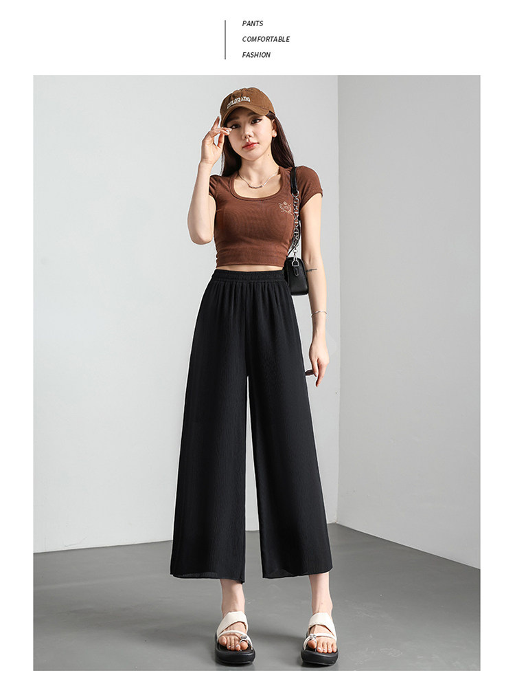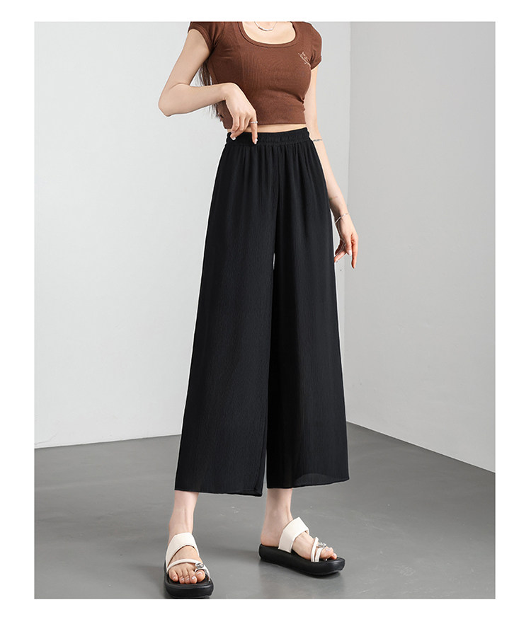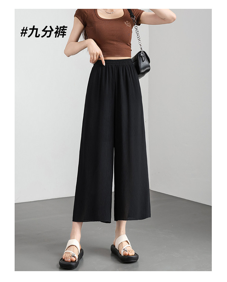 Chiffon wide-leg pants for women summer thin 2026 new high-waist drape nine-point casual ice silk cropped pants for small people