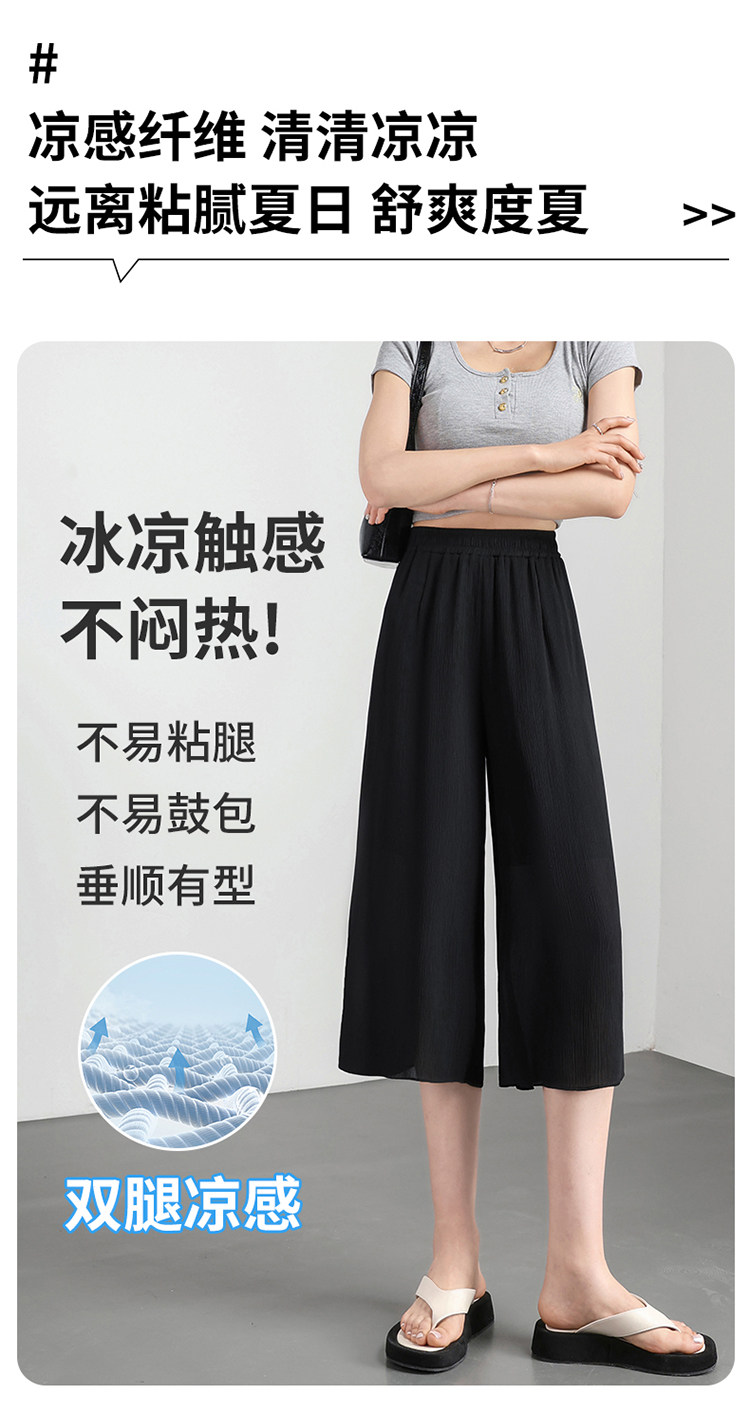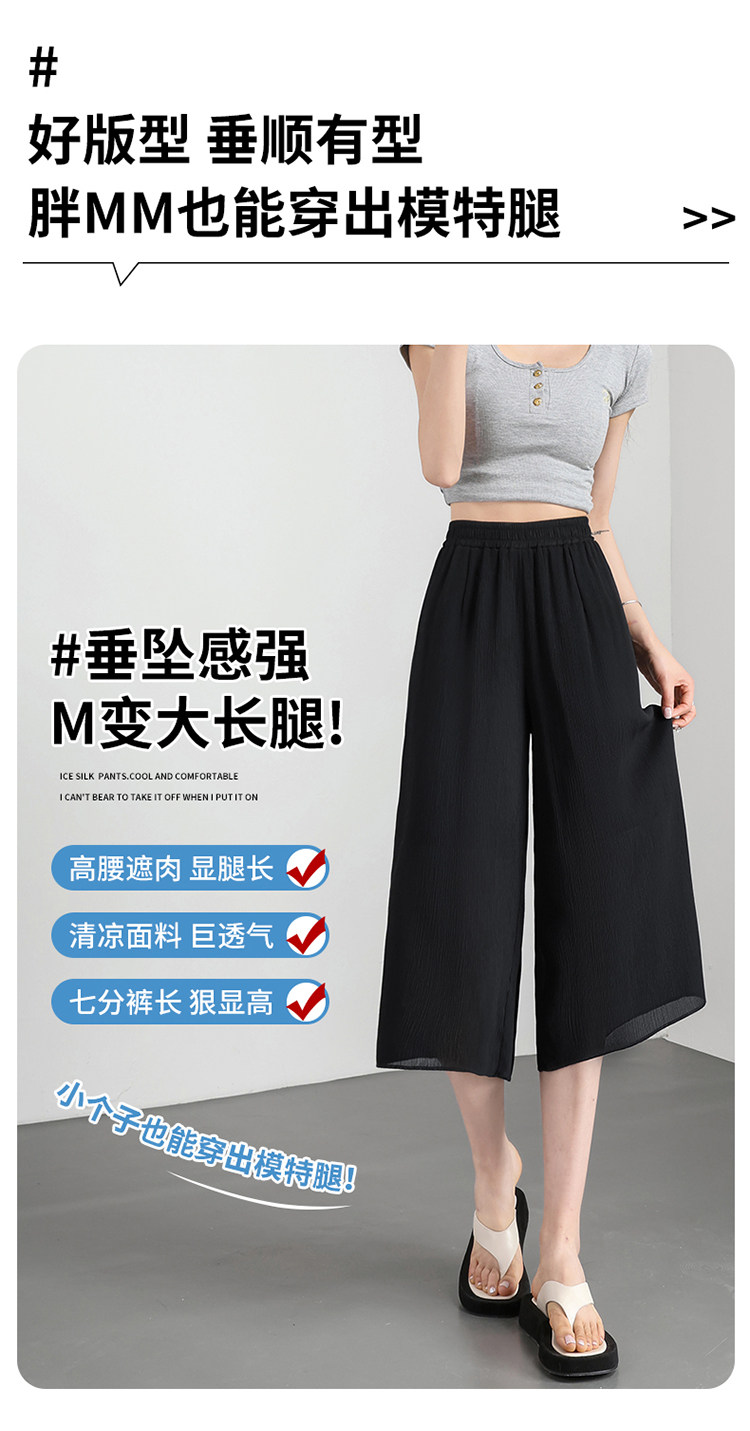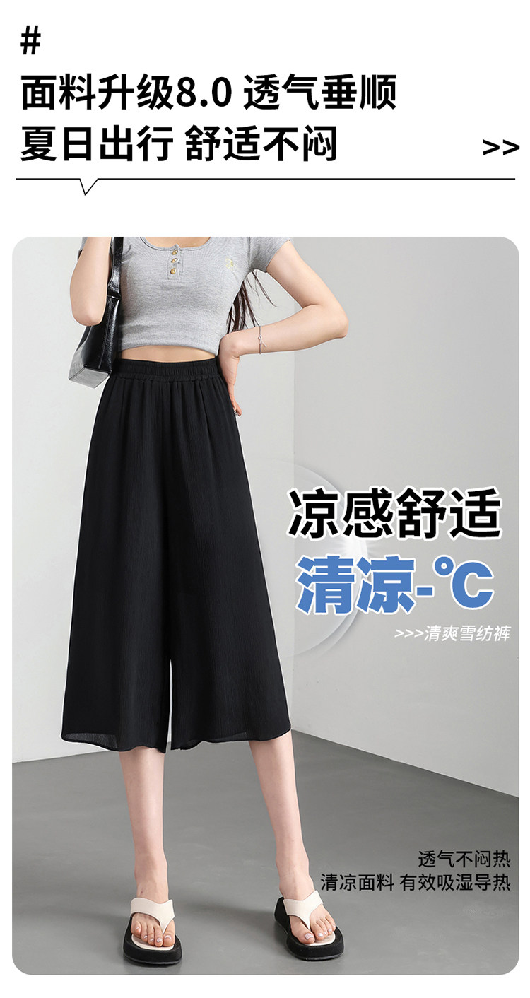 Chiffon wide-leg pants for women summer thin 2026 new high-waist drape nine-point casual ice silk cropped pants for small people