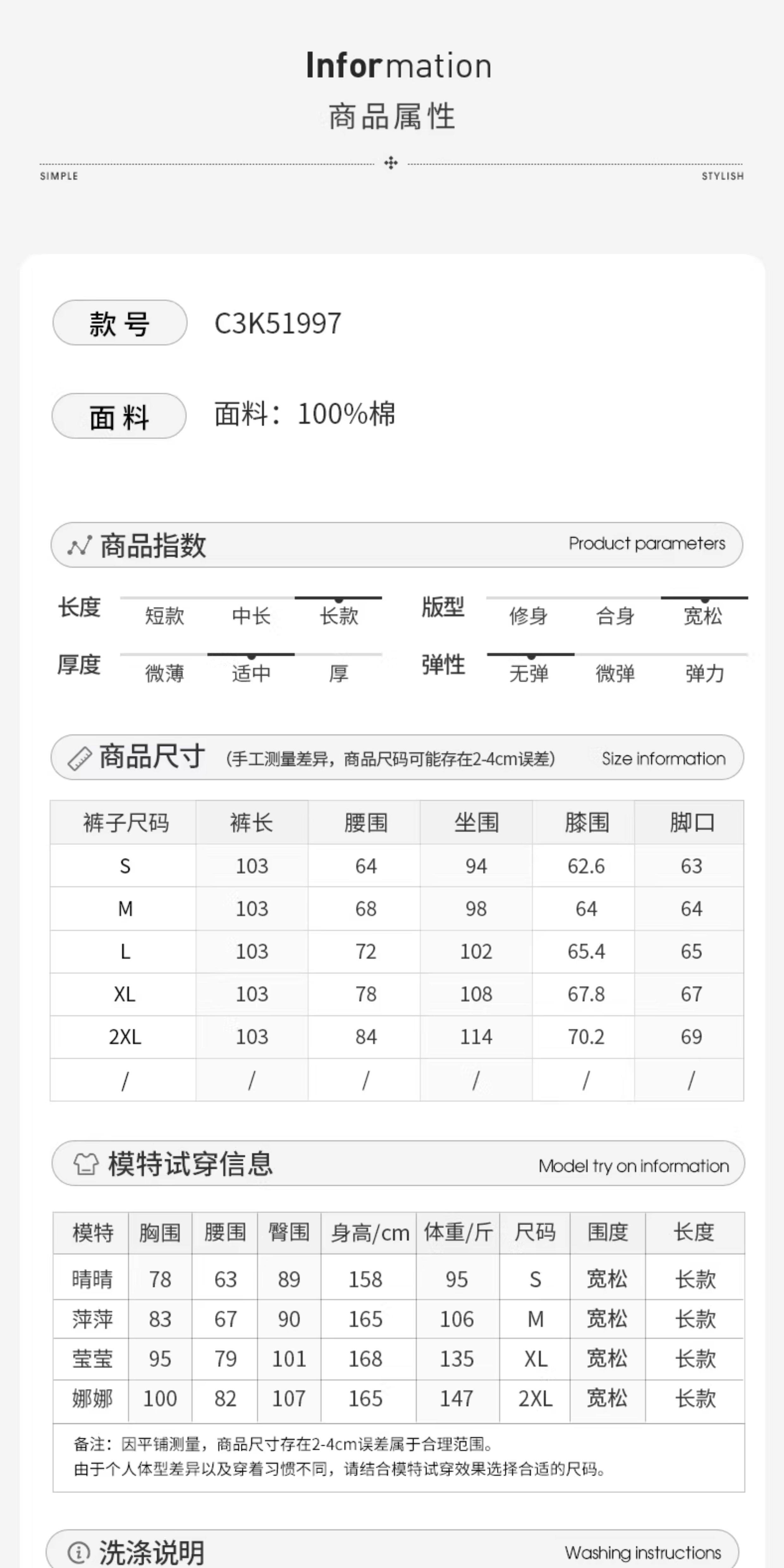 Outseam (cm) 99 cm 101.5 cm 104 cm 106.5 cm 109 cm