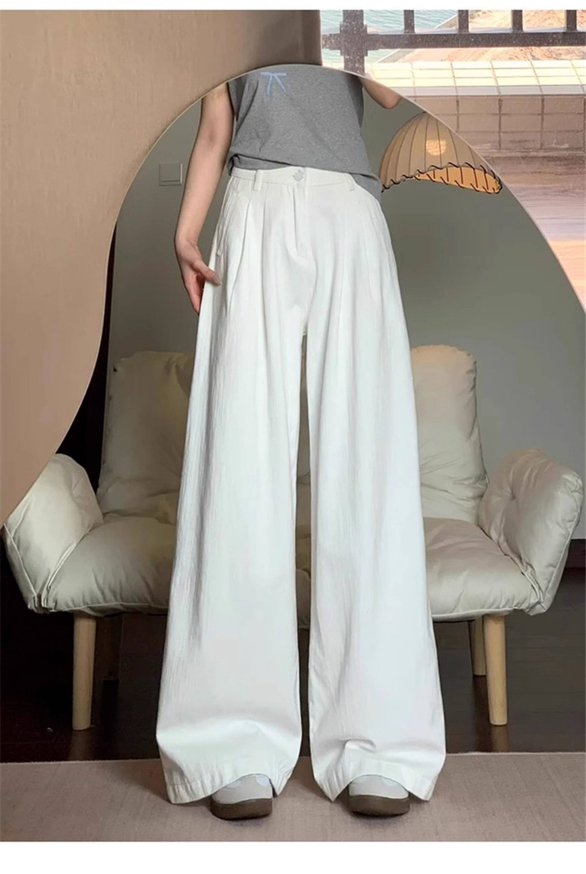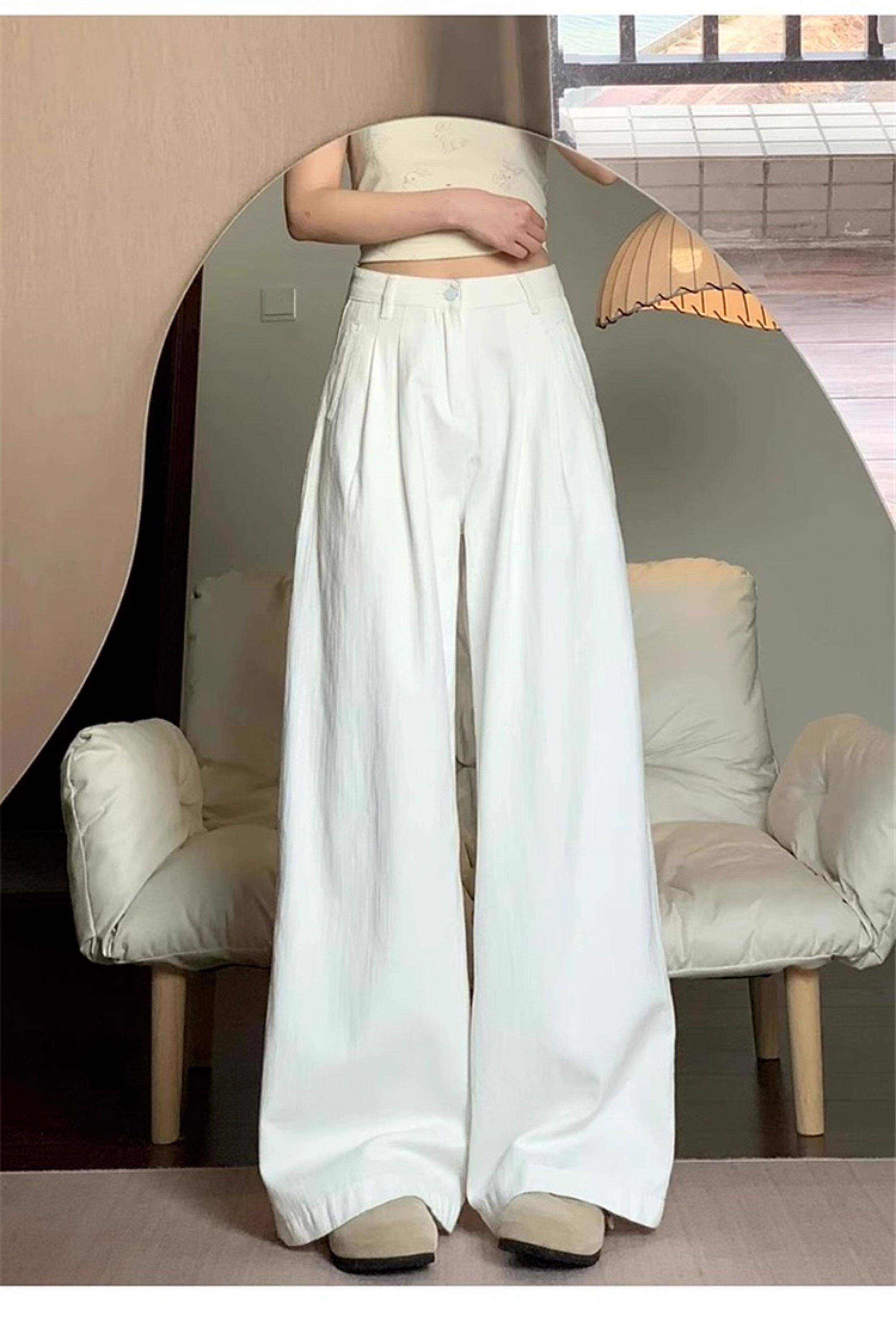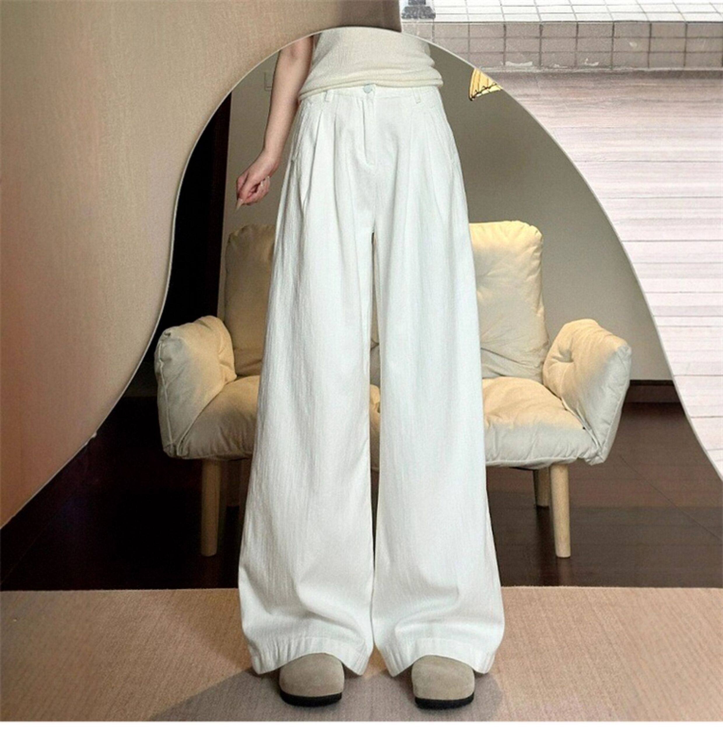 American Retro White Wide Leg Pants Women's 2026 New Summer High Waist Slim Loose Drape Casual Straight Pants