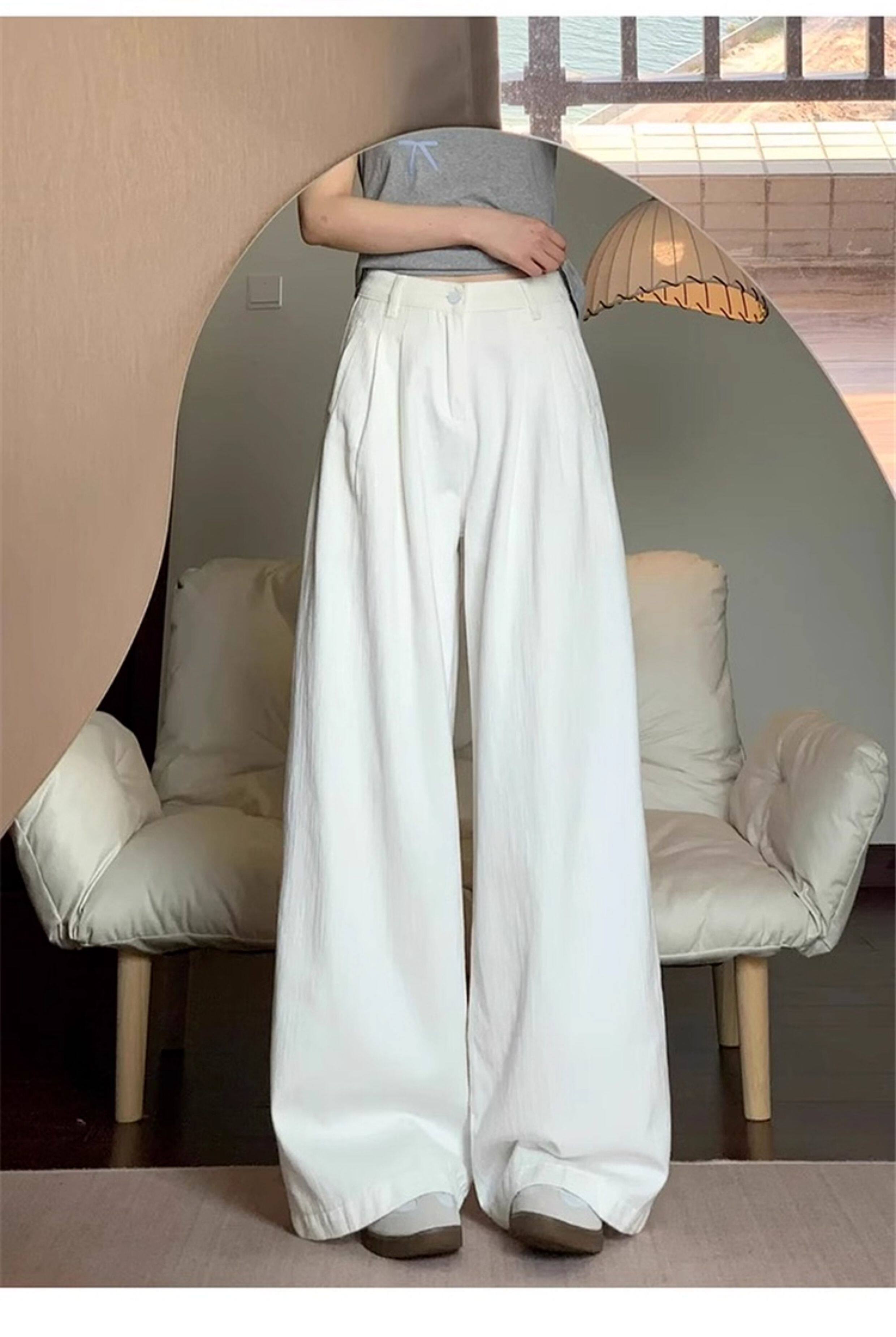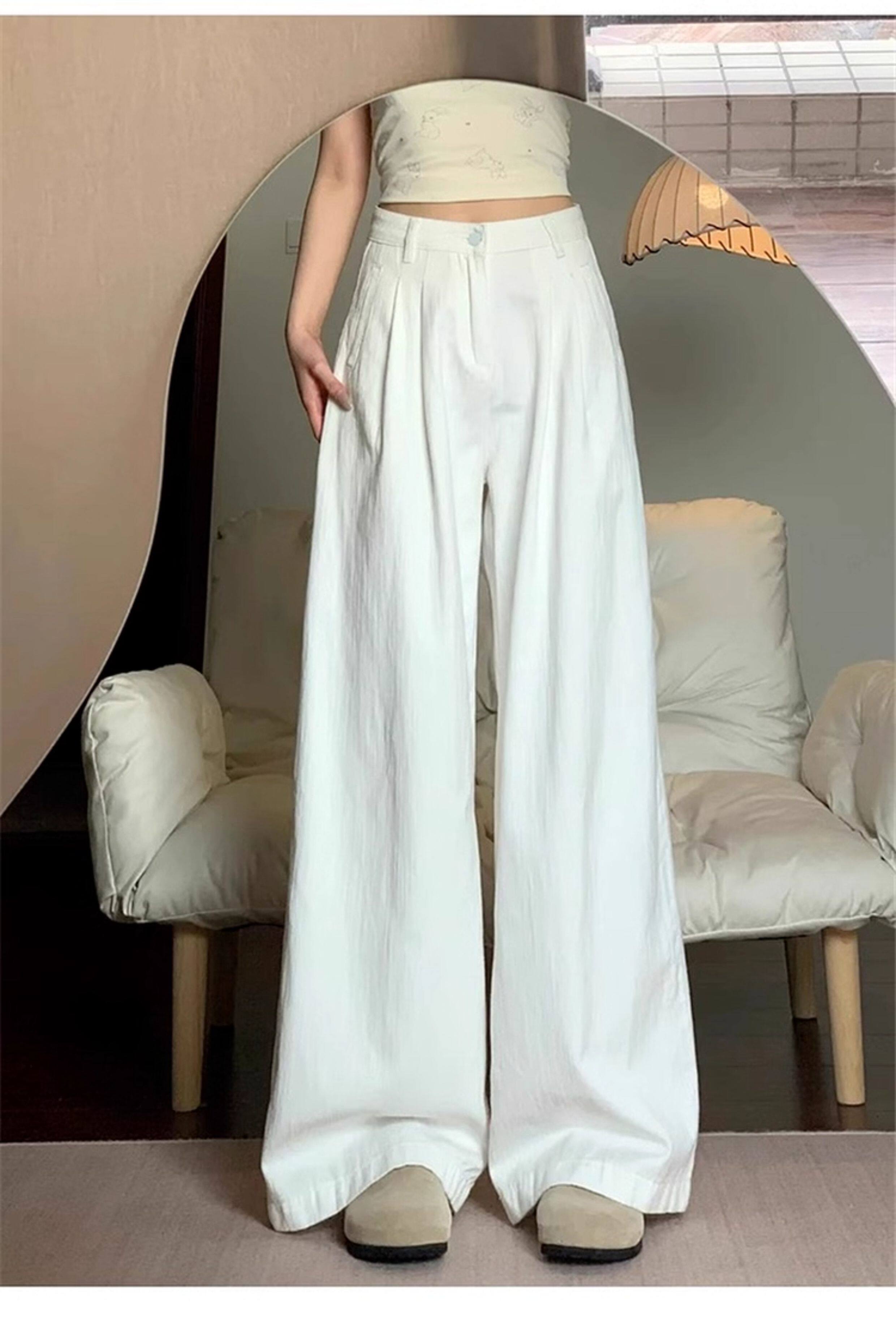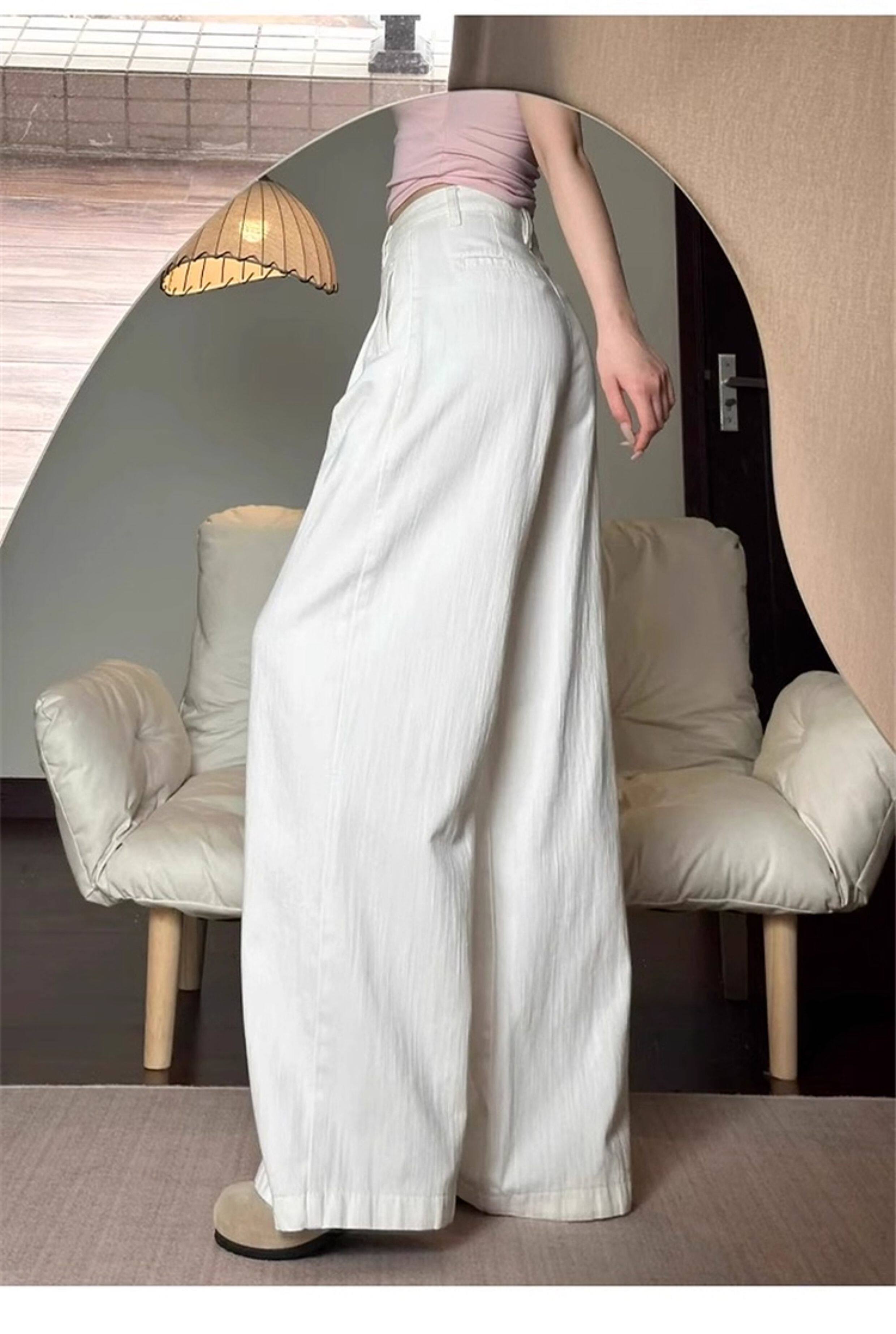 American Retro White Wide Leg Pants Women's 2026 New Summer High Waist Slim Loose Drape Casual Straight Pants