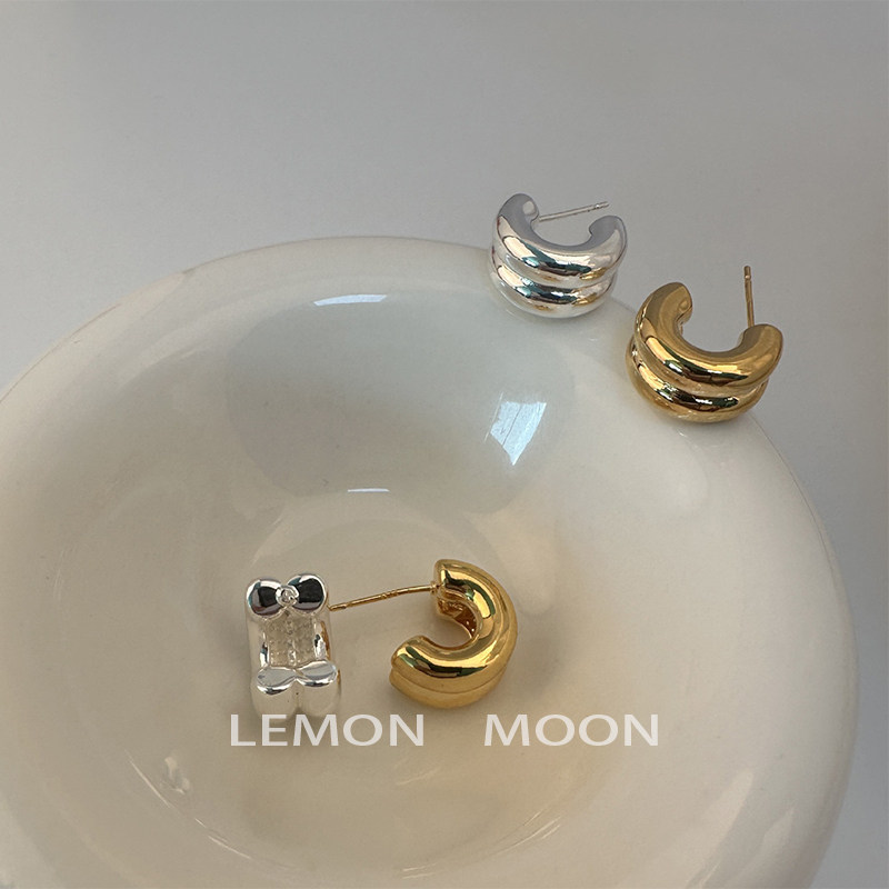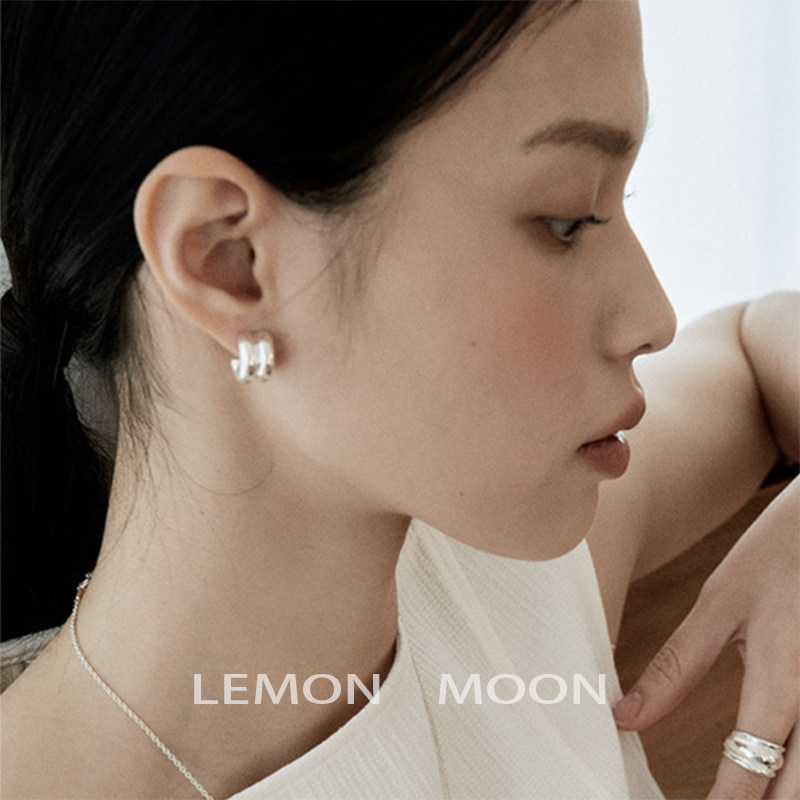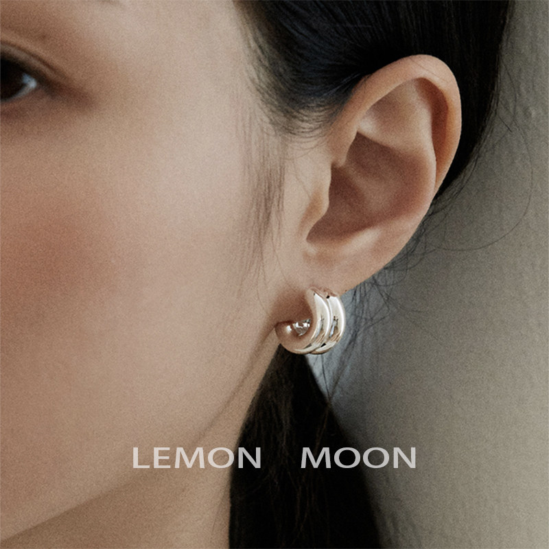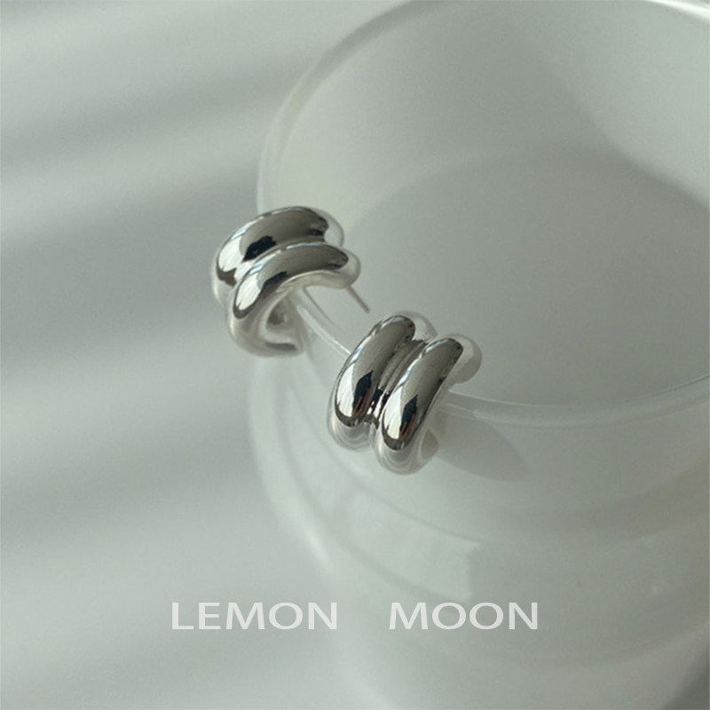 Cool feeling, high-end ins cool style double-layer c-shaped earrings for women, niche design, exquisite and fashionable mosquito coil disc ear clips