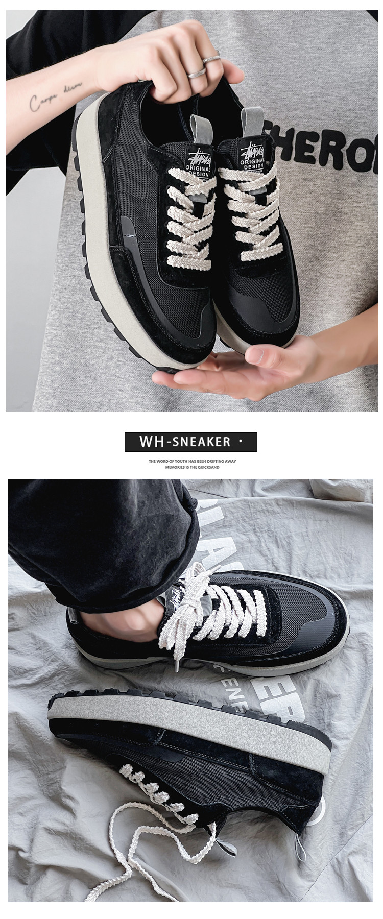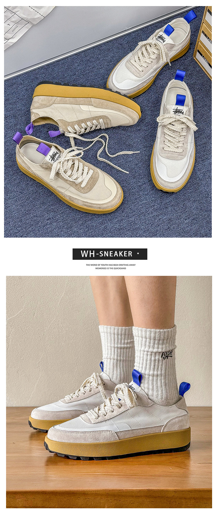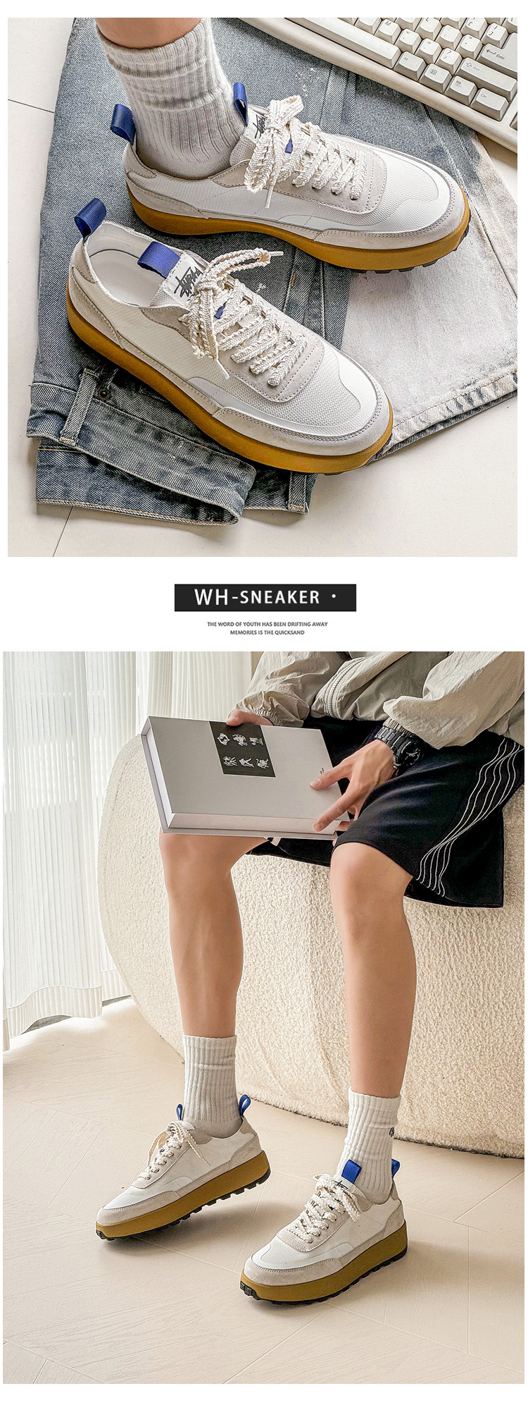 De Xun Men's Shoes, New Summer Model, Mesh Breathable Sneakers, Thick-Soled, Lightweight, Soft-Soled, Retro Casual White Sneakers