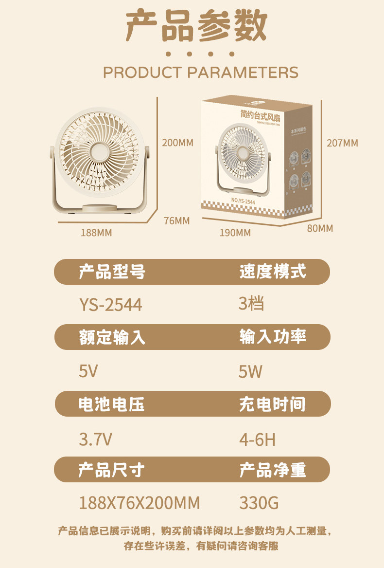 Desktop High Wind Brushless Fan USB Charging Desktop Portable College Student Dormitory Office Bedside 6inch Silent