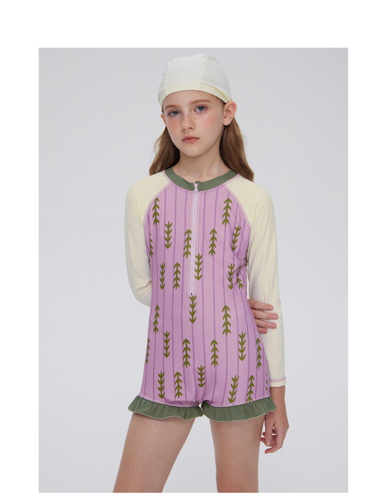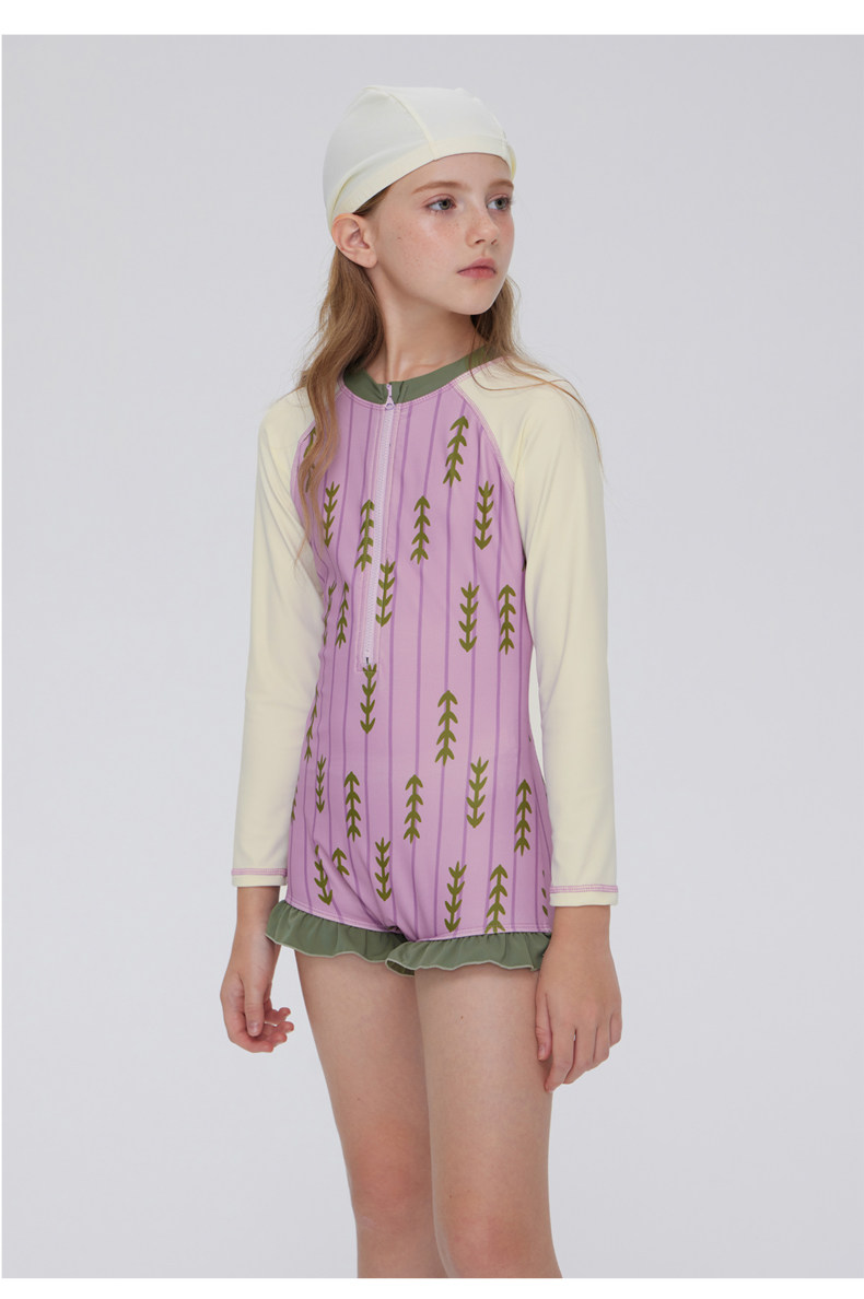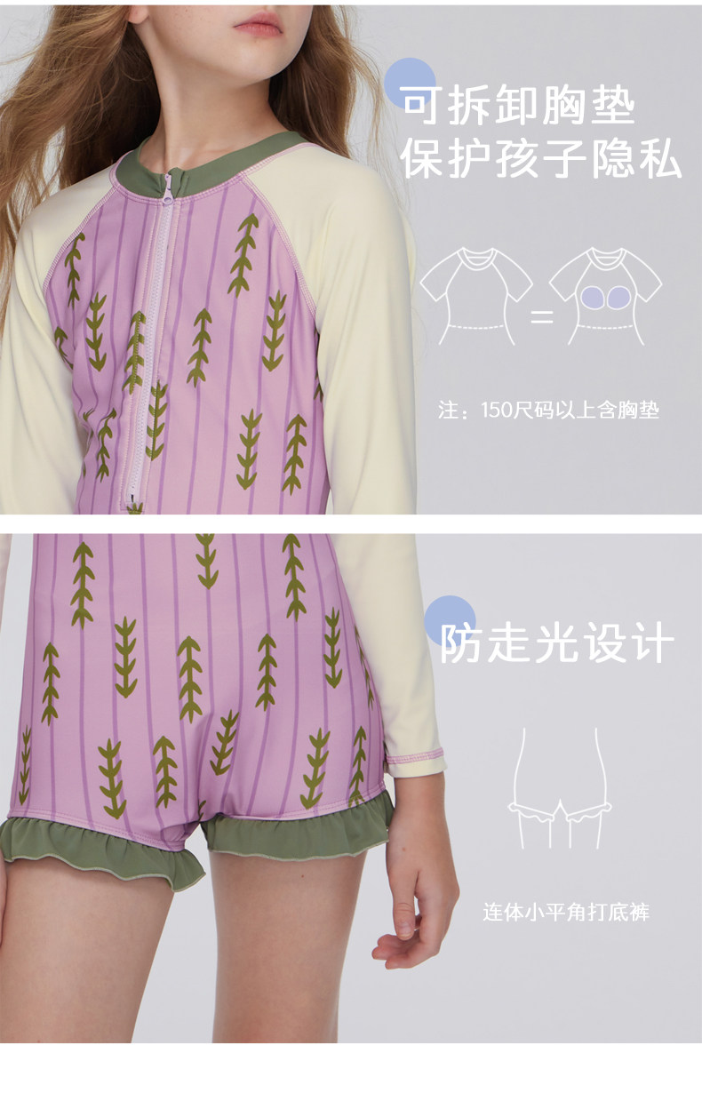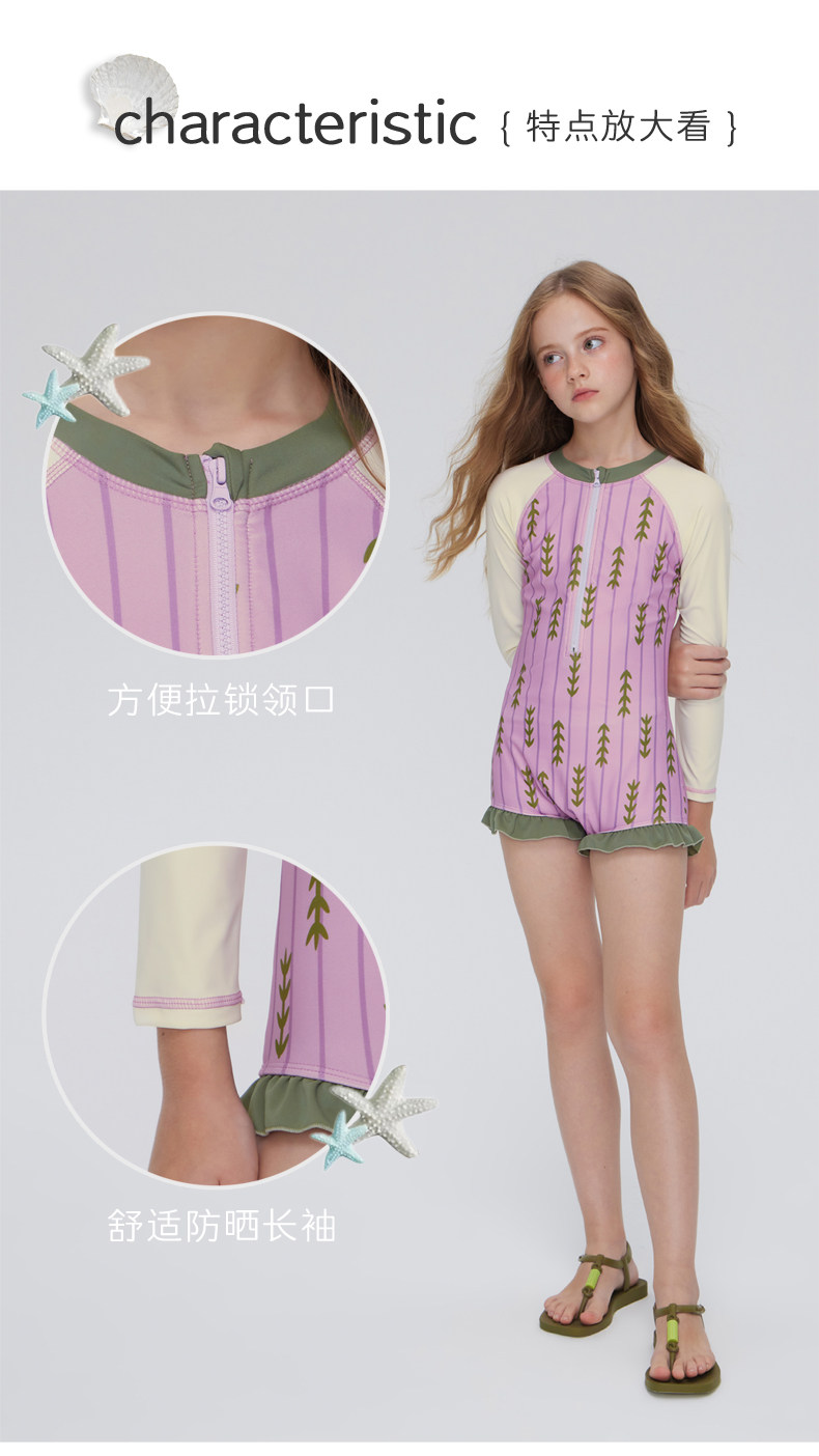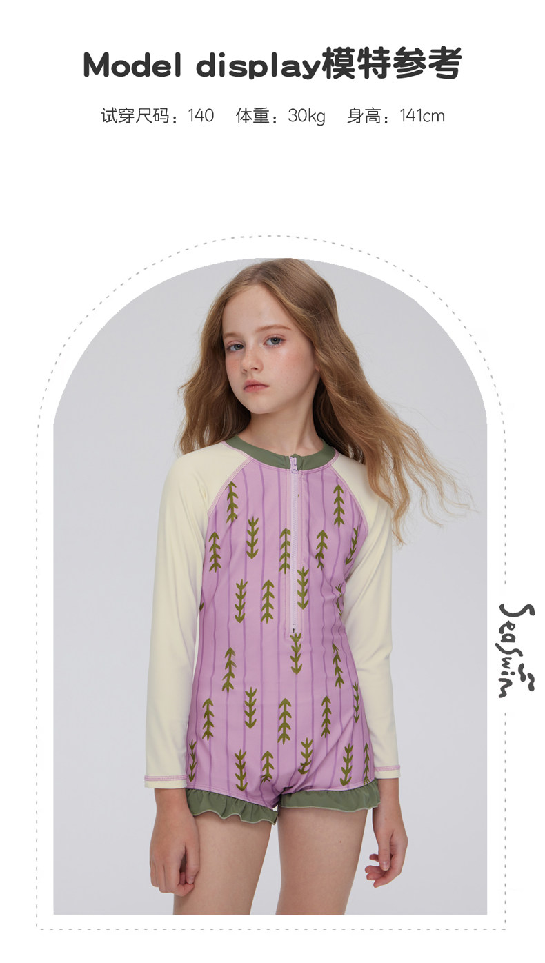 2026 New Style Girls' Swimsuit, One-Piece Long-Sleeved Conservative Swimsuit for Older Children, with Chest Pads for Junior High School Students
