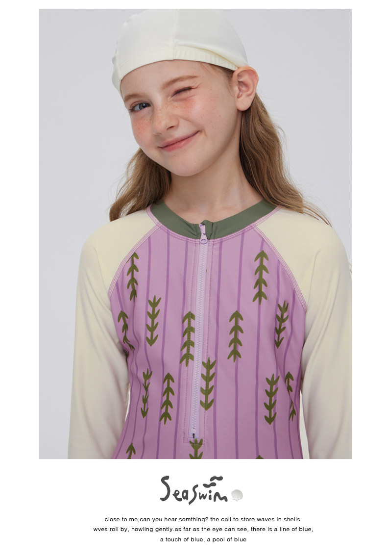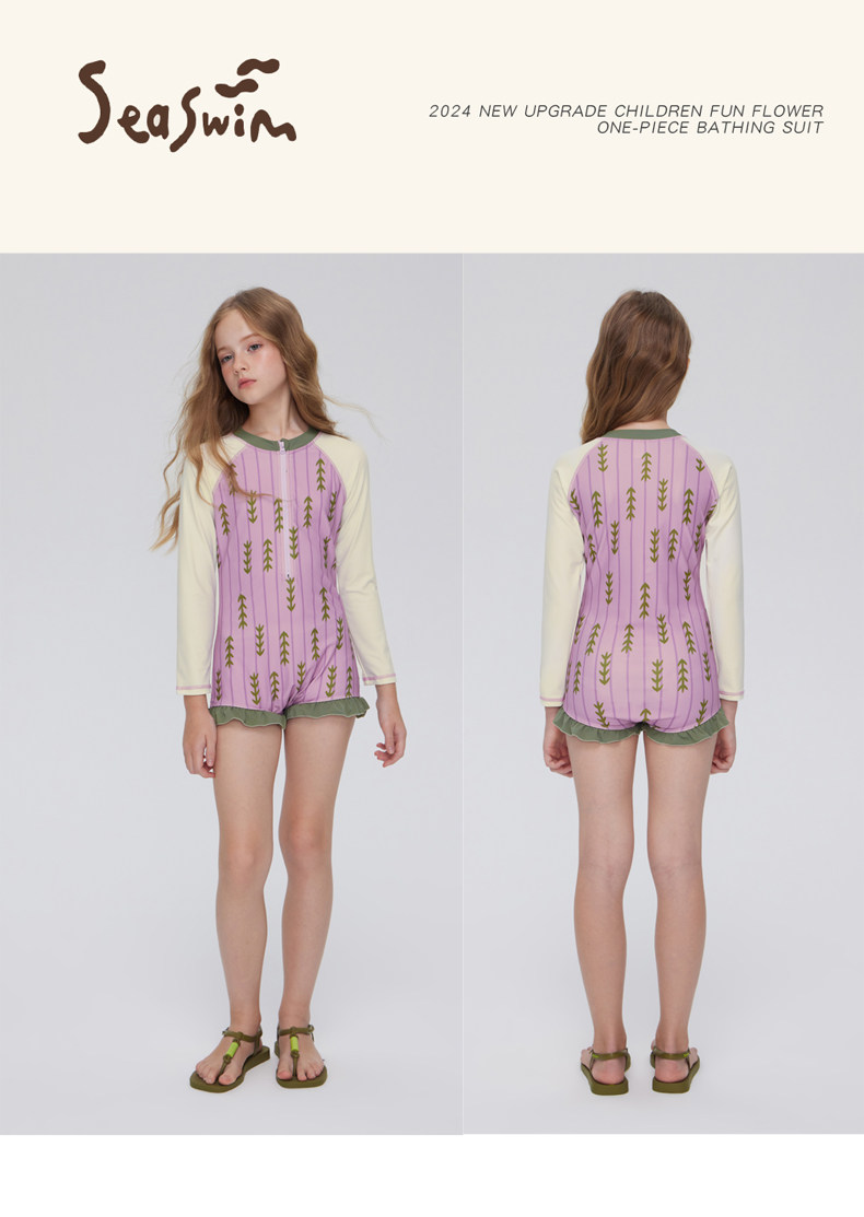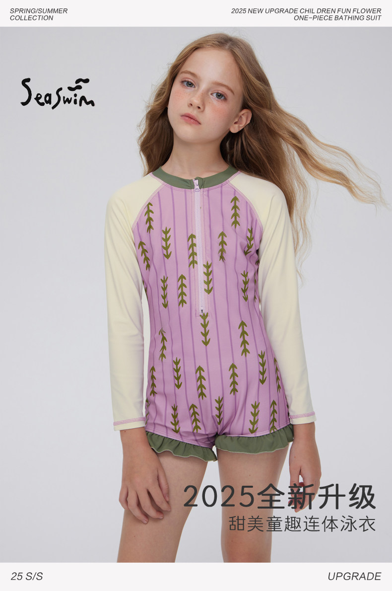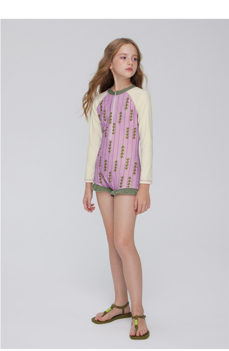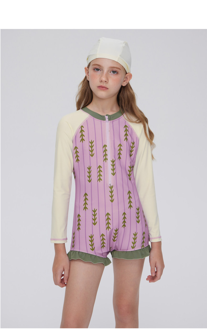 2026 New Style Girls' Swimsuit, One-Piece Long-Sleeved Conservative Swimsuit for Older Children, with Chest Pads for Junior High School Students