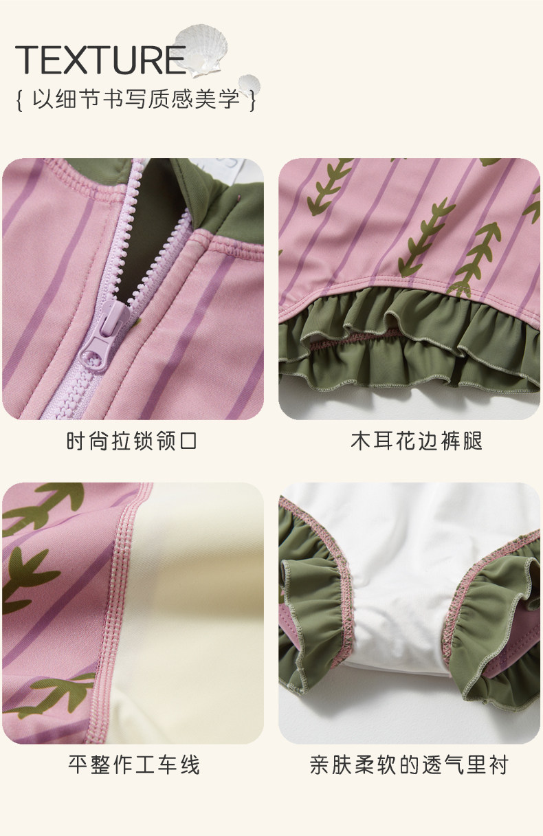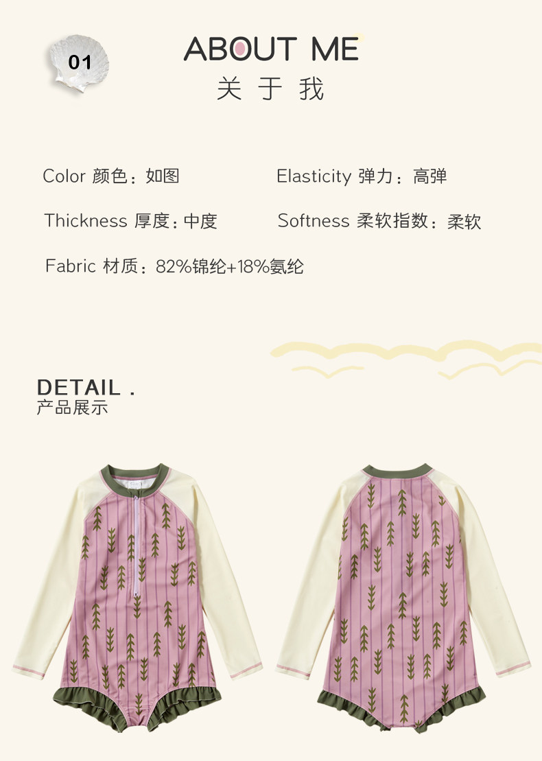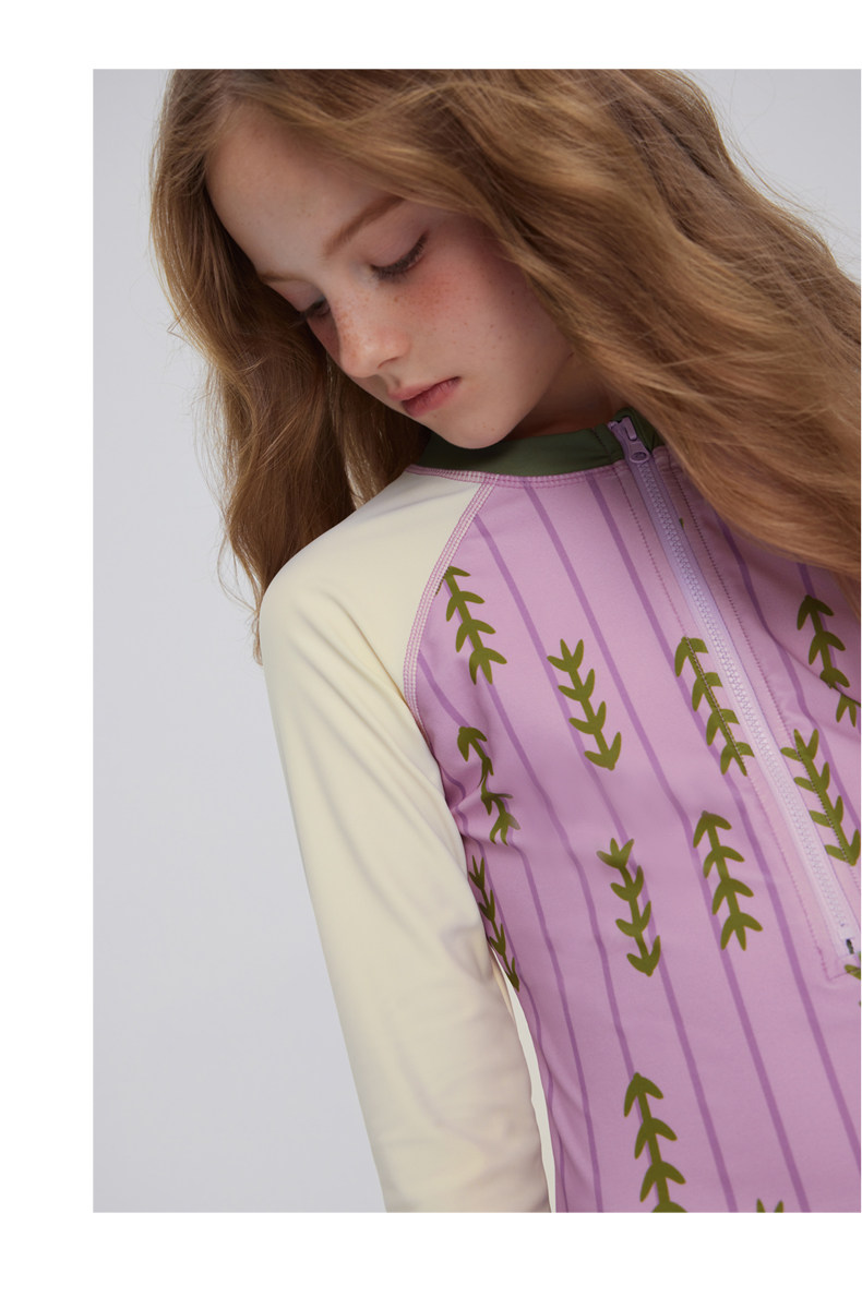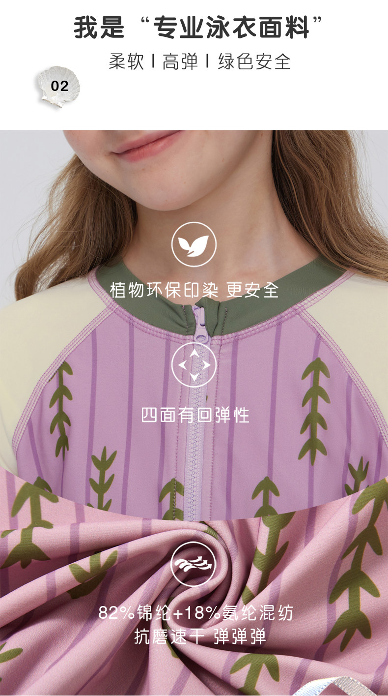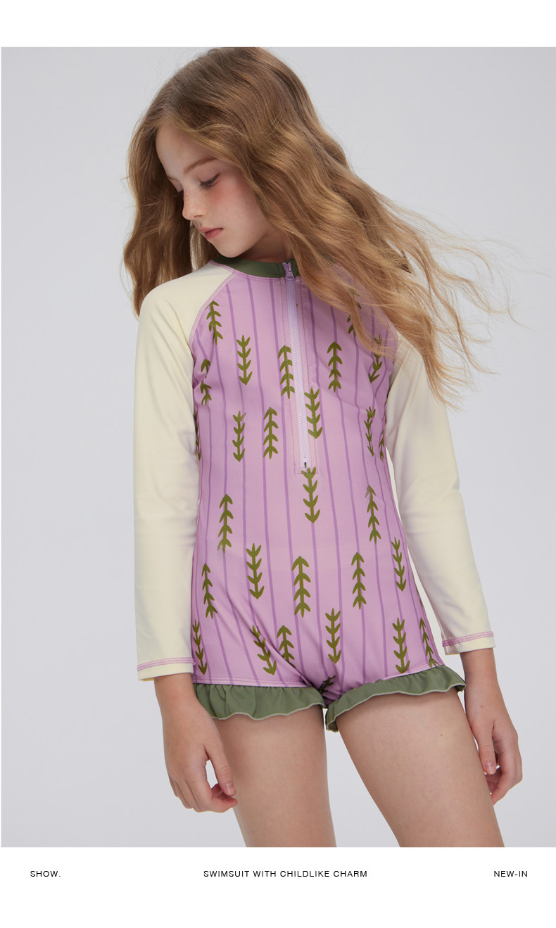 2026 New Style Girls' Swimsuit, One-Piece Long-Sleeved Conservative Swimsuit for Older Children, with Chest Pads for Junior High School Students