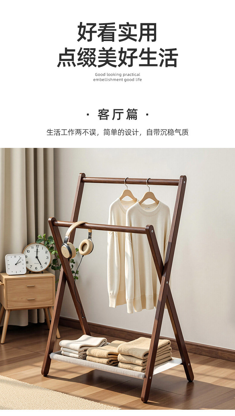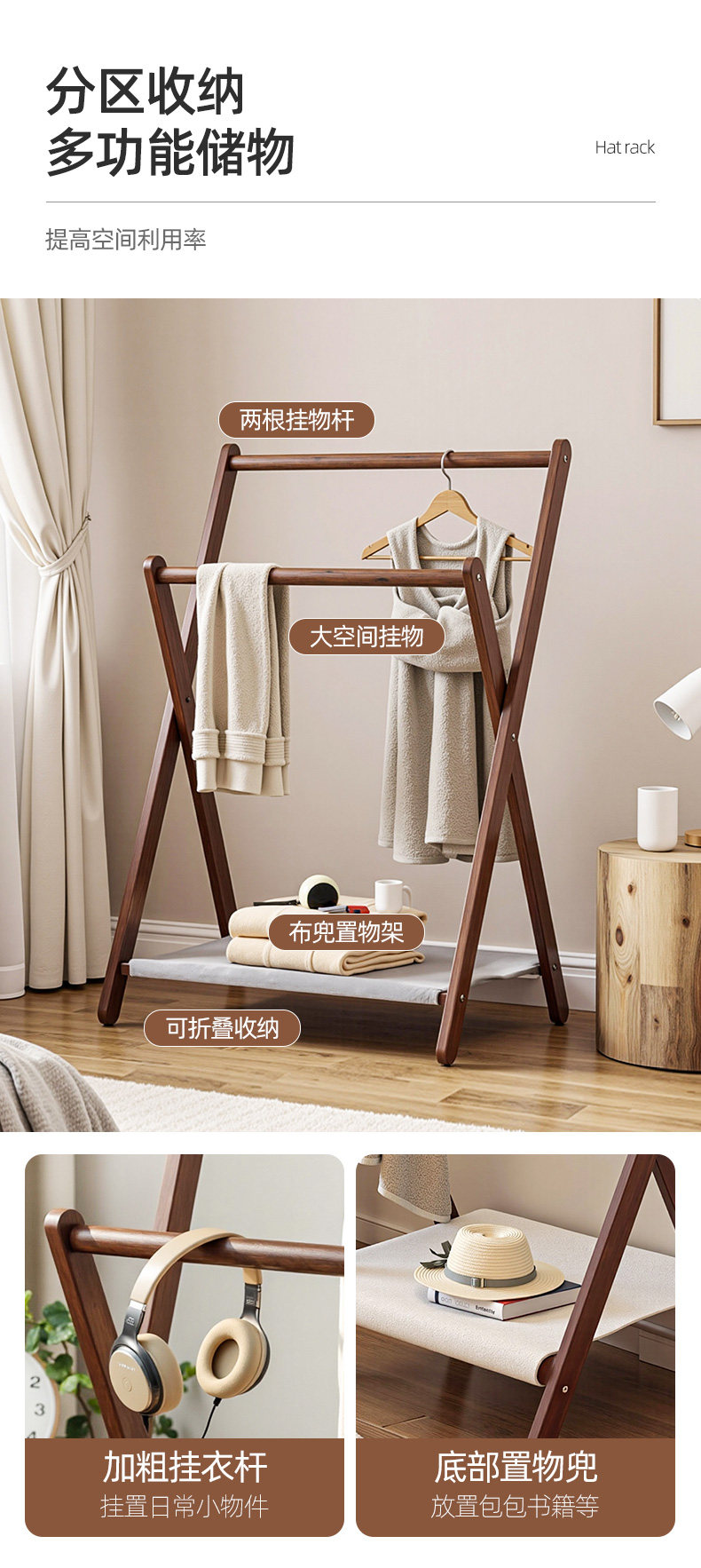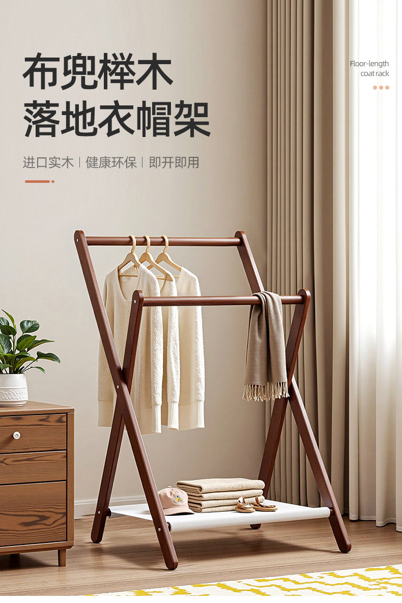 Bedside clothes hanger solid wood bedroom floor-standing coat rack indoor small bedside clothes artifact storage rack at night