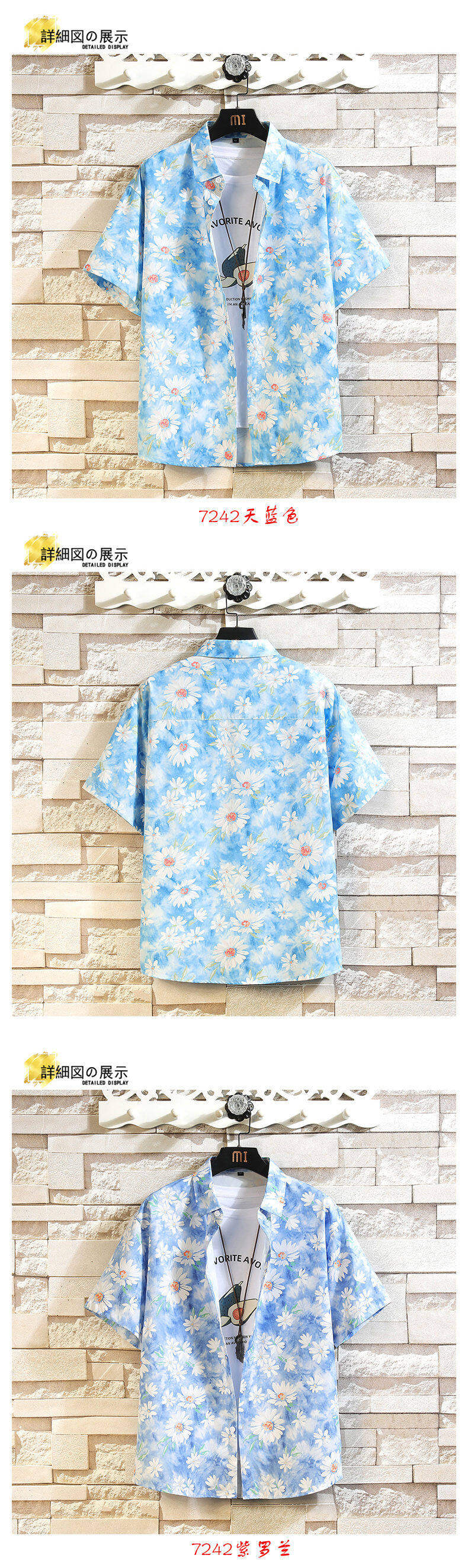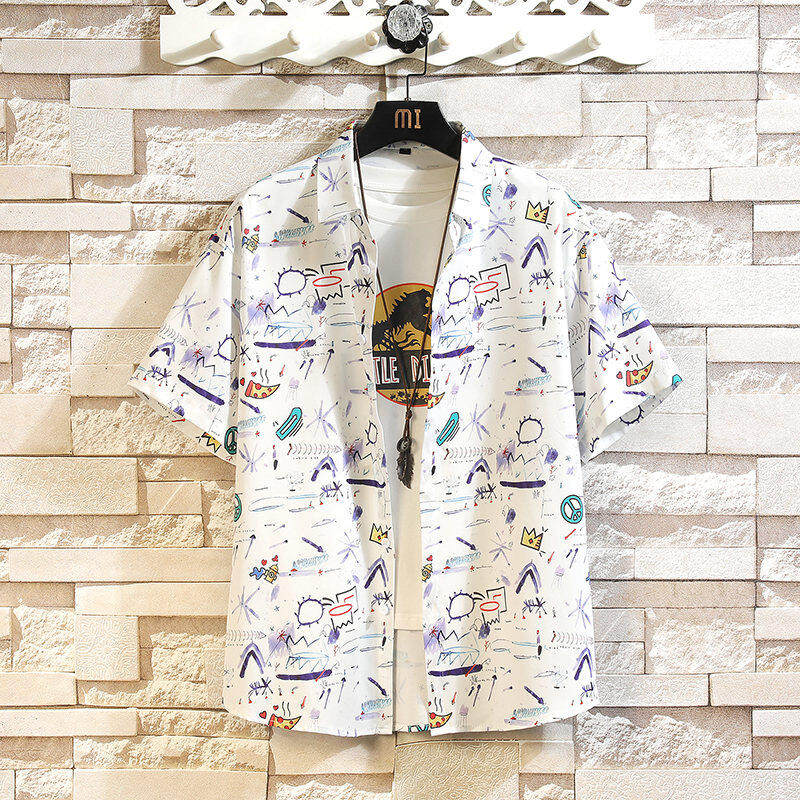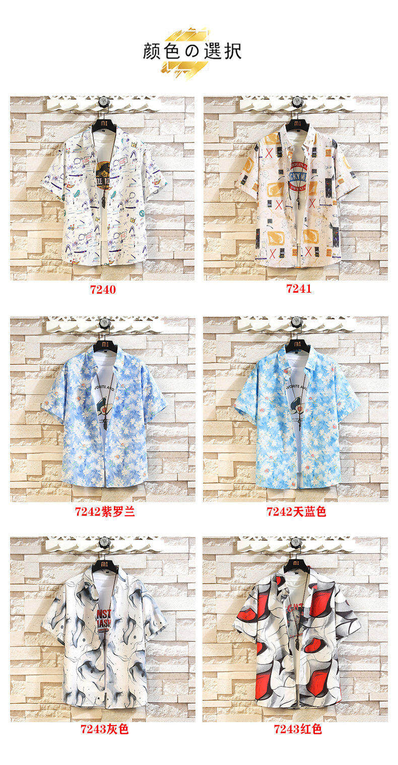Ice Silk Handsome Short-Sleeved Floral Shirt for Men, Summer Trendy Brand Beach Loose Casual Shirt, Hawaiian Hong Kong Style Shirt