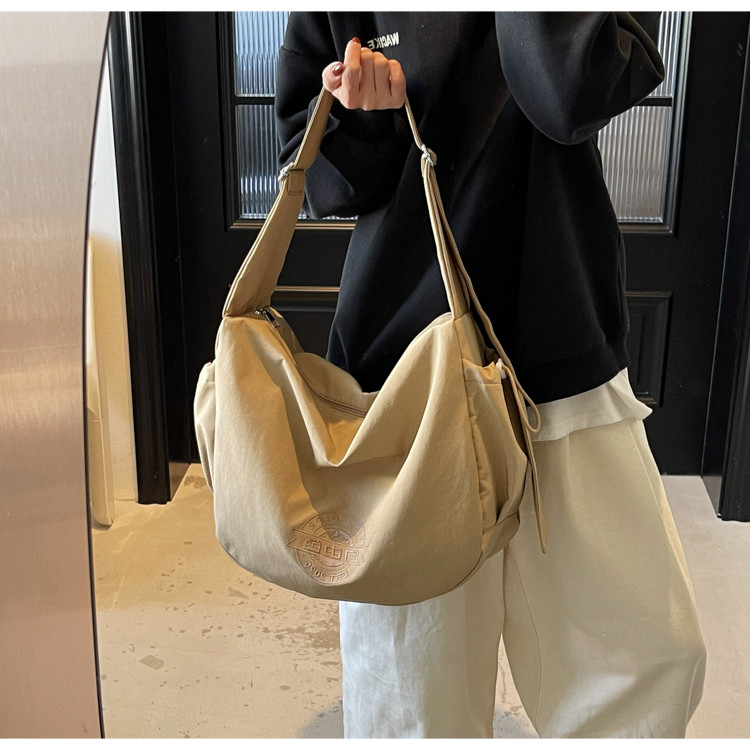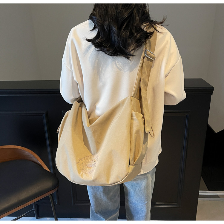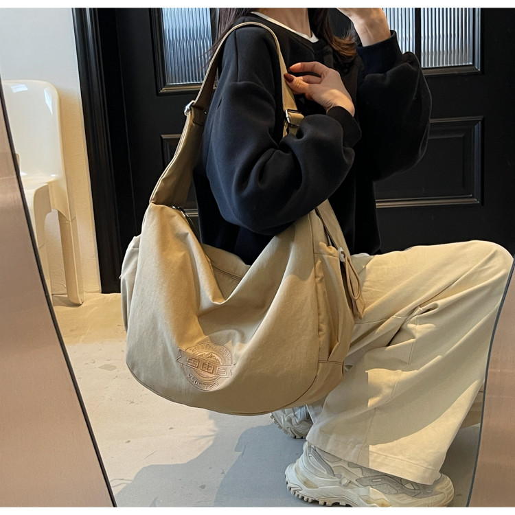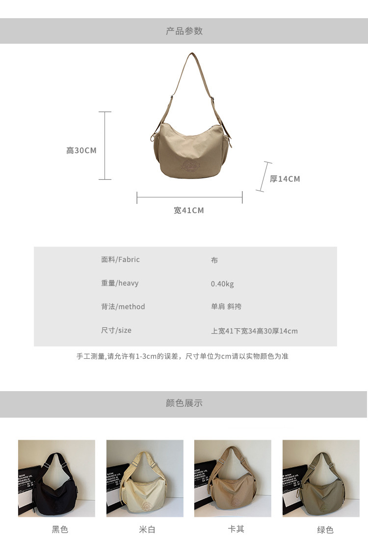 Large-capacity canvas bag for girls working and commuting, shoulder crossbody bag, travel and leisure, college students can hold iPad in class