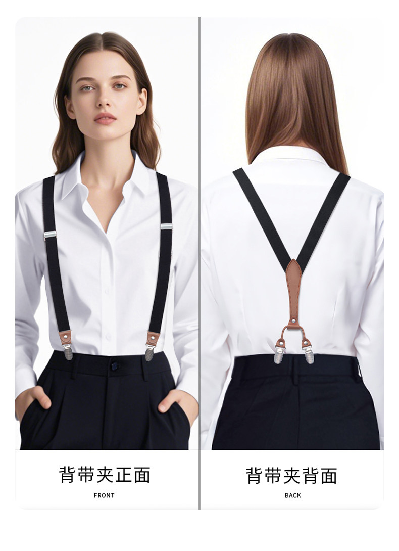 Women's shirt and trousers suspender clip, simple and versatile elastic fashionable adult suspenders with shoulder straps and wide-leg pants and skirts