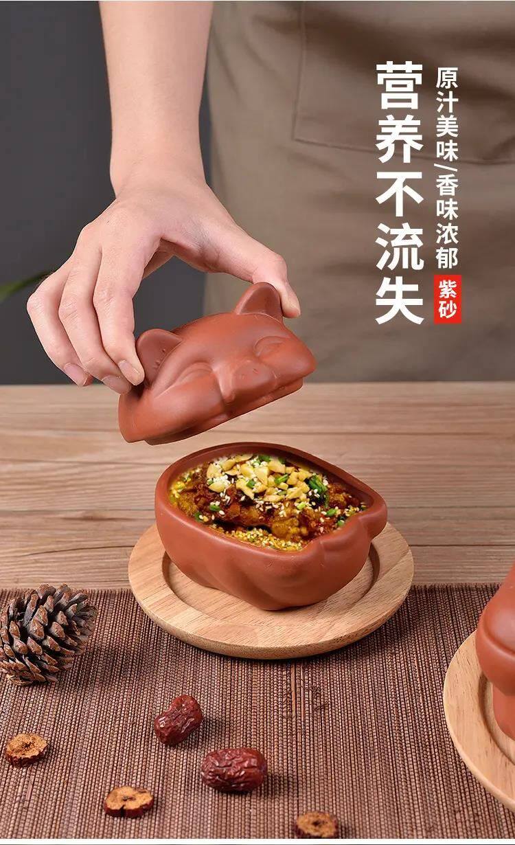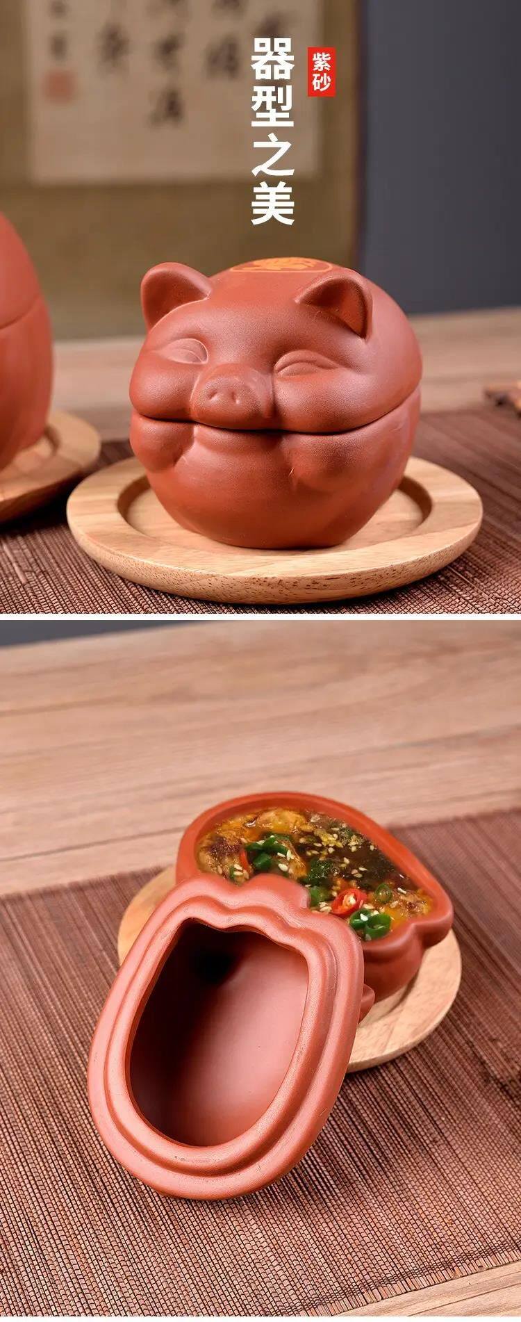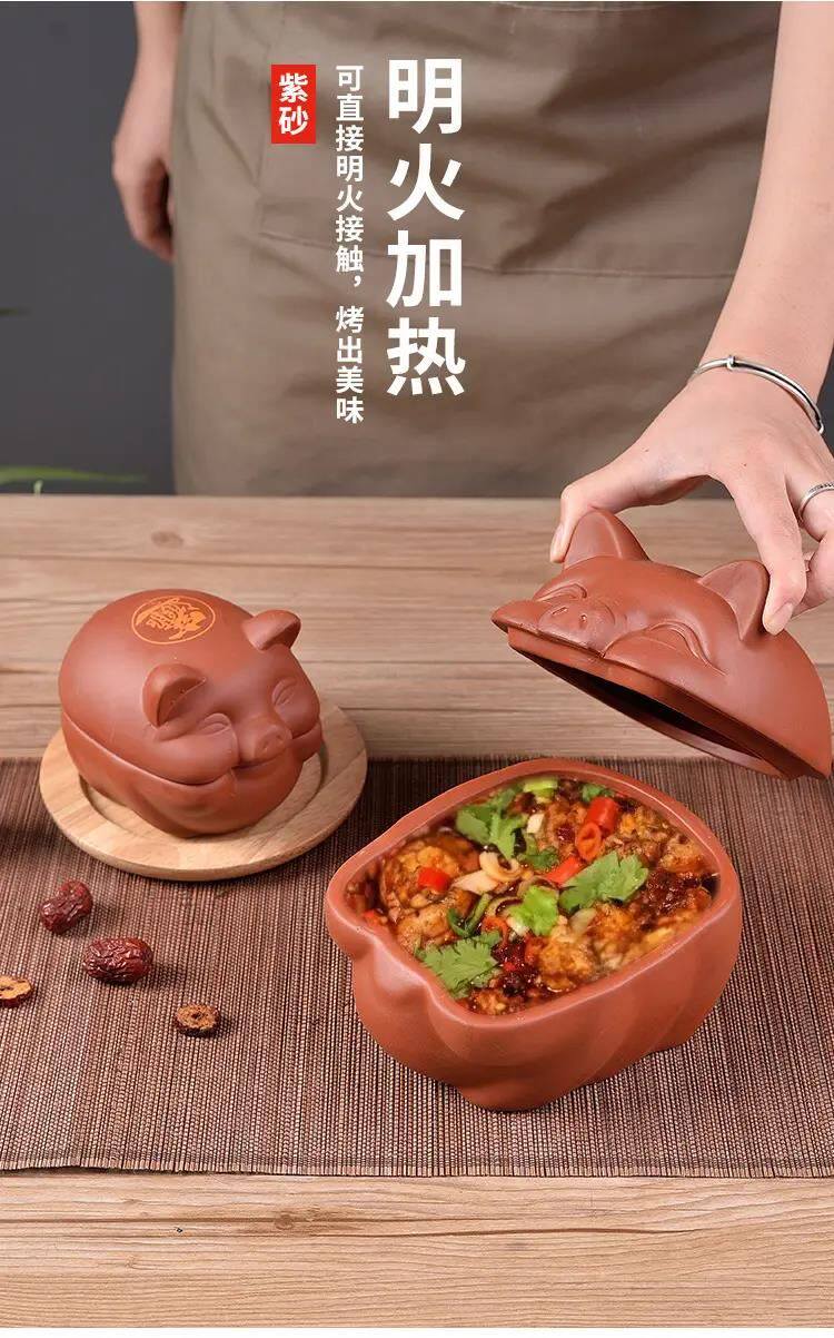 Roasted oysters in a crock pot, piglets, roasted oysters in a crock pot, container tableware, internet celebrity shop, barbecue shop, popular purple clay utensils, piggy