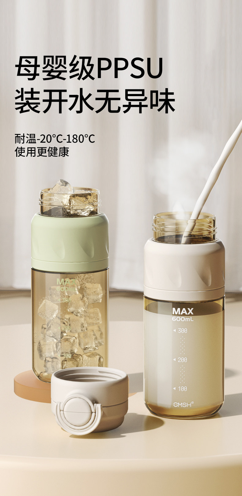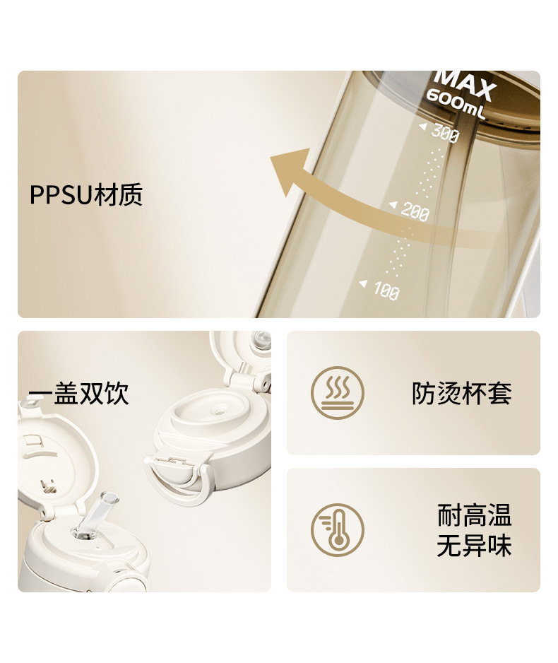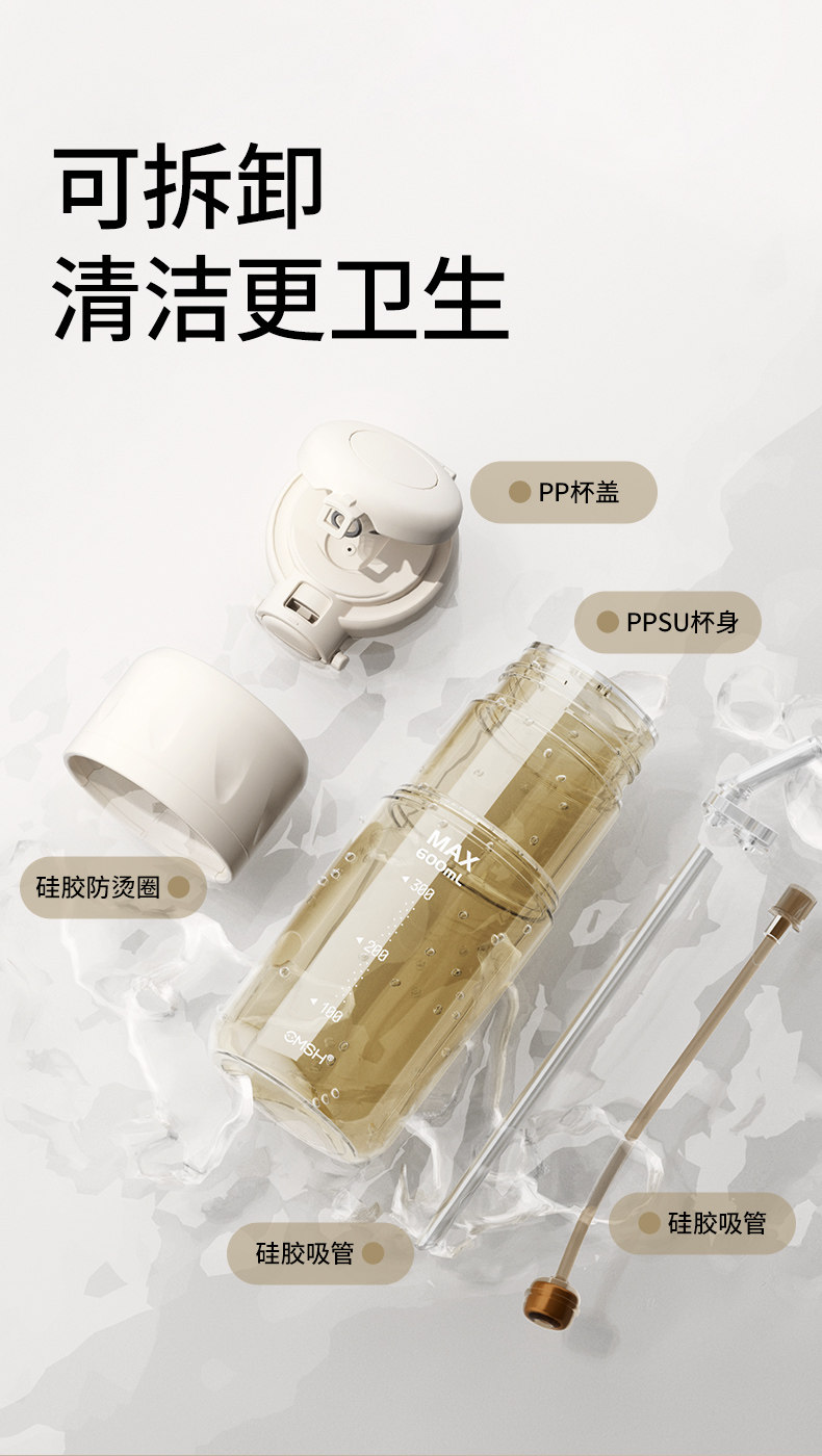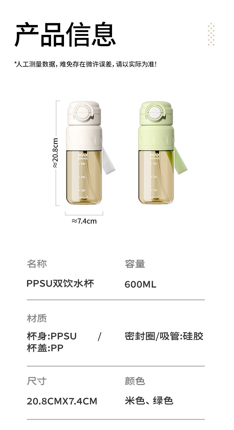 Taosenshen Ppsu Straw Water Cup 2026 New Model for Female Students, Special for School Use, High-Value Dual-Drink Water Bottle for Summer