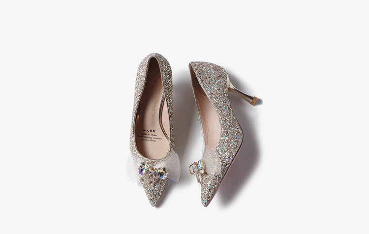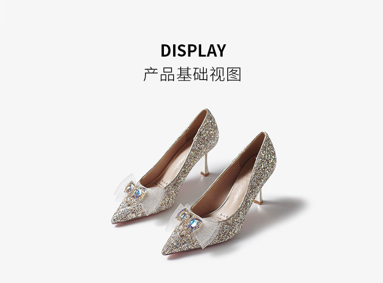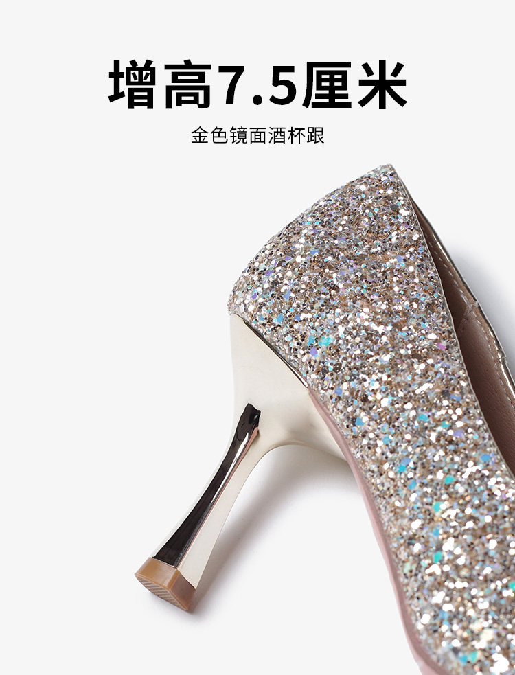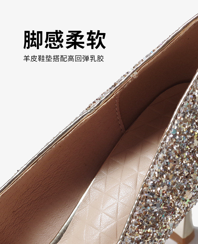 High-heeled wedding shoes, pointed toe bridal shoes, engagement French style comfortable princess non-tiring feet wedding dress toast champagne color crystal shoes