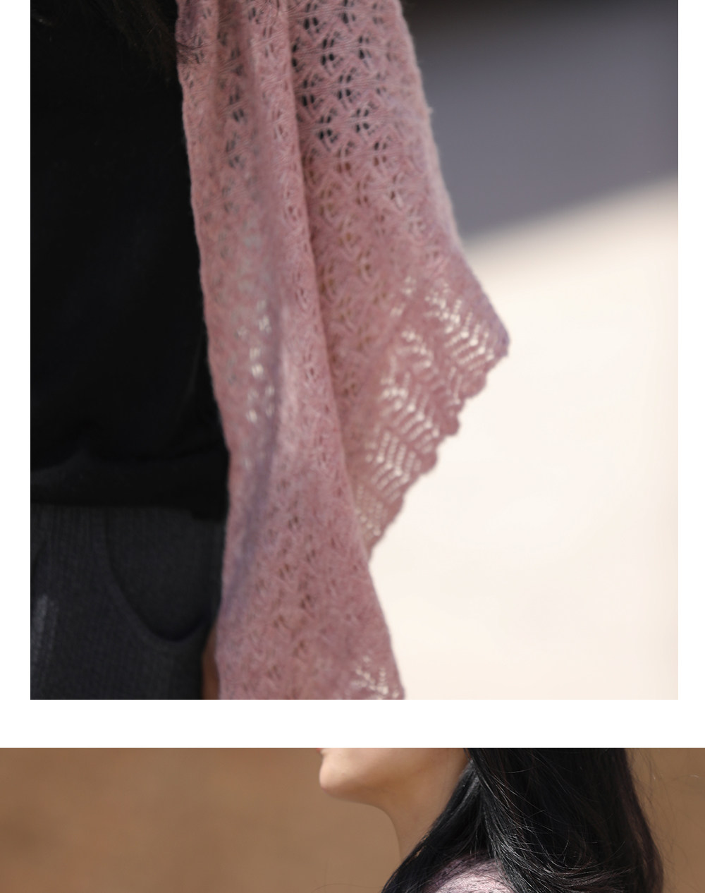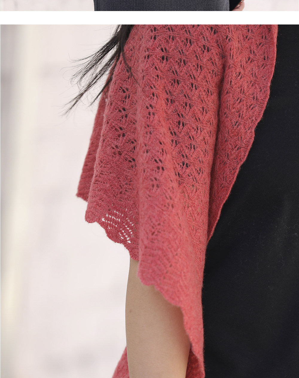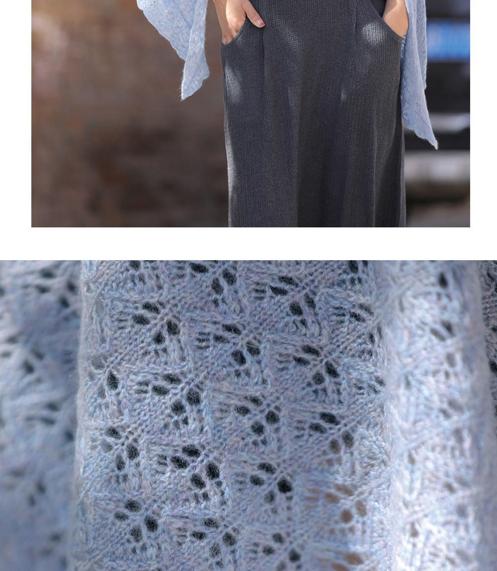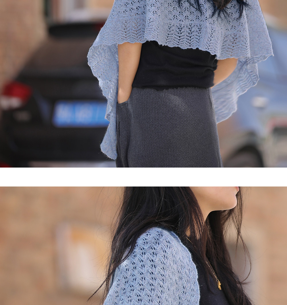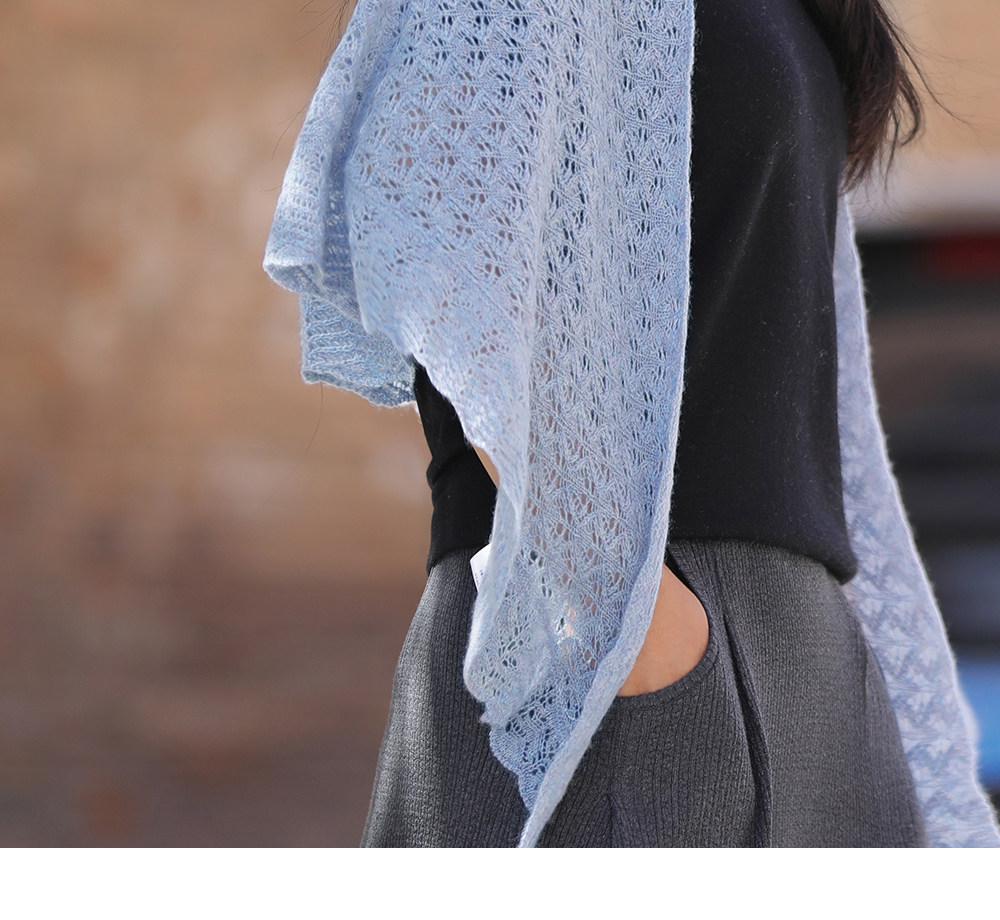 Custom-Dyed Colored Yarn Hollow-Out Knitted Triangular Cashmere Shawl for Women, Suitable for Spring and Summer, to Be Paired with Dresses, Outdoor Sun Protection, and Air-Conditioned Environments