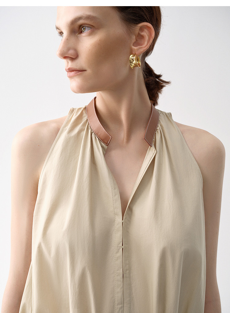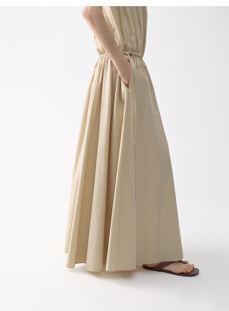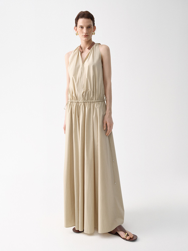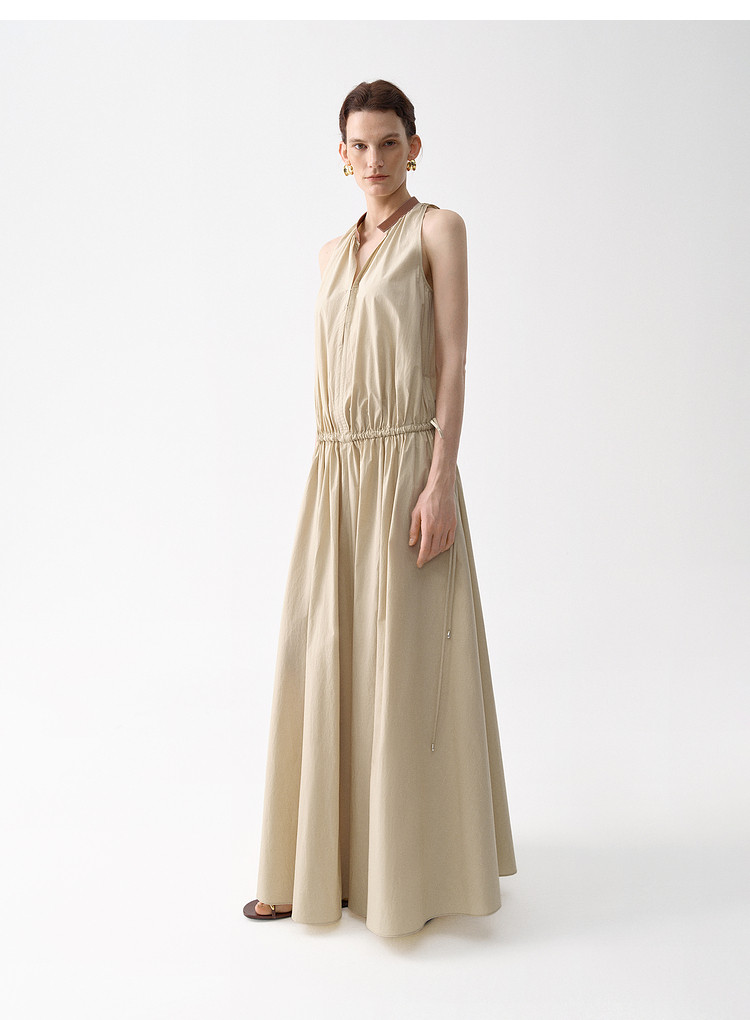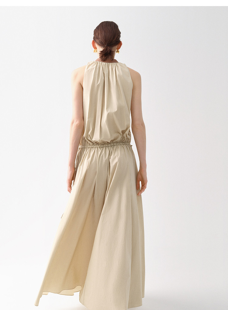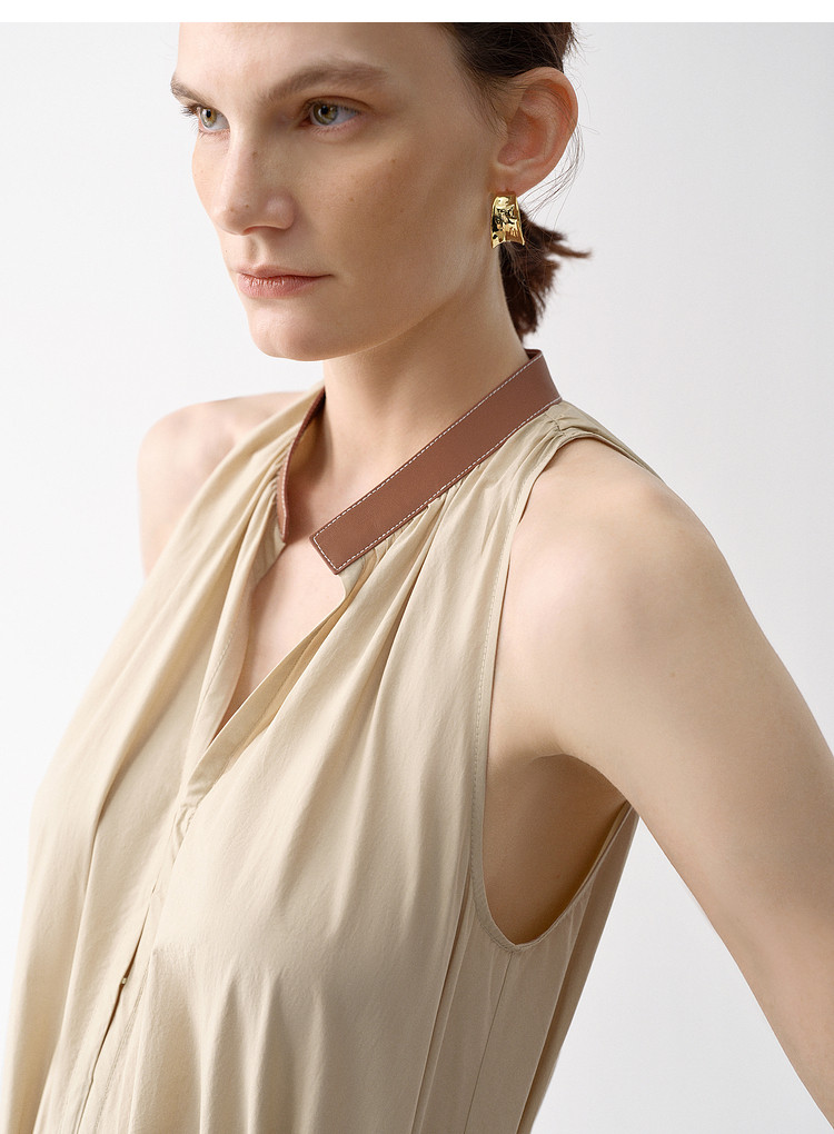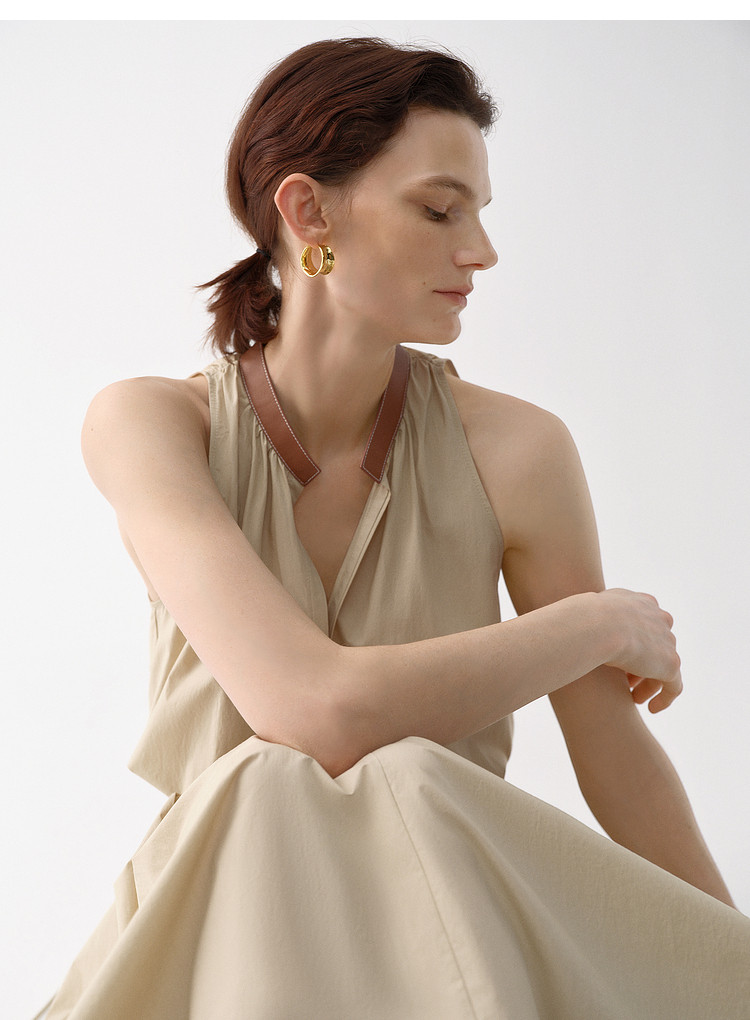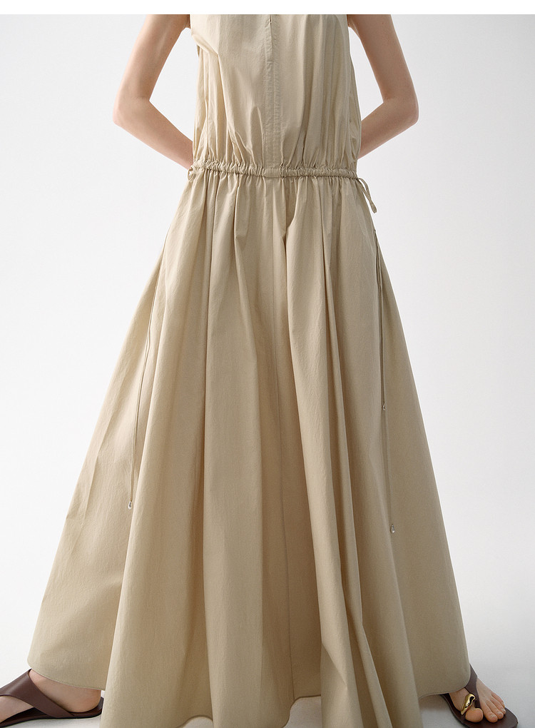 Edition dress women's 2025 summer new style leather collar shoulder-less sleeveless waist long skirt EBE2DRS022
