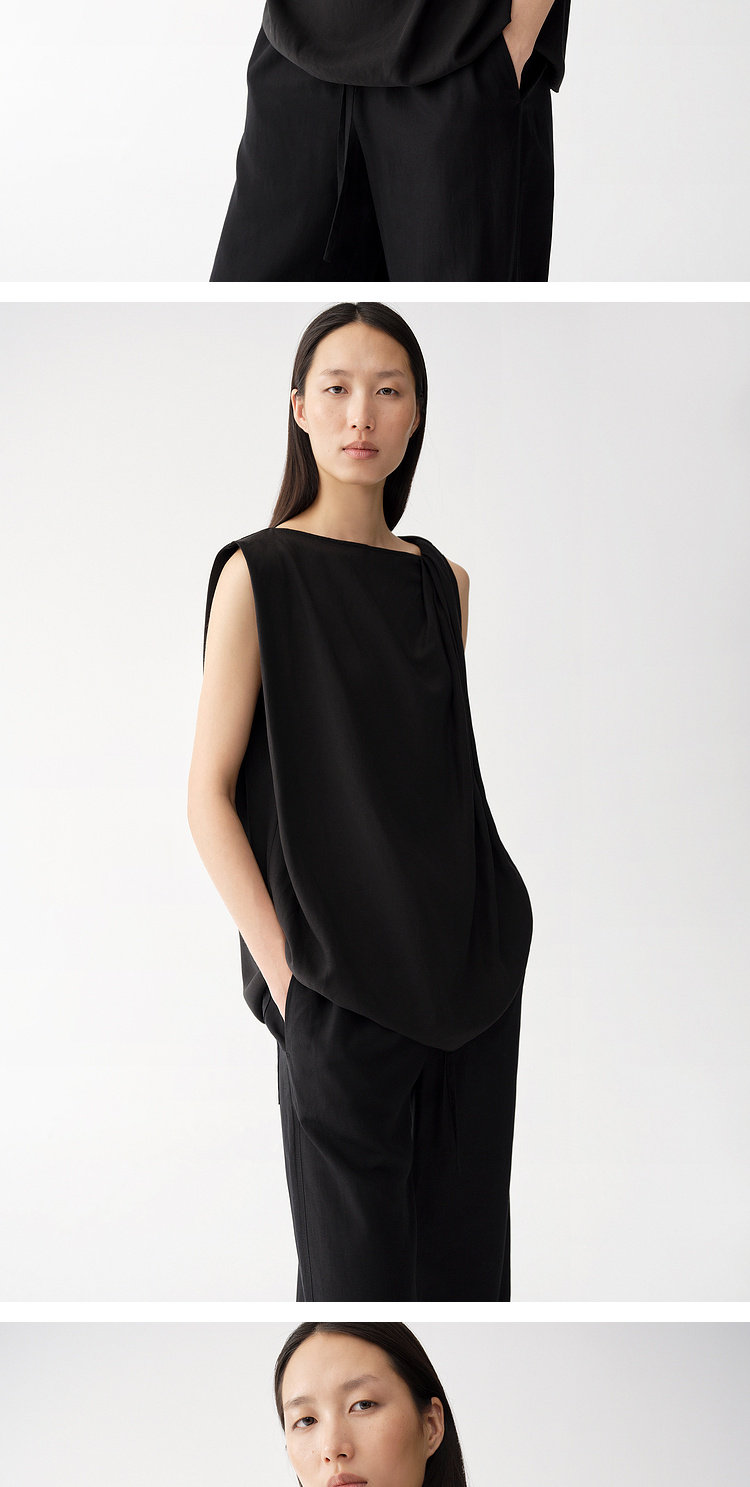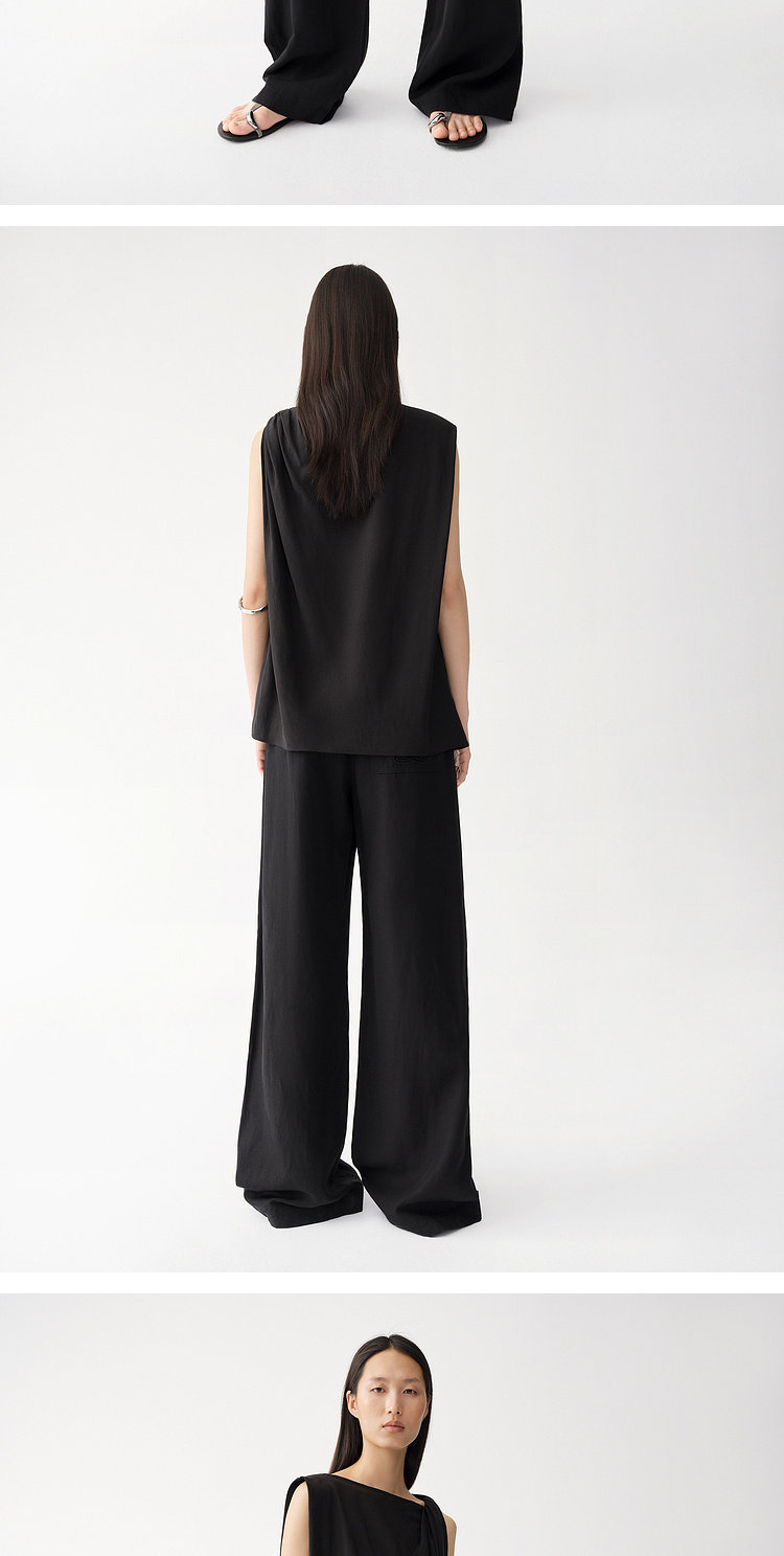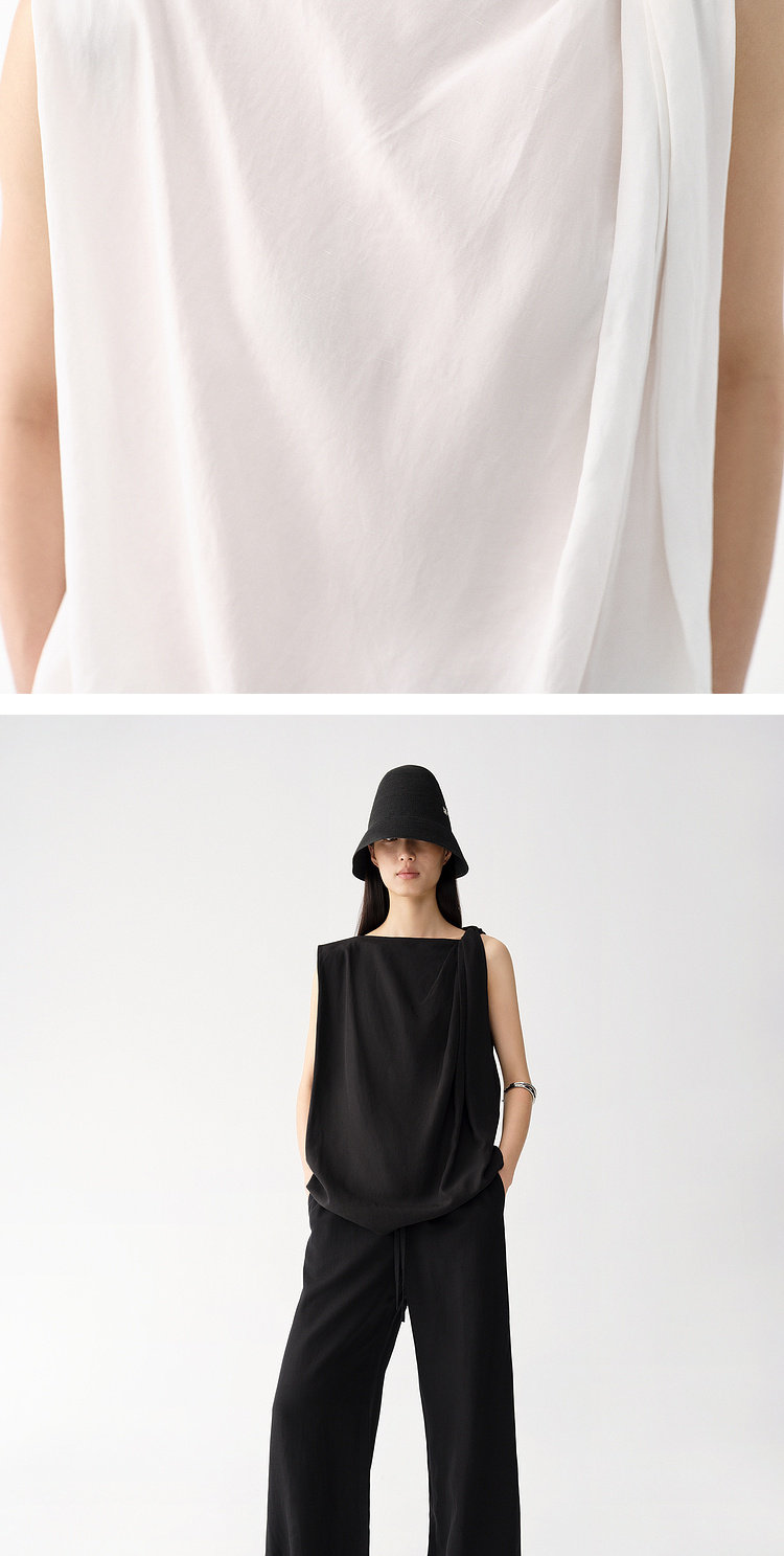 Editiont-Shirt for Women 2025 Summer New Asymmetrical Twisted Tencel Linen Deconstructed Top Ebe2Top016