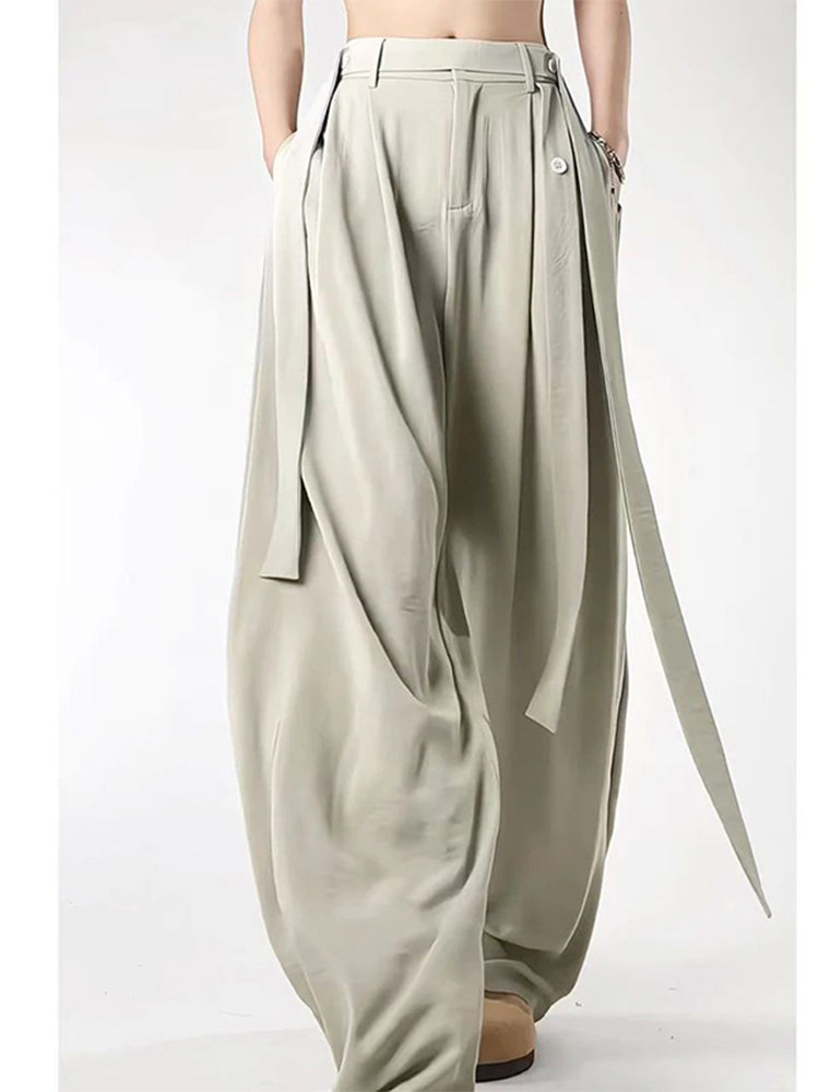 Off-white ribbon ice silk quick-drying pants men's summer American style lazy relaxed pants high-waist scimitar wide-leg pants