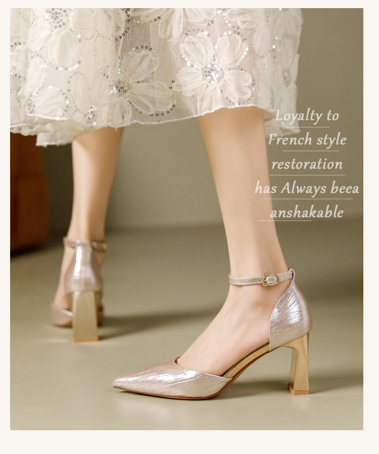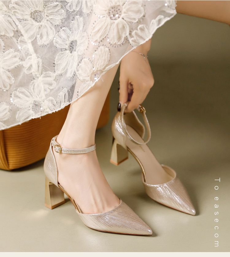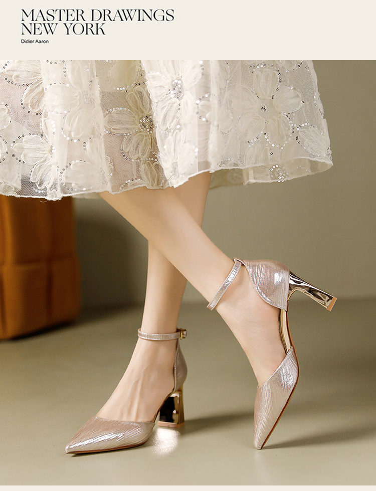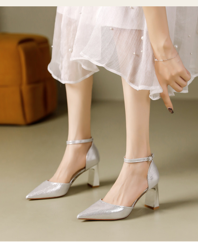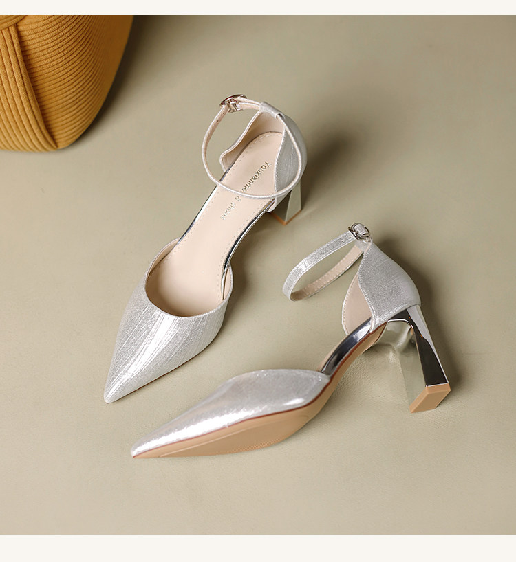 Banquet Wedding High Heels Women's 2025 New Medium Heel Pointed Toe Fairy Style Bridesmaid Summer Fashion Temperament Sandals
