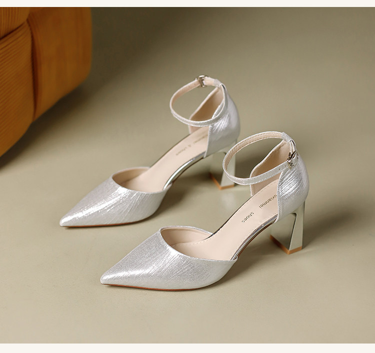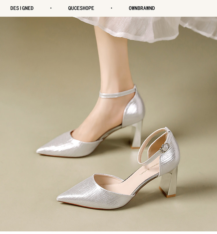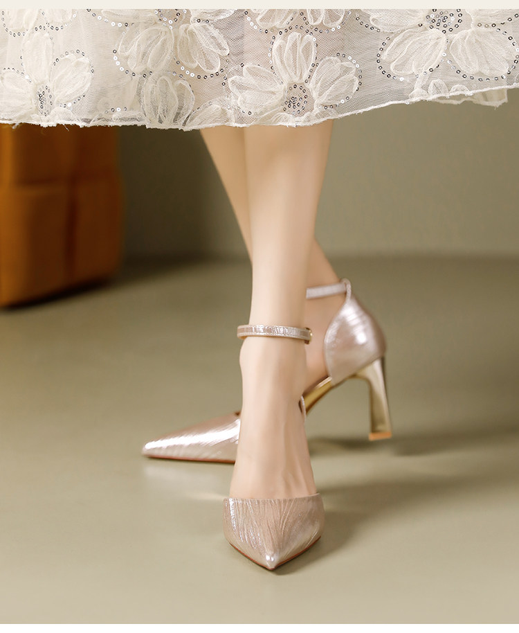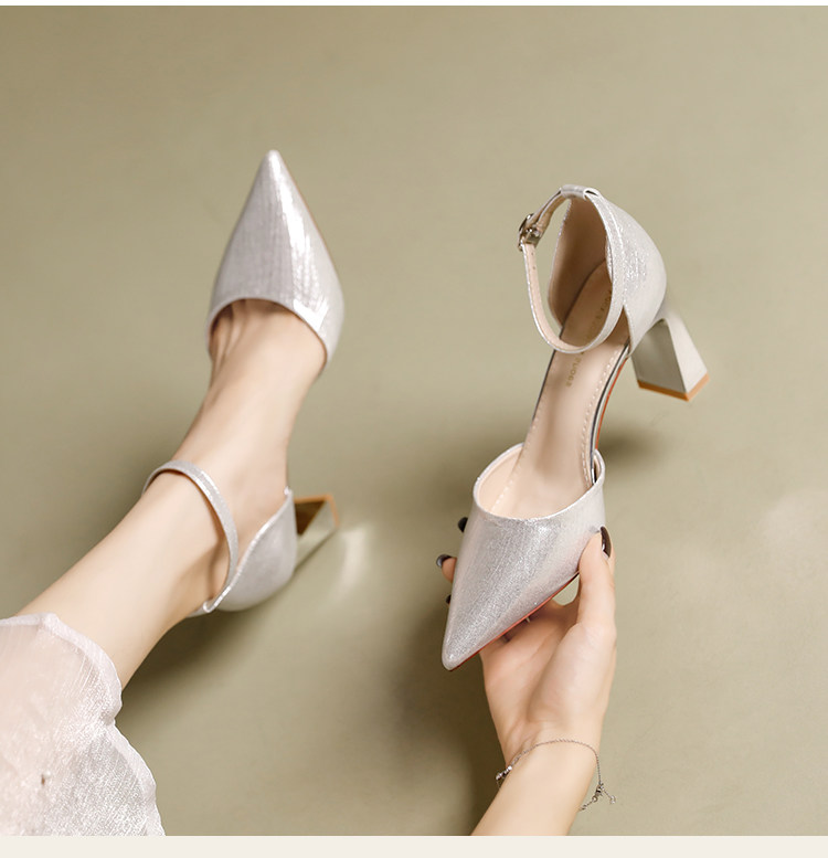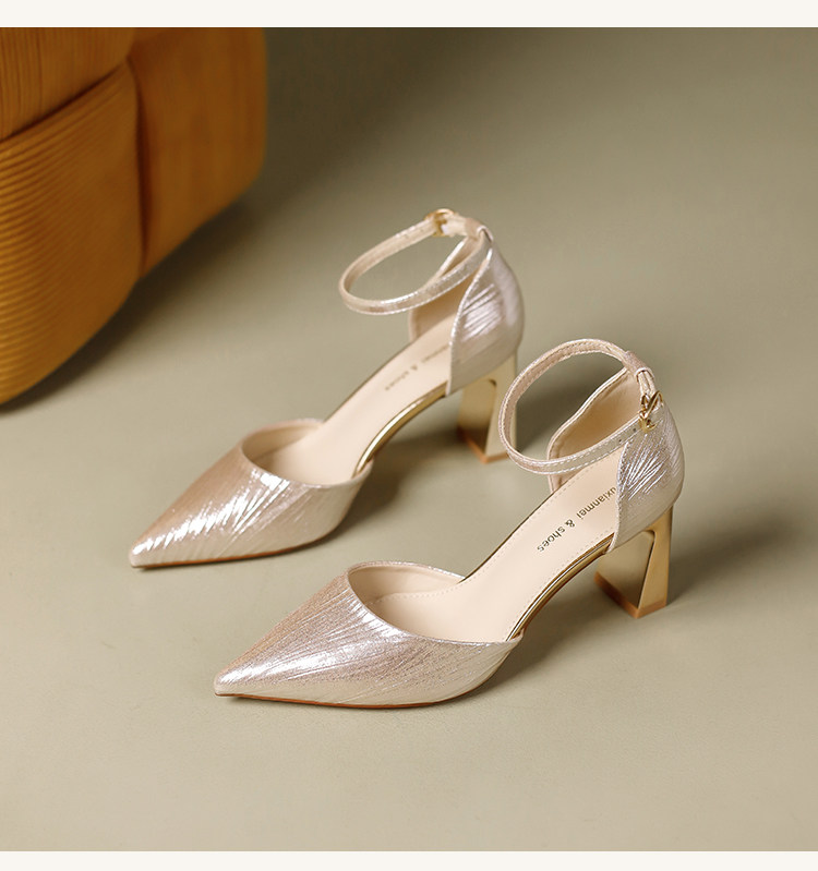 Banquet Wedding High Heels Women's 2025 New Medium Heel Pointed Toe Fairy Style Bridesmaid Summer Fashion Temperament Sandals