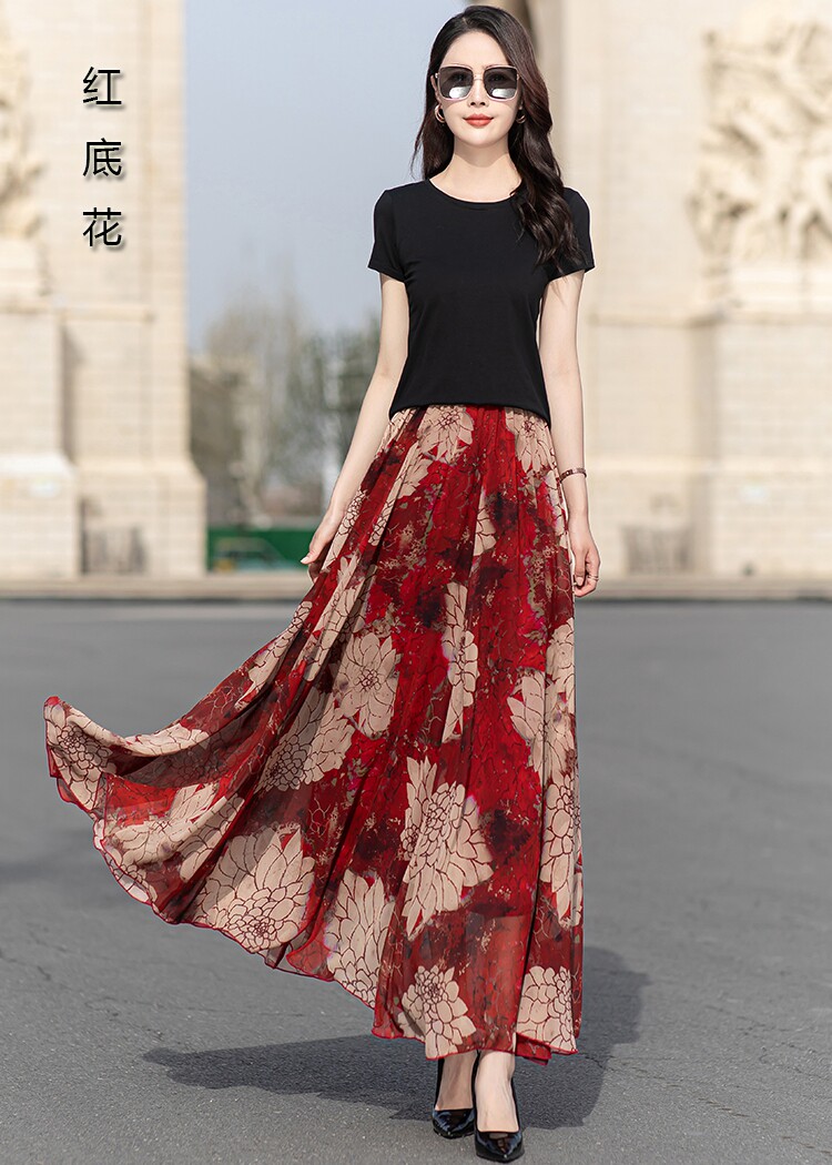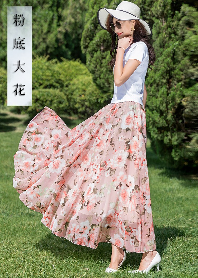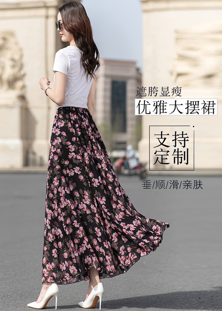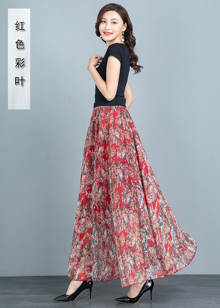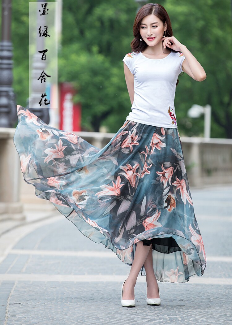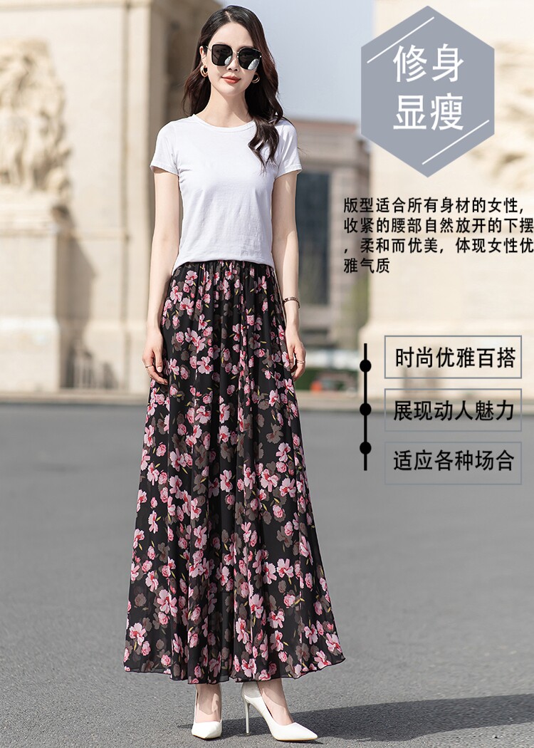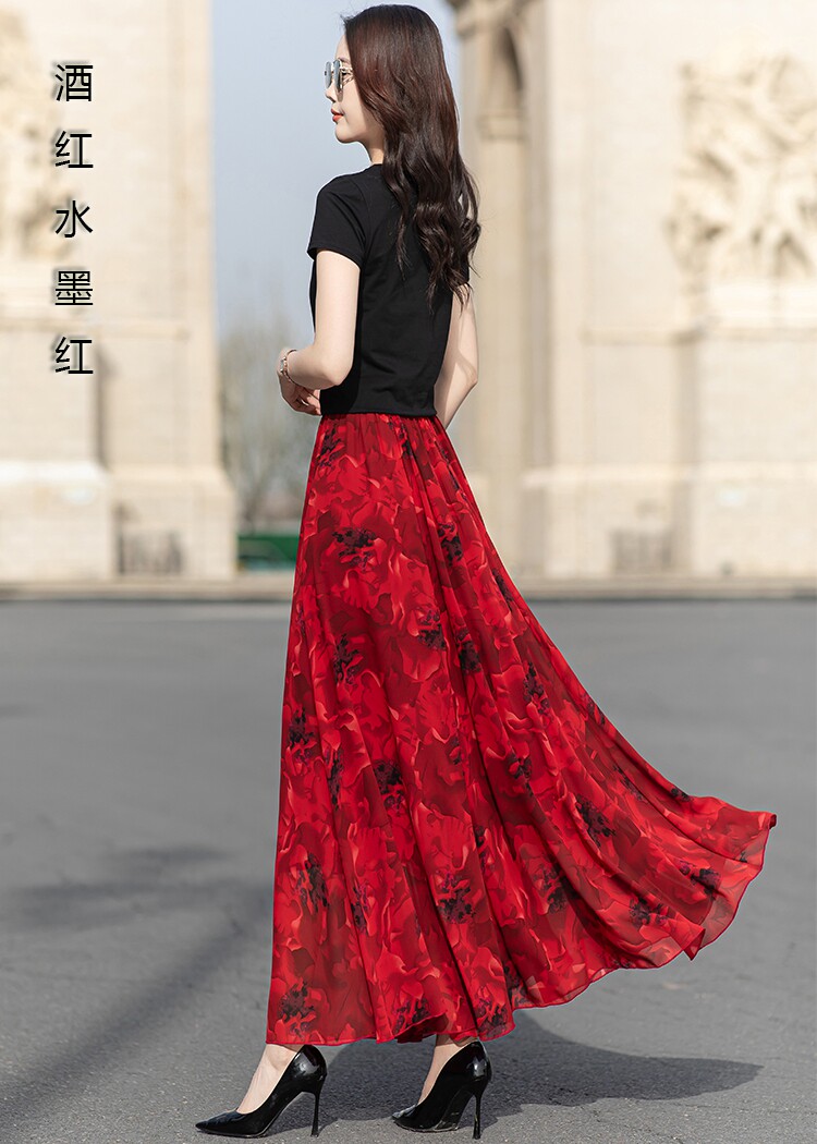 Summer Chiffon Skirt Mid-Length Retro Floral Skirt for Women with Large Hem Fairy Skirt Dancing Plus Size Long Skirt