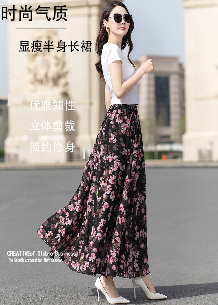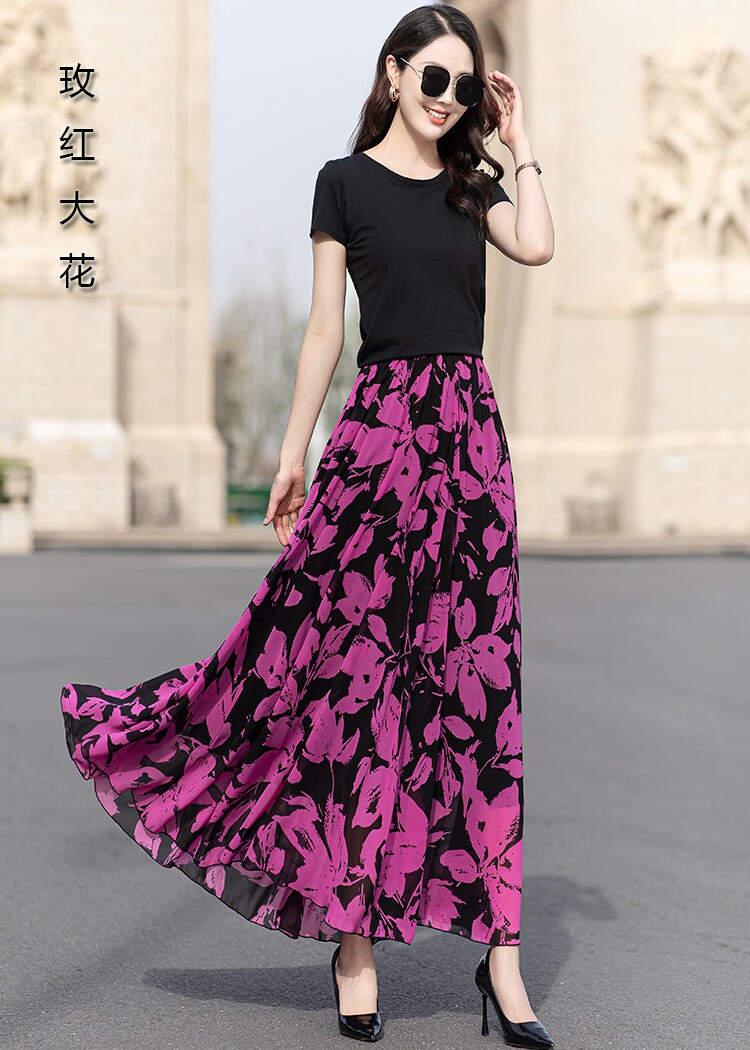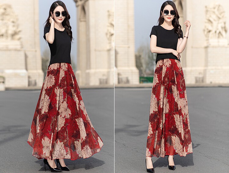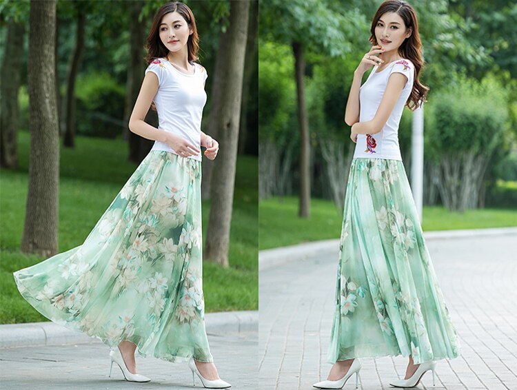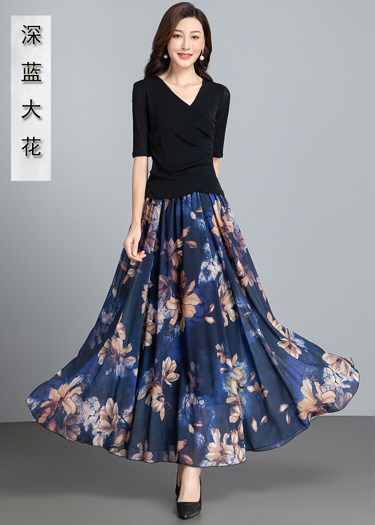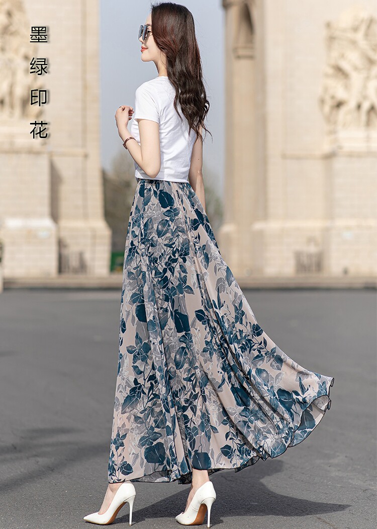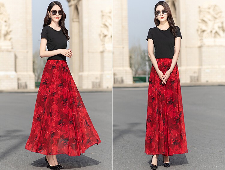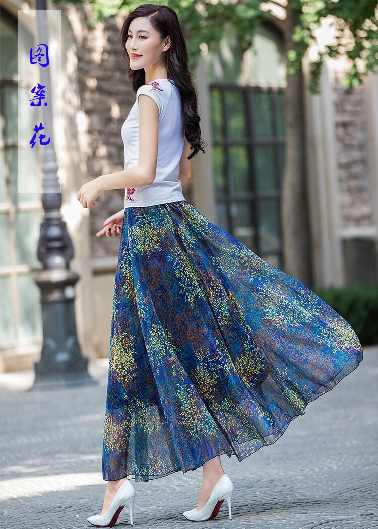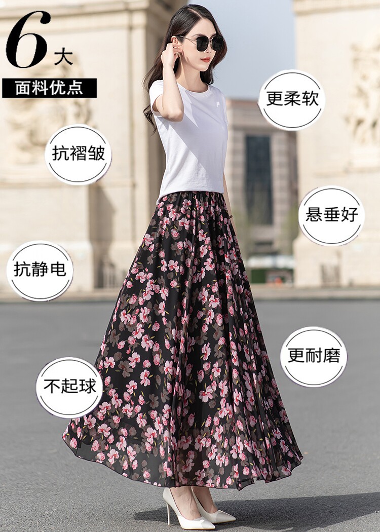 Summer Chiffon Skirt Mid-Length Retro Floral Skirt for Women with Large Hem Fairy Skirt Dancing Plus Size Long Skirt