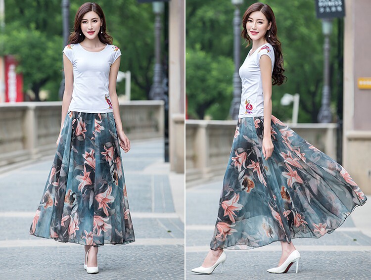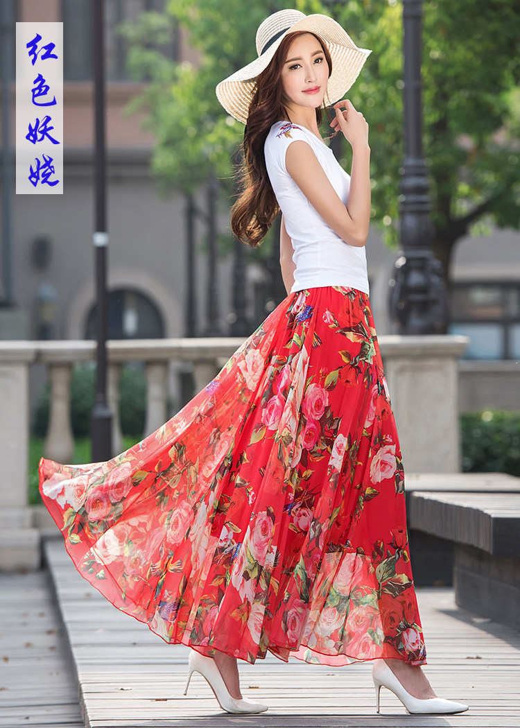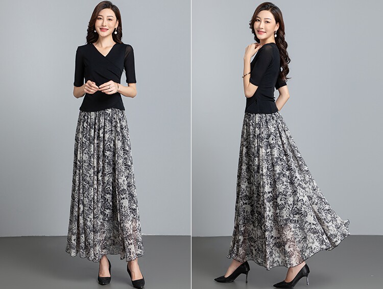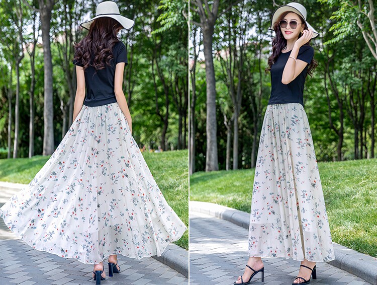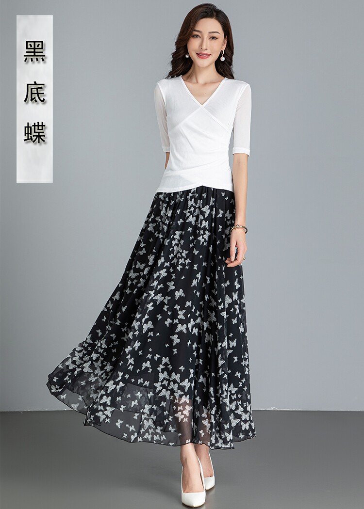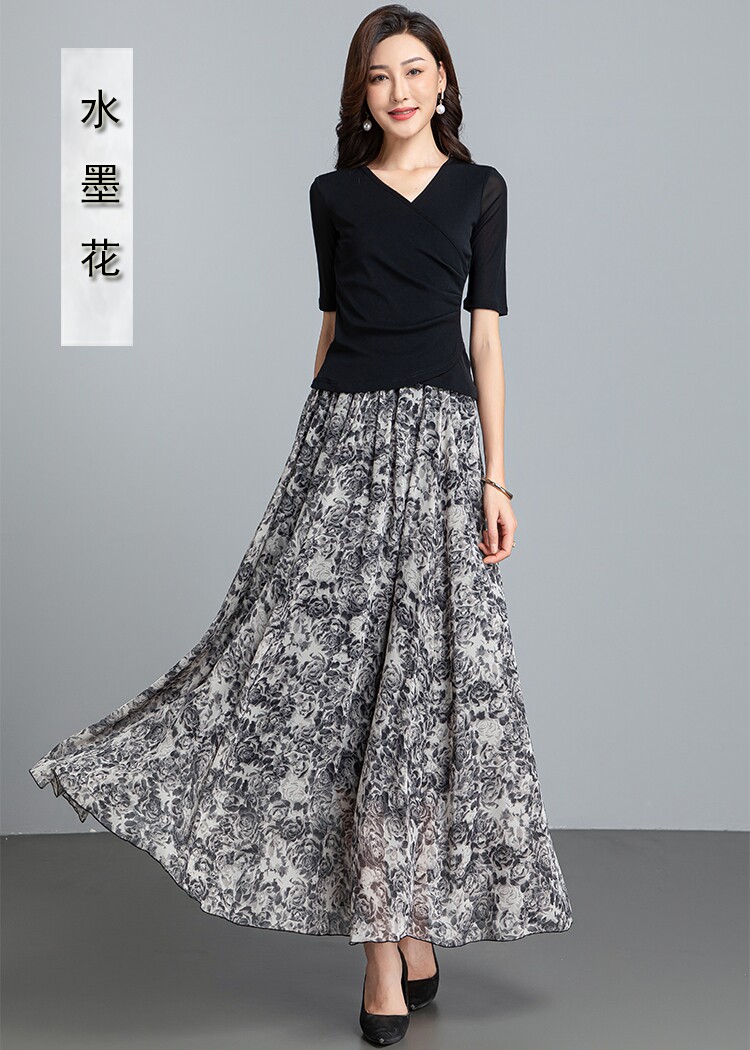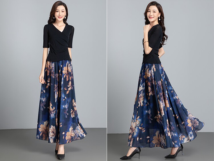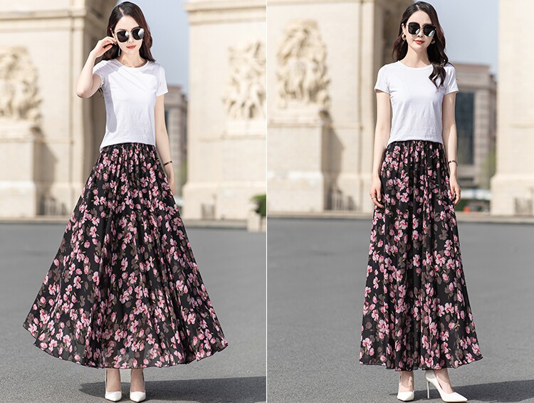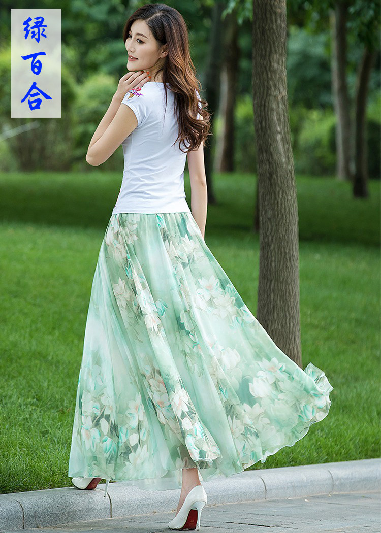Summer Chiffon Skirt Mid-Length Retro Floral Skirt for Women with Large Hem Fairy Skirt Dancing Plus Size Long Skirt