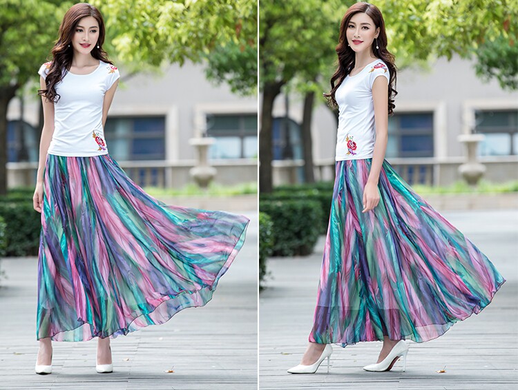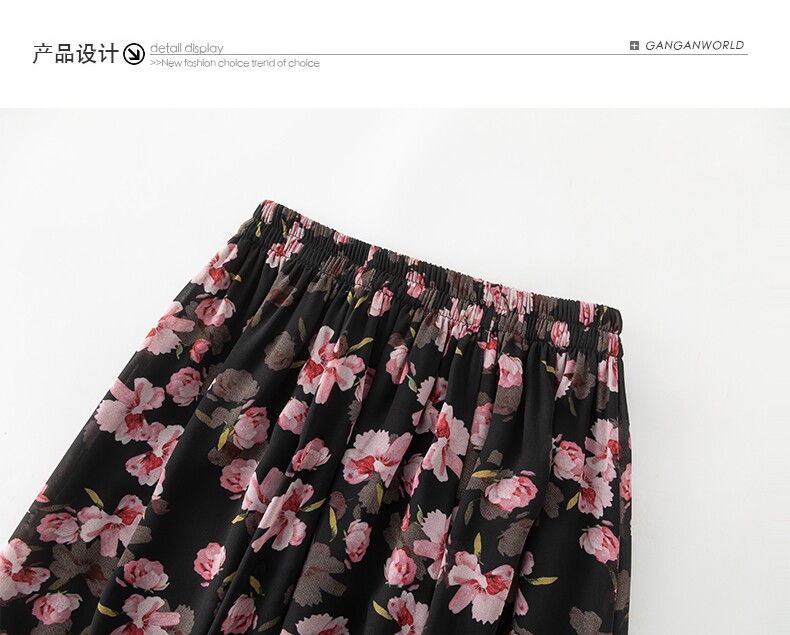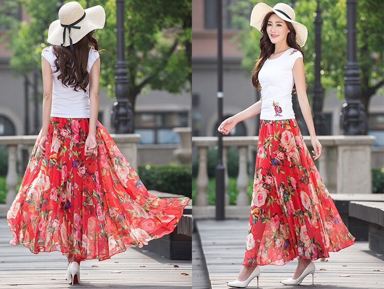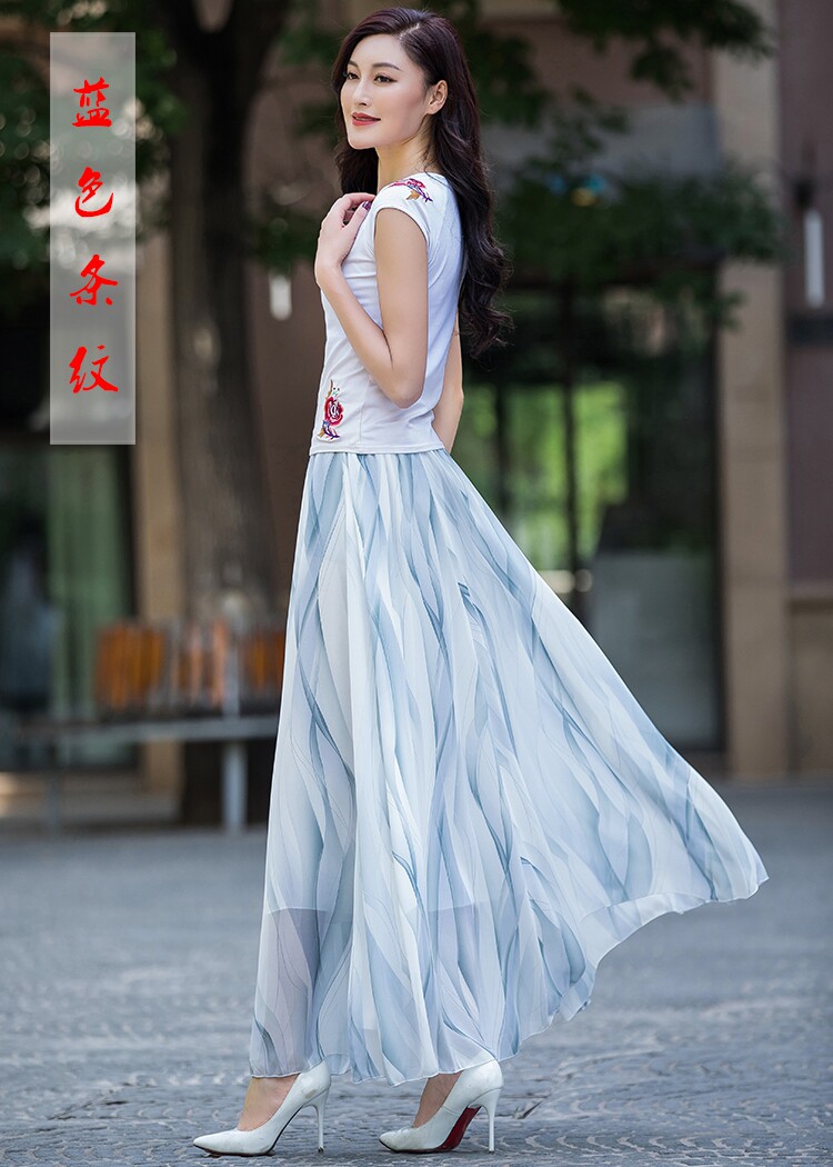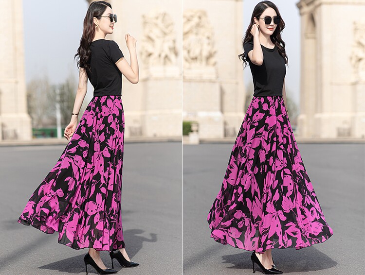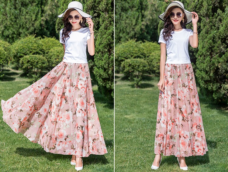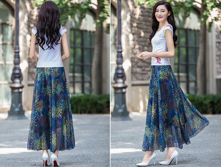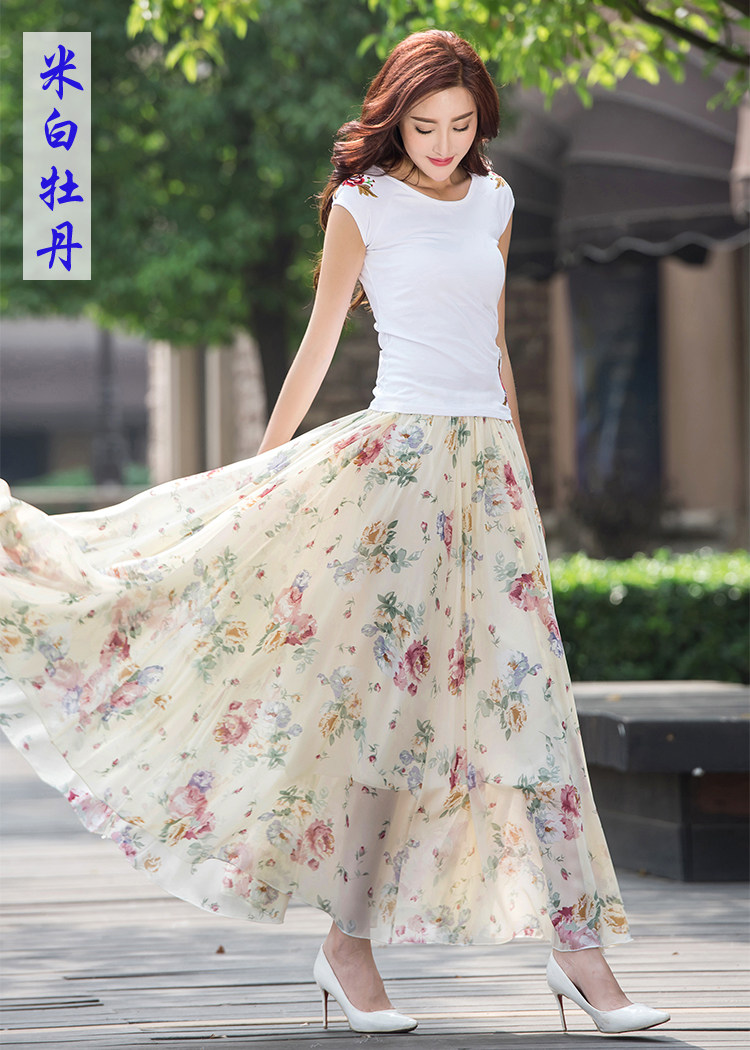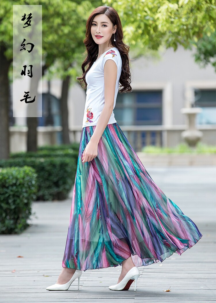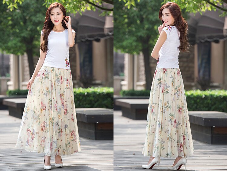 Summer Chiffon Skirt Mid-Length Retro Floral Skirt for Women with Large Hem Fairy Skirt Dancing Plus Size Long Skirt