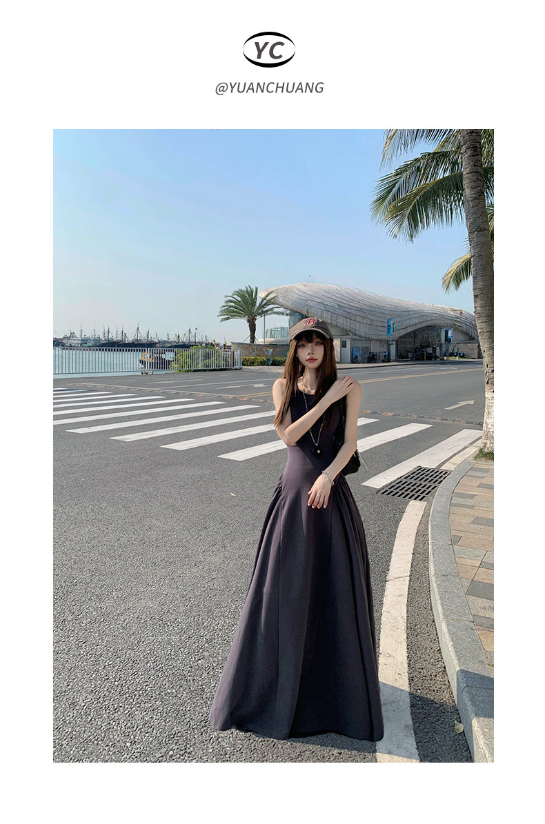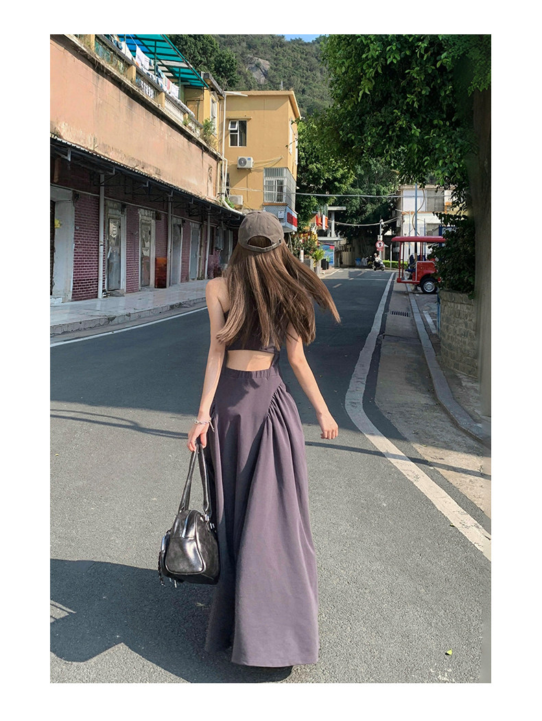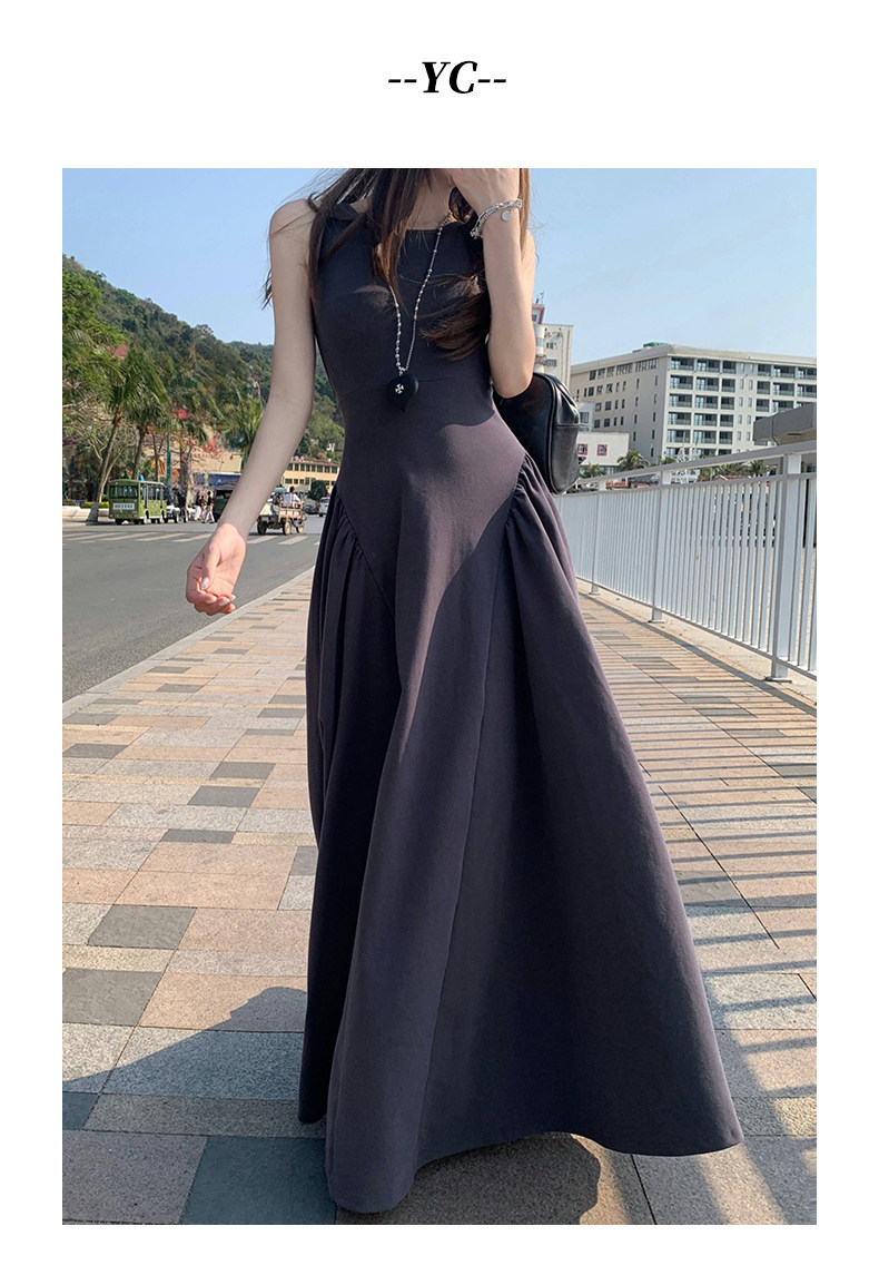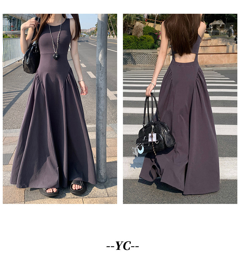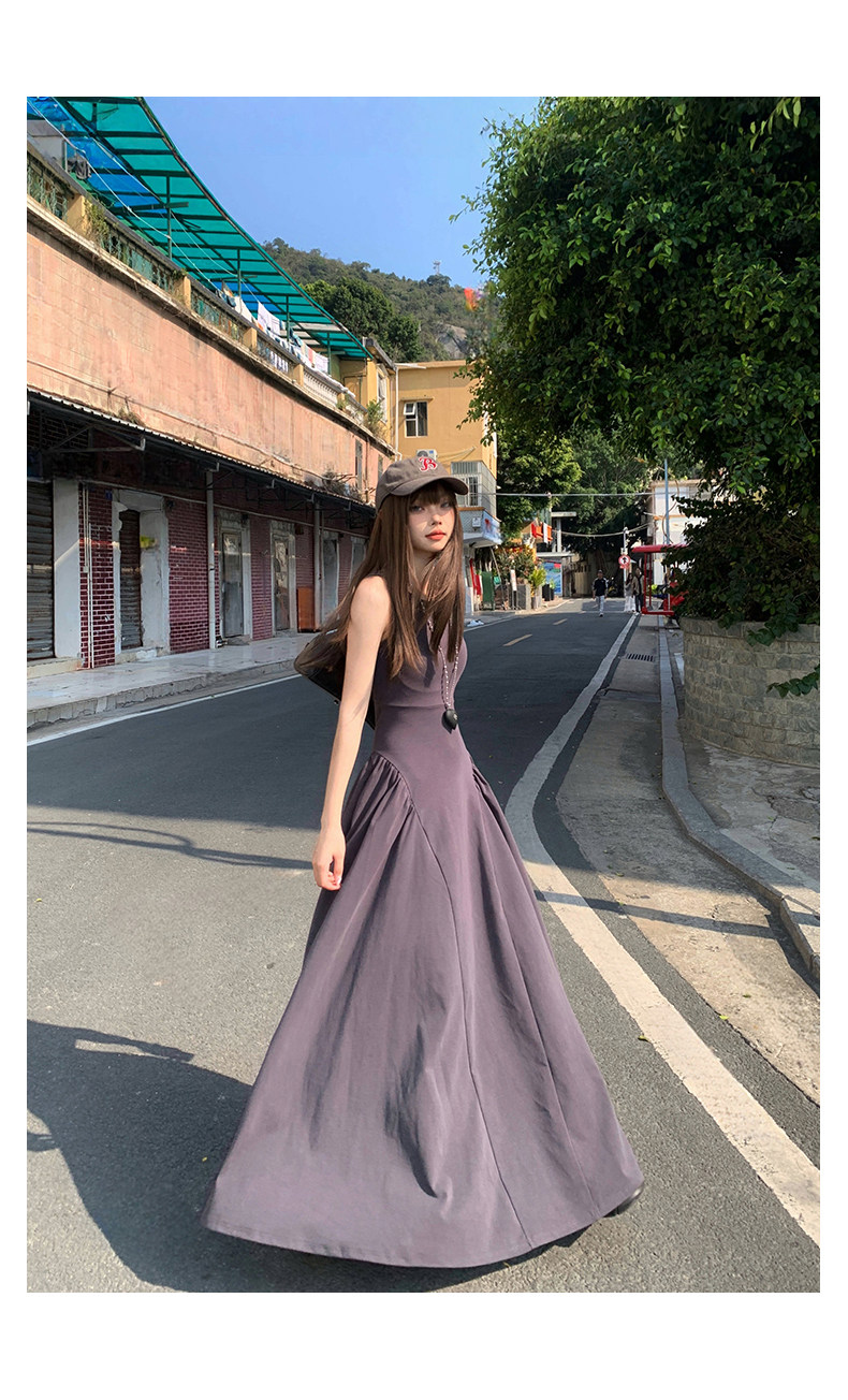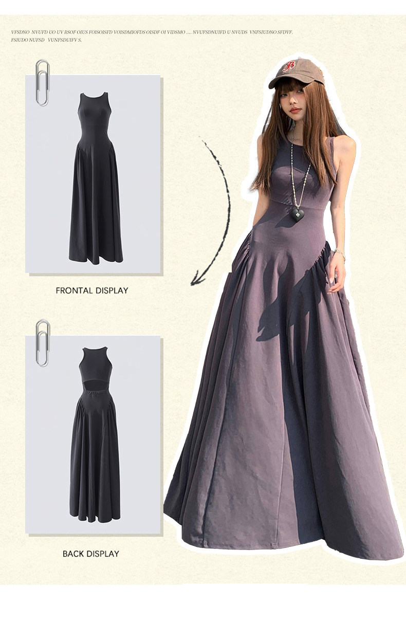 French-Style Slim-Fitting, High-End, Elegant Dress with Backless Design, Sexy Waist-Cinching, Flared A-Line Long Dress