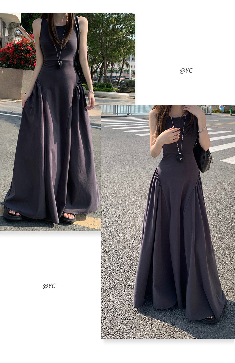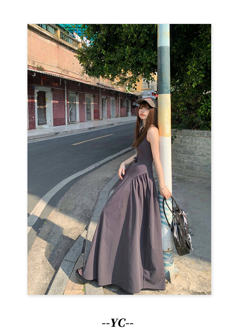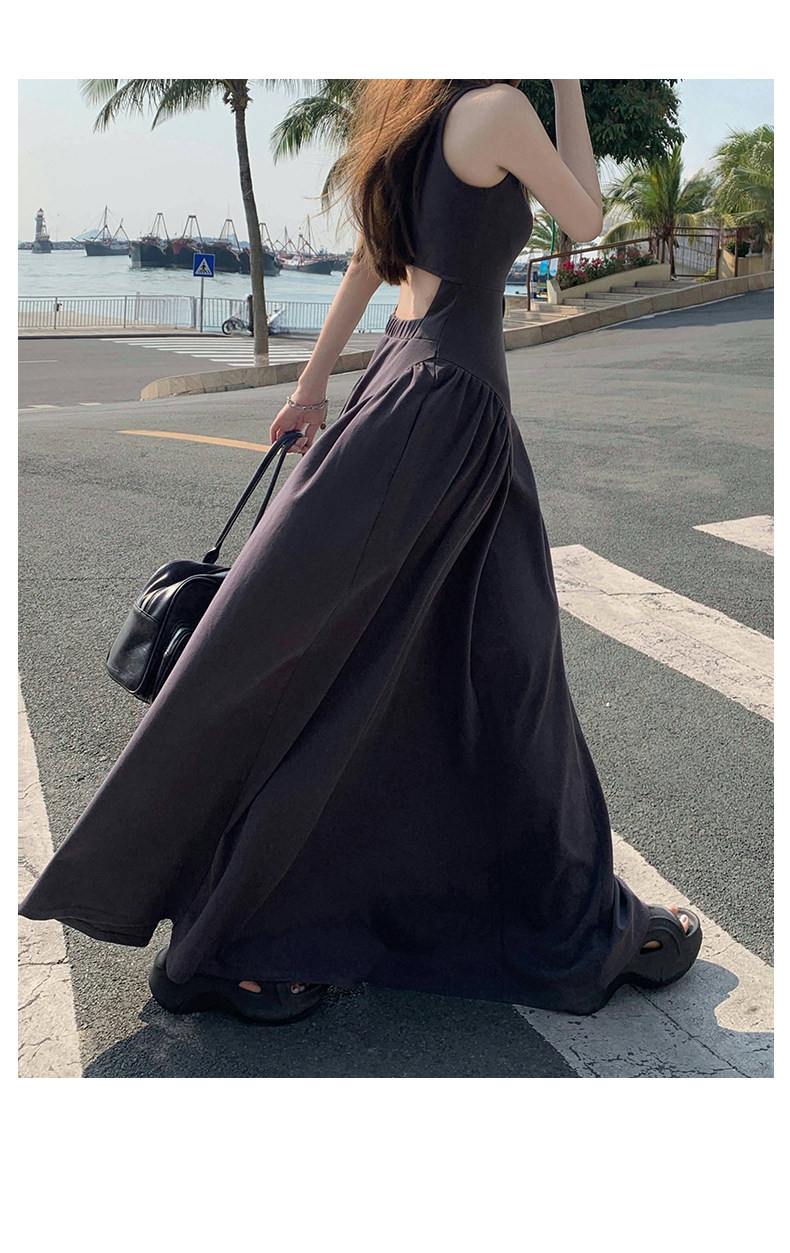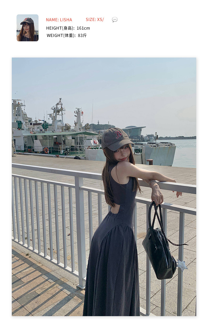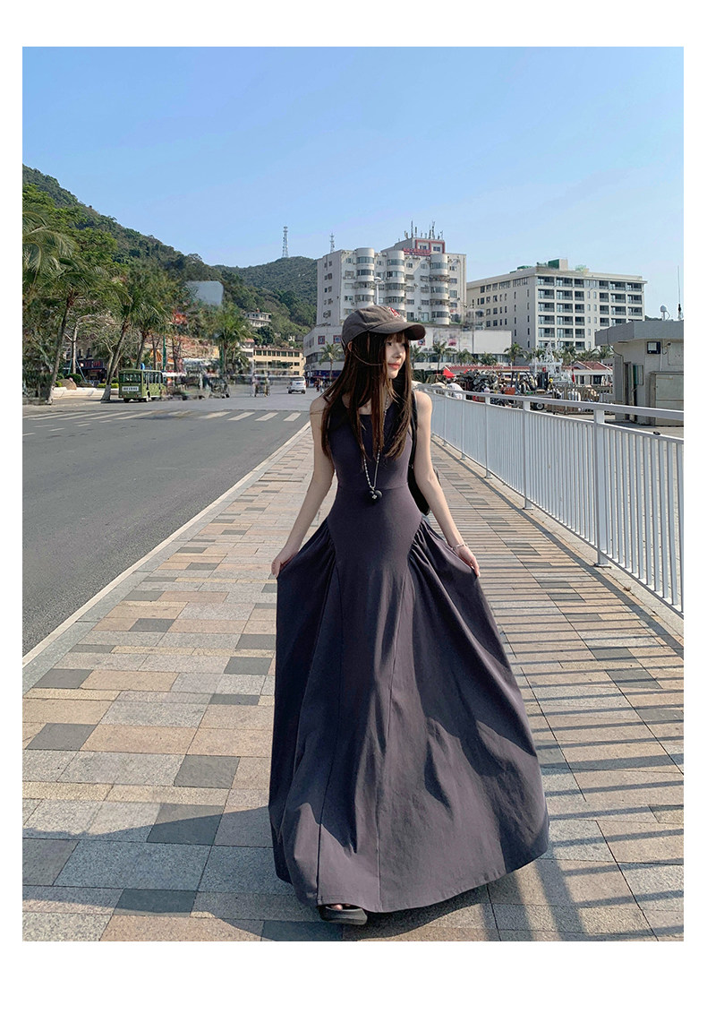 French-Style Slim-Fitting, High-End, Elegant Dress with Backless Design, Sexy Waist-Cinching, Flared A-Line Long Dress
