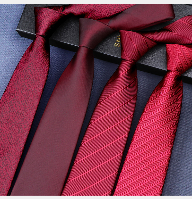 Red Tie for Men, No Need to Tie, Wedding Business Groom Zipper Style Lazy Formal Wear Men's Hand-Tied Burgundy Wedding Suit