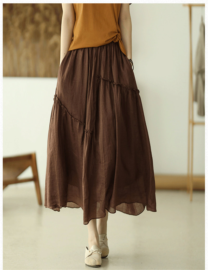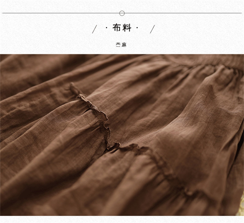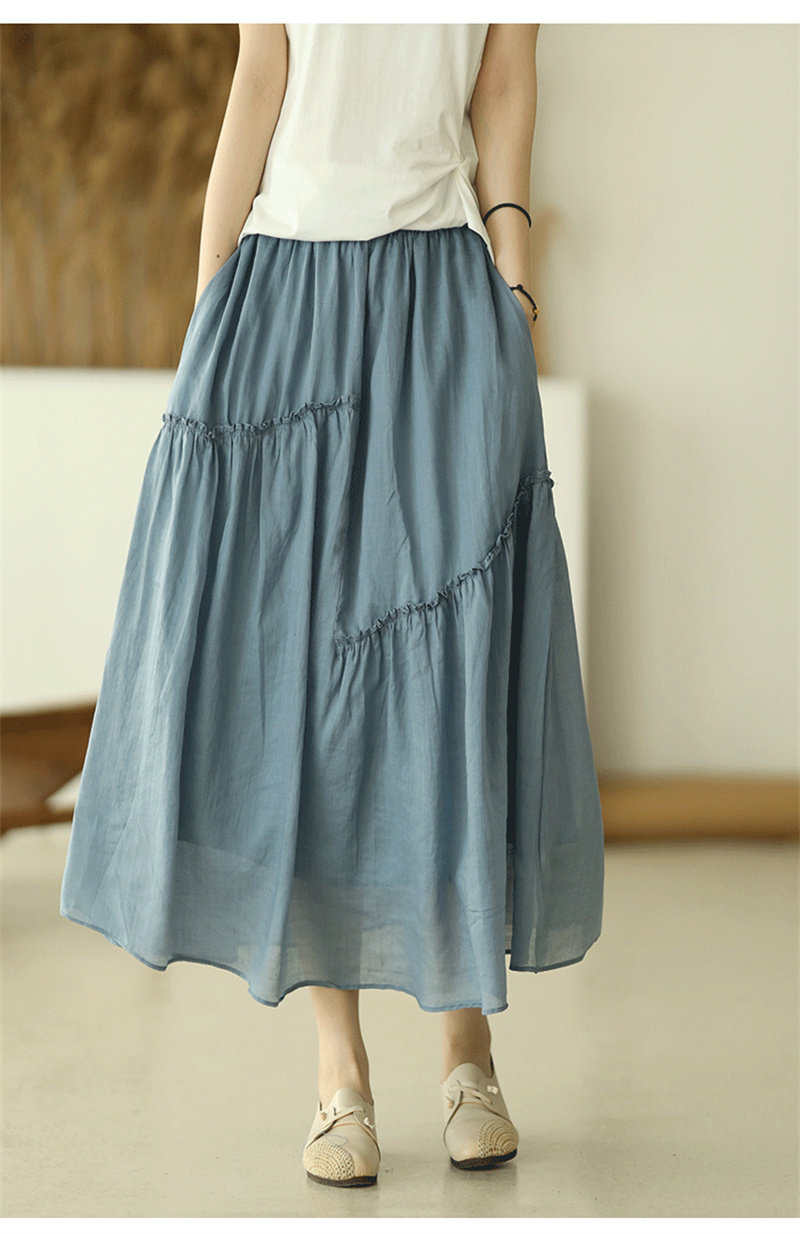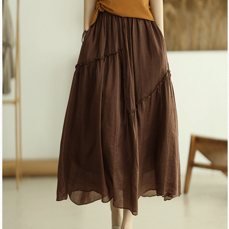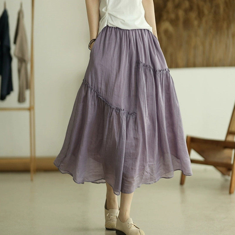 Solid Color Ramie Skirt for Women Summer Literary and Versatile Lace Fairy Elegant Double Layer Loose A-Line Long Skirt for Small People