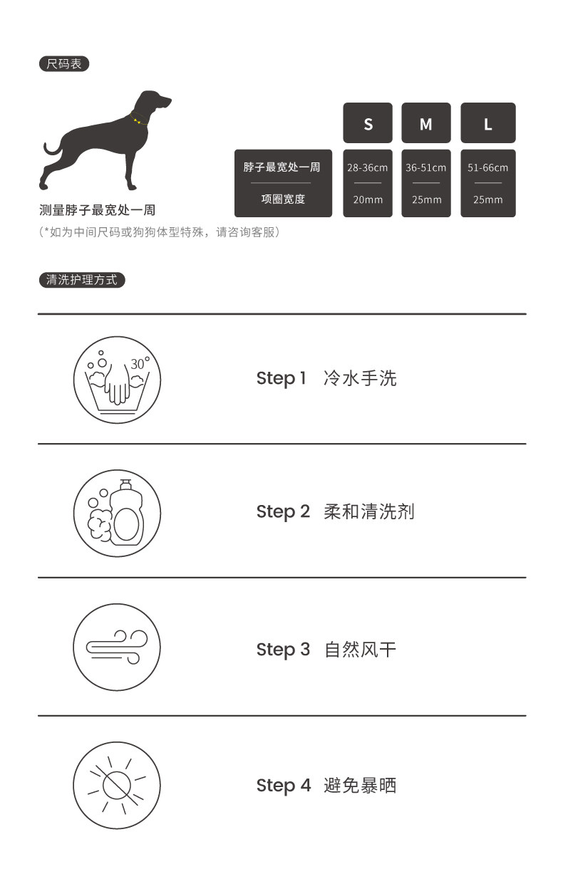Applicable Sizes S Suitable for Neck Circumference 28-36cm[Recommended Weight 4-10kg],M Suitable for Neck Circumference 36-51cm[Recommended Weight 10-25kg],L Suitable for Neck Circumference 51-66cm[Recommended Weight 25-50kg]