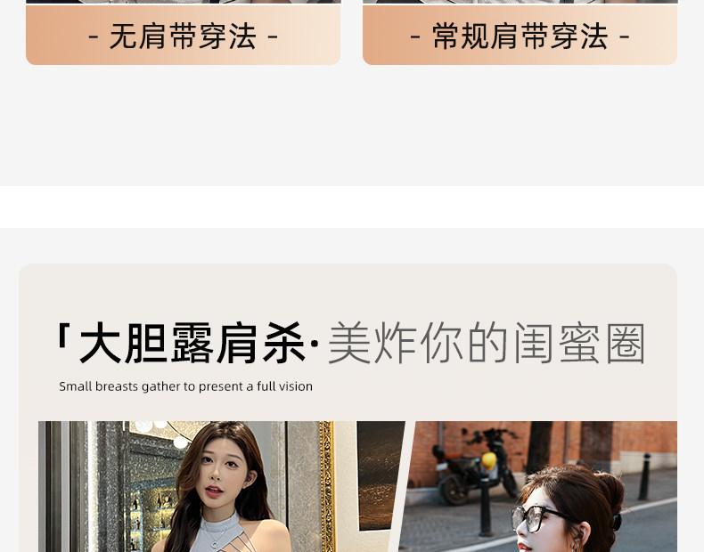 Strapless underwear for women, push-up, non-slip, small breasts, beautiful back, tube top, white invisible bra, special for summer suspenders