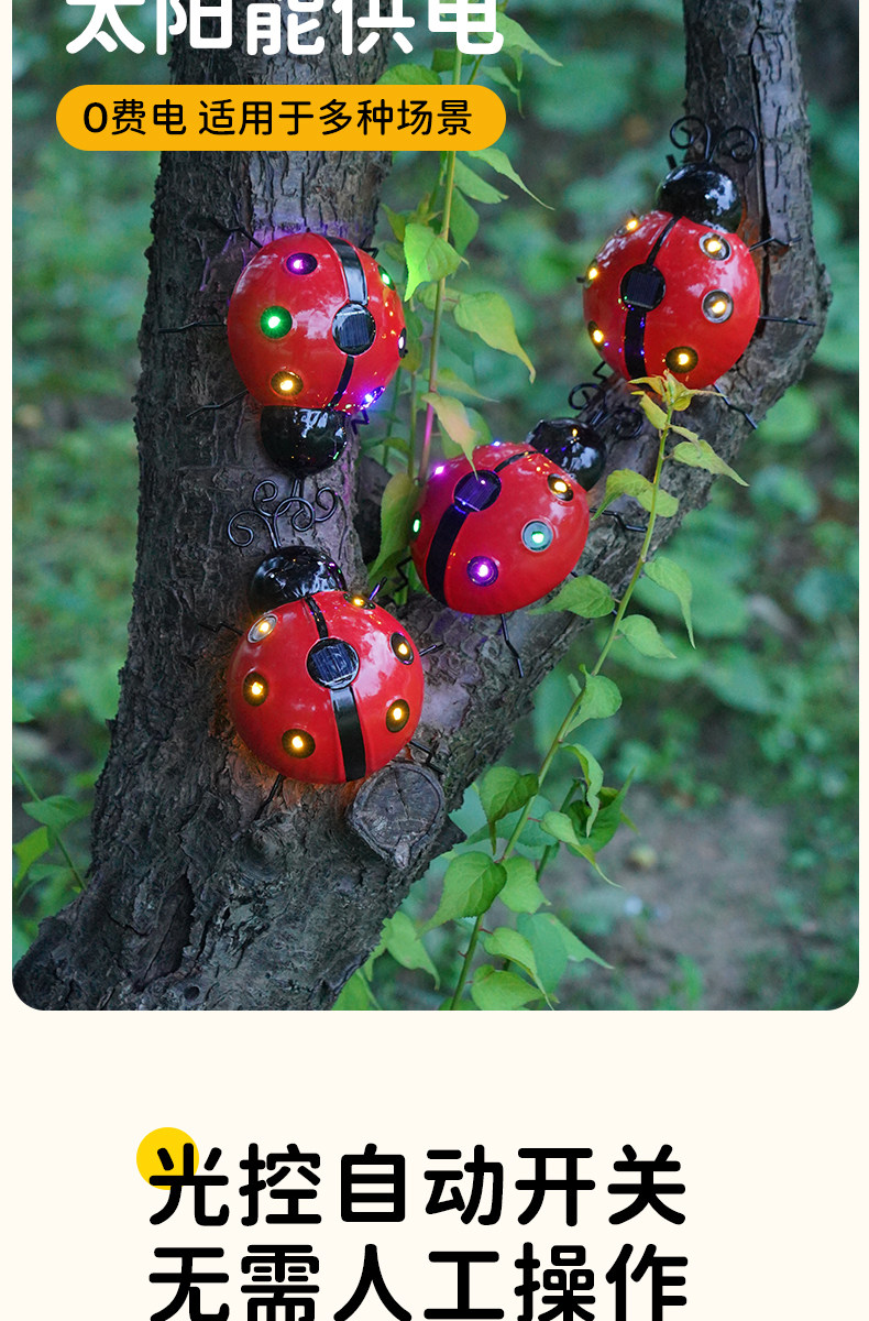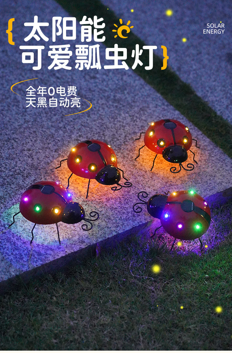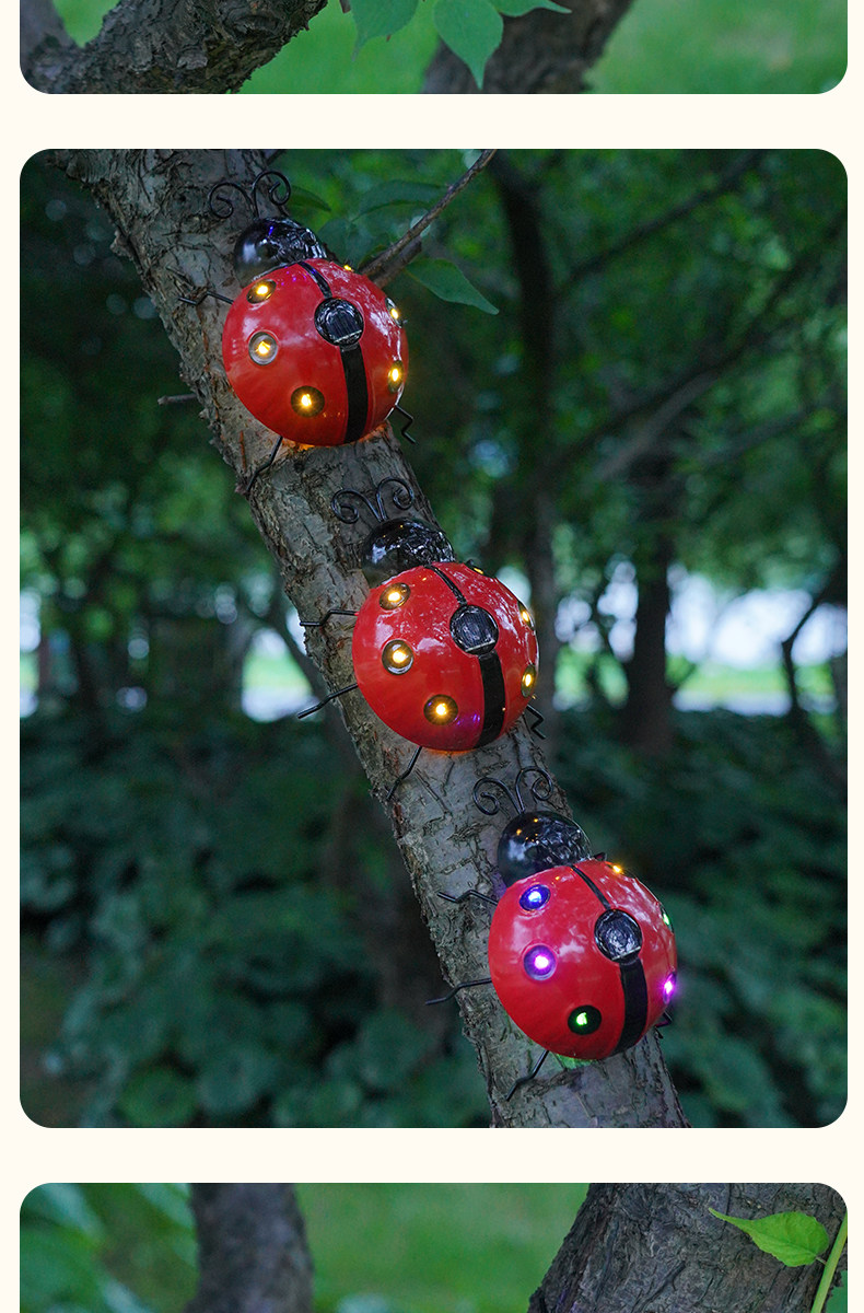 New outdoor solar iron seven-star ladybug decorative lamp garden simulation animal wall-mounted garden lamp