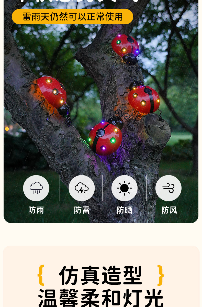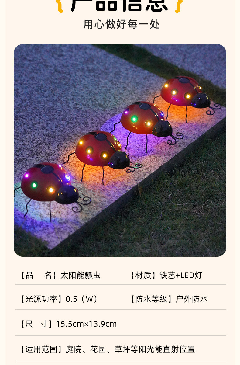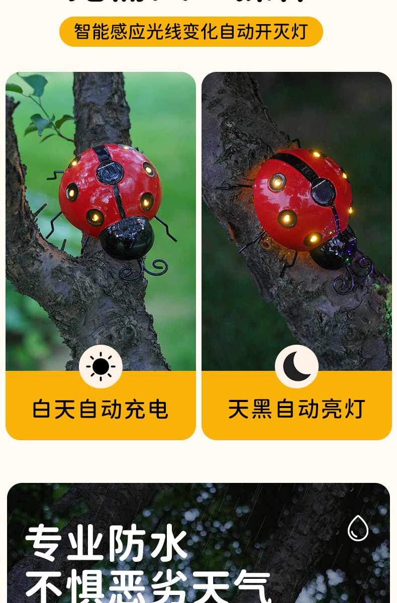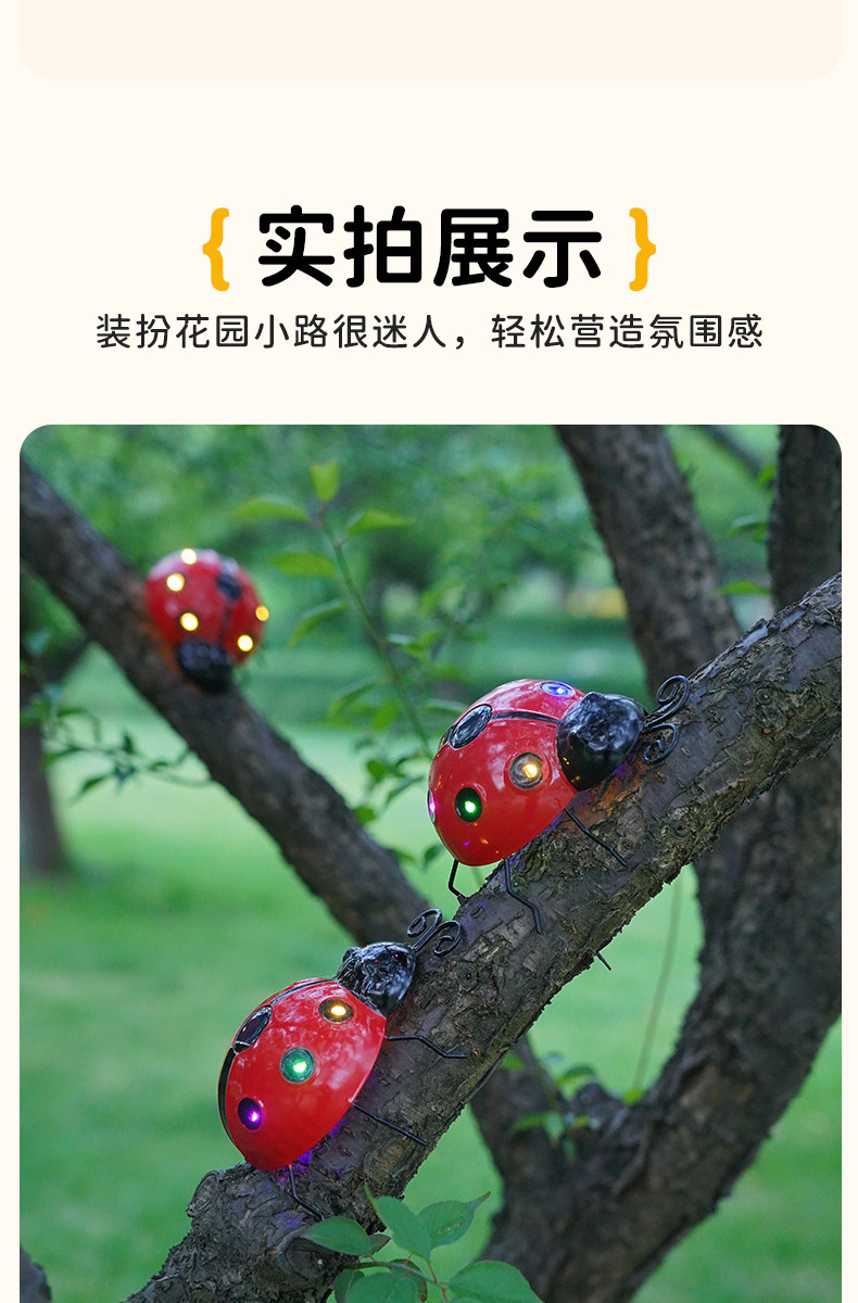 New outdoor solar iron seven-star ladybug decorative lamp garden simulation animal wall-mounted garden lamp