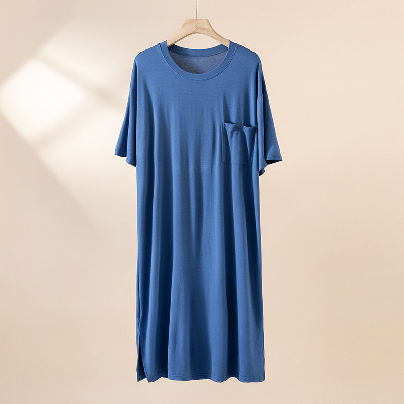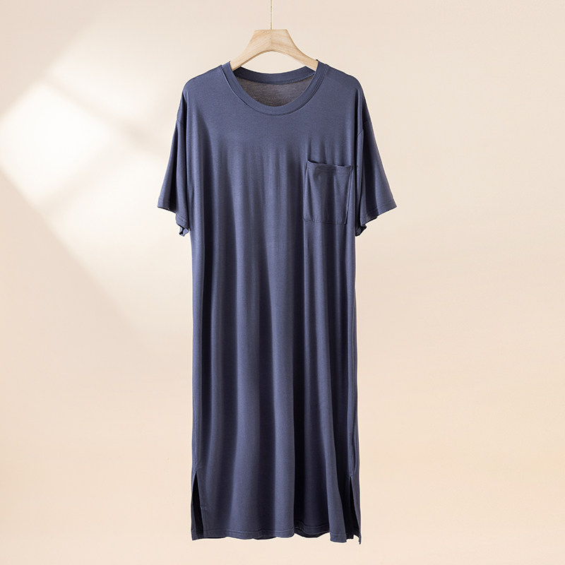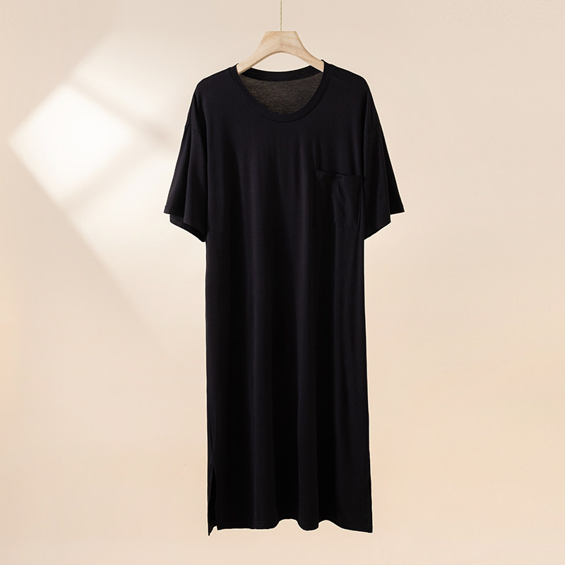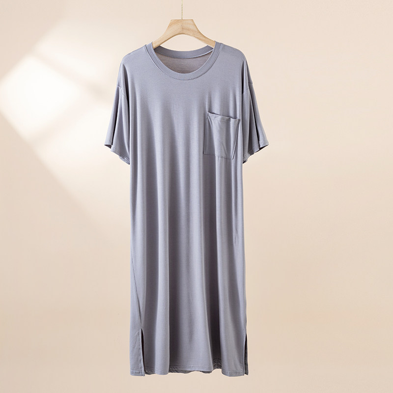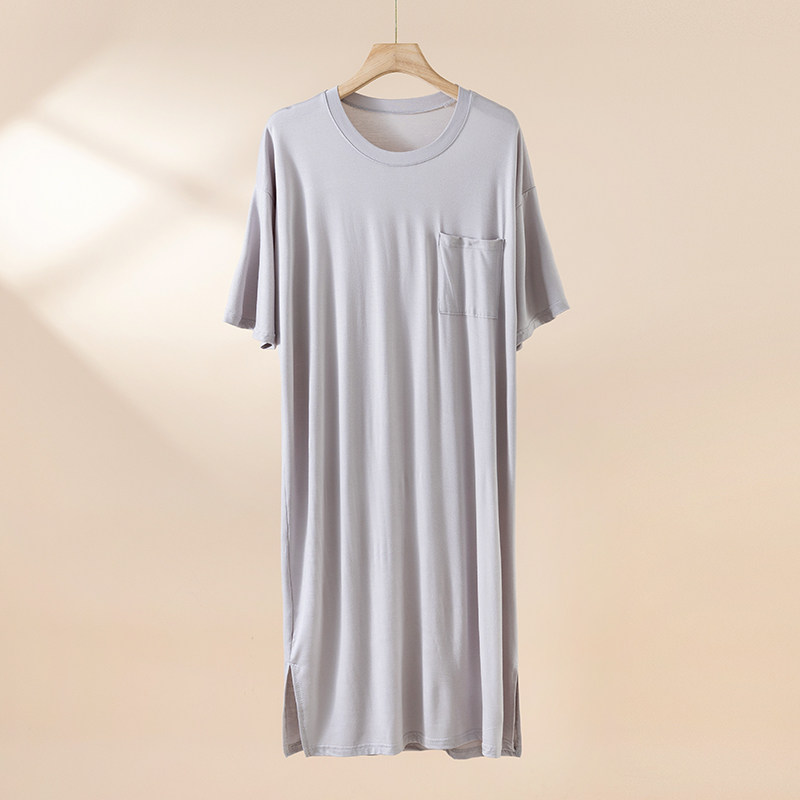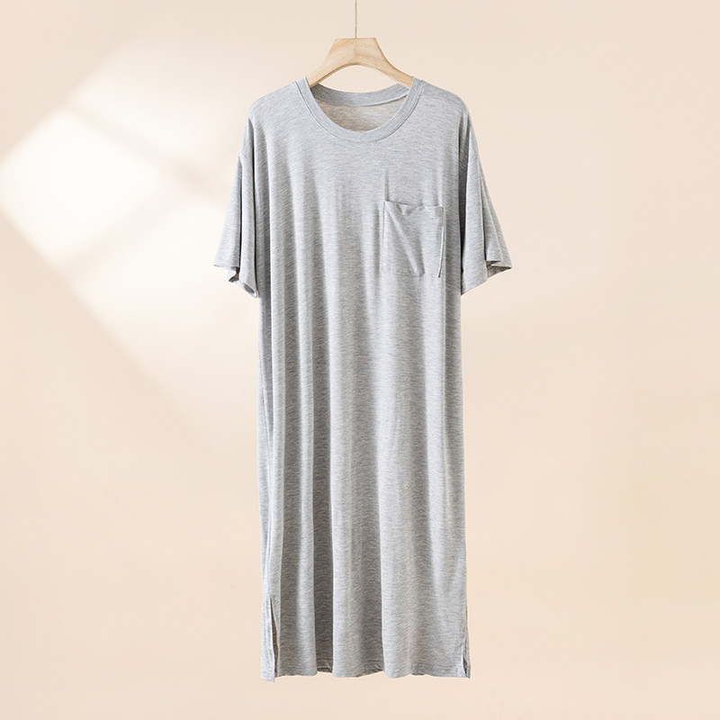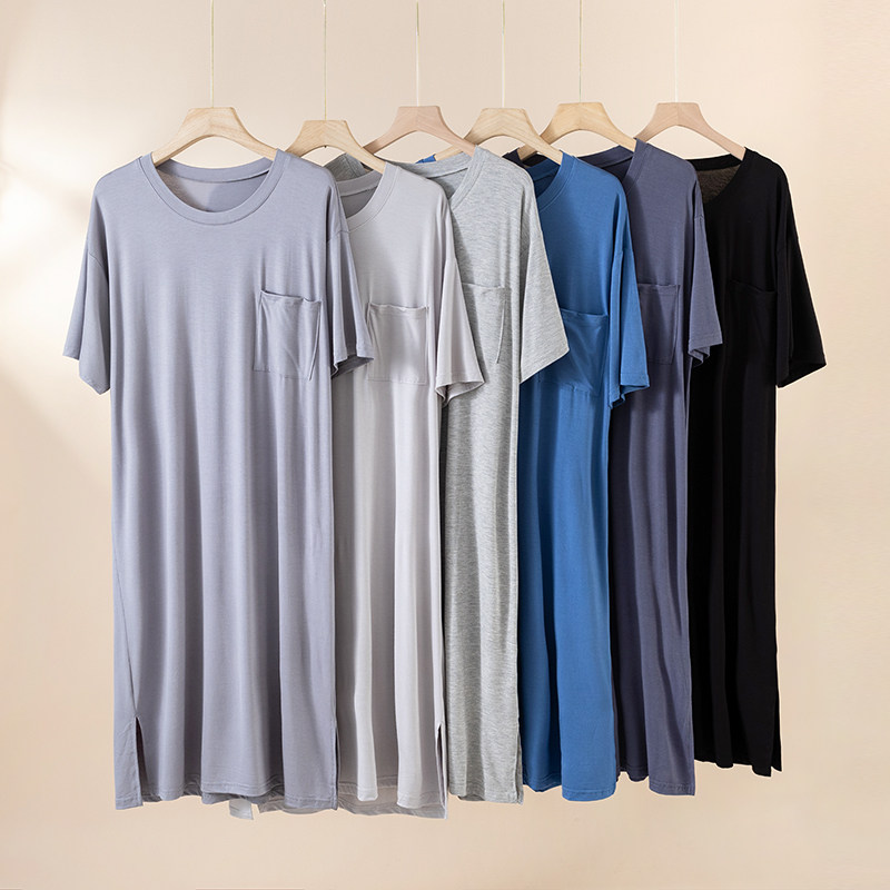 Men's Nightgown Ice Silk One-Piece Pajamas Summer Thin Plus Fat Enlarged Home Clothes Loose Nightgown Robe