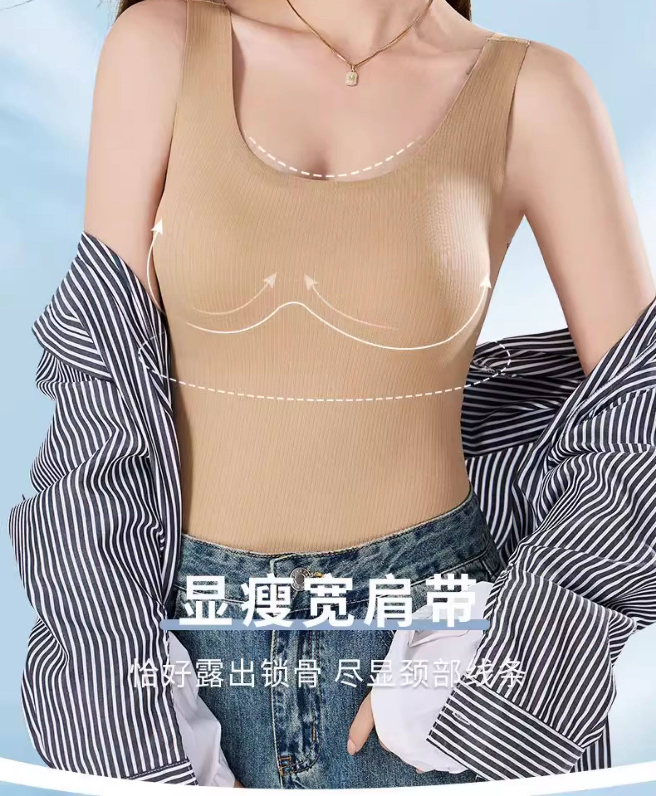 Beijiaofen sling beautiful back bra all-in-one wide shoulder strap vest 2025 new style inner wear for fat mm with breast pads to cover the side breasts