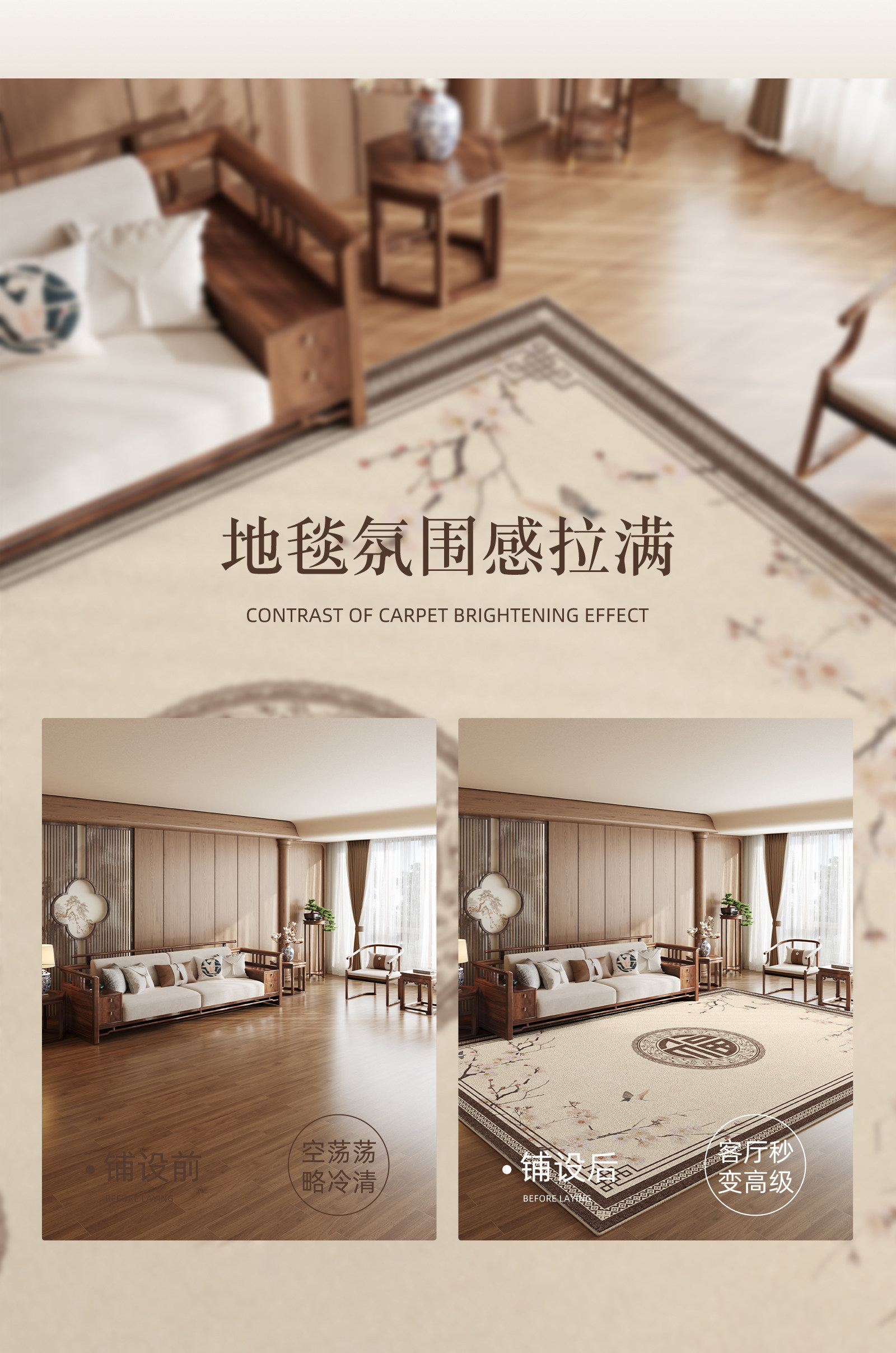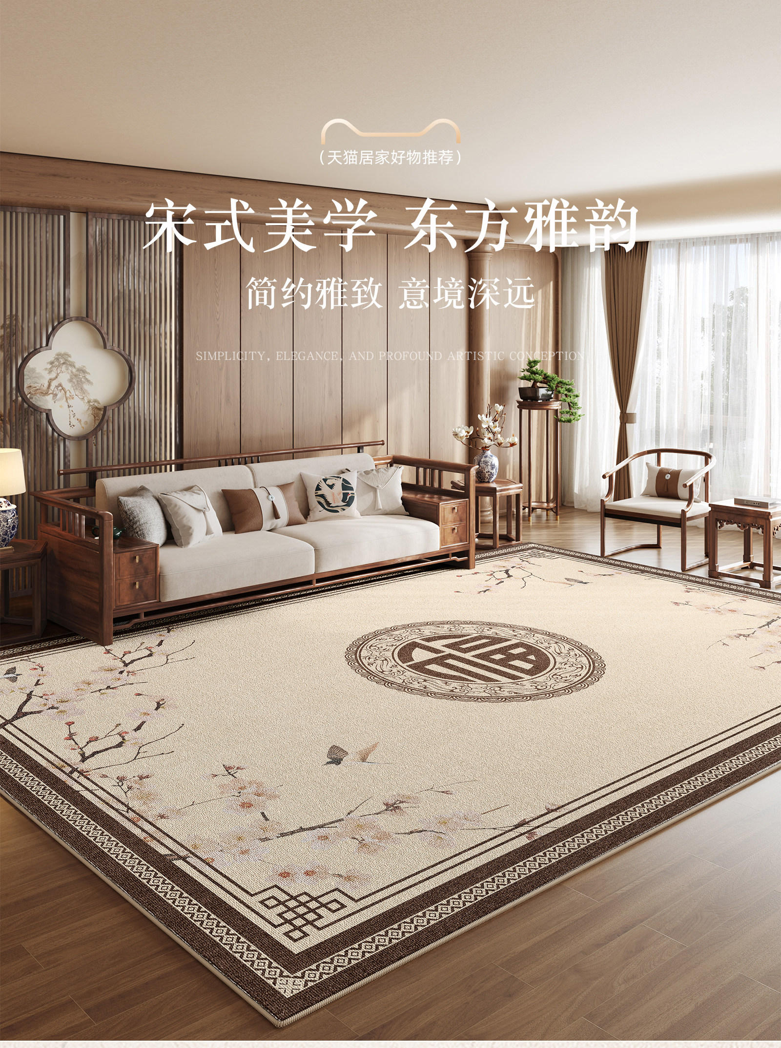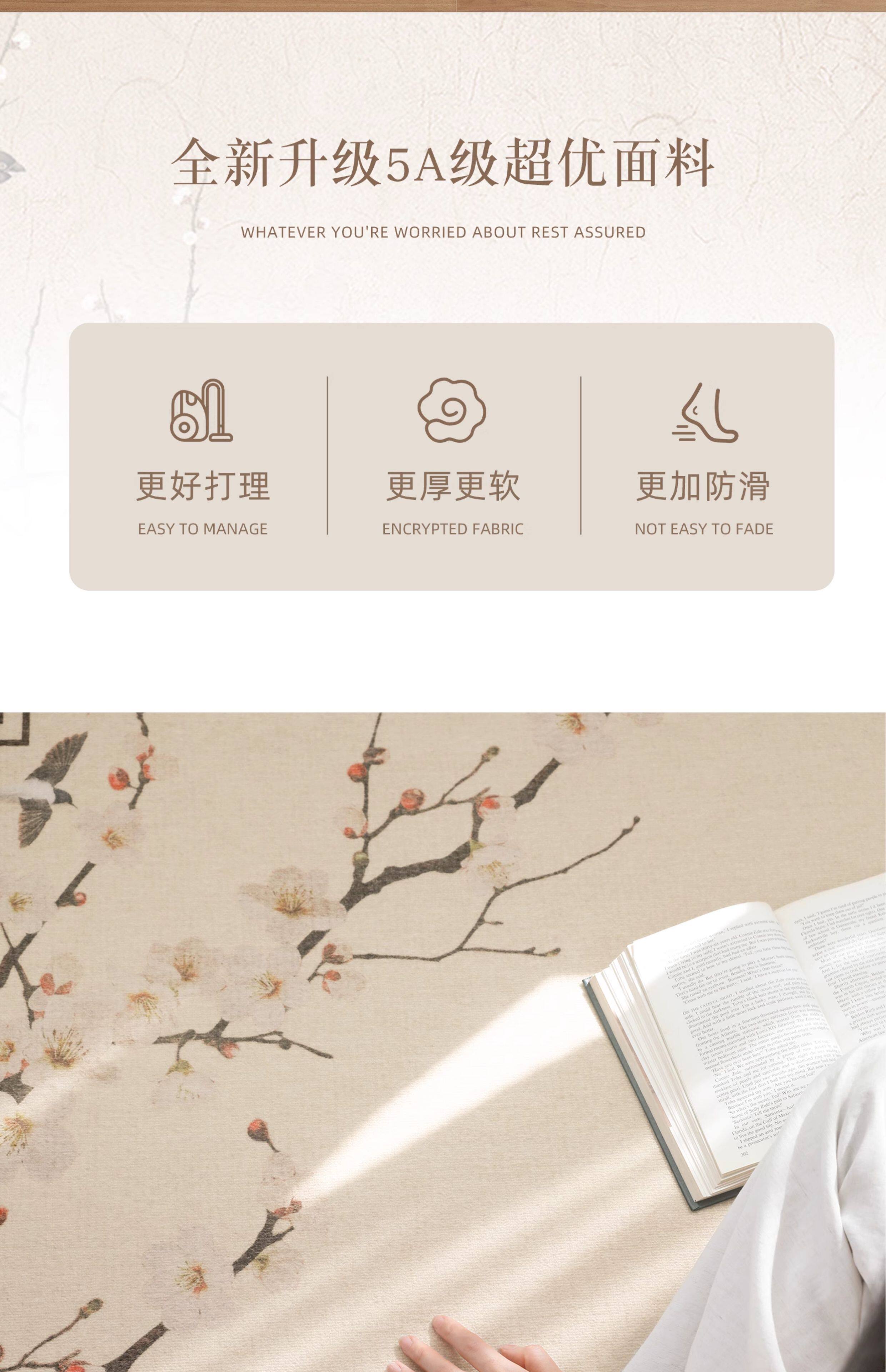 Carpet for Living Room 2026 New Model, New Chinese Style, Washable and Wipeable Floor Mat, Waterproof and Stain-Resistant, Bedroom Bedside Rug, Thickened and Soundproof