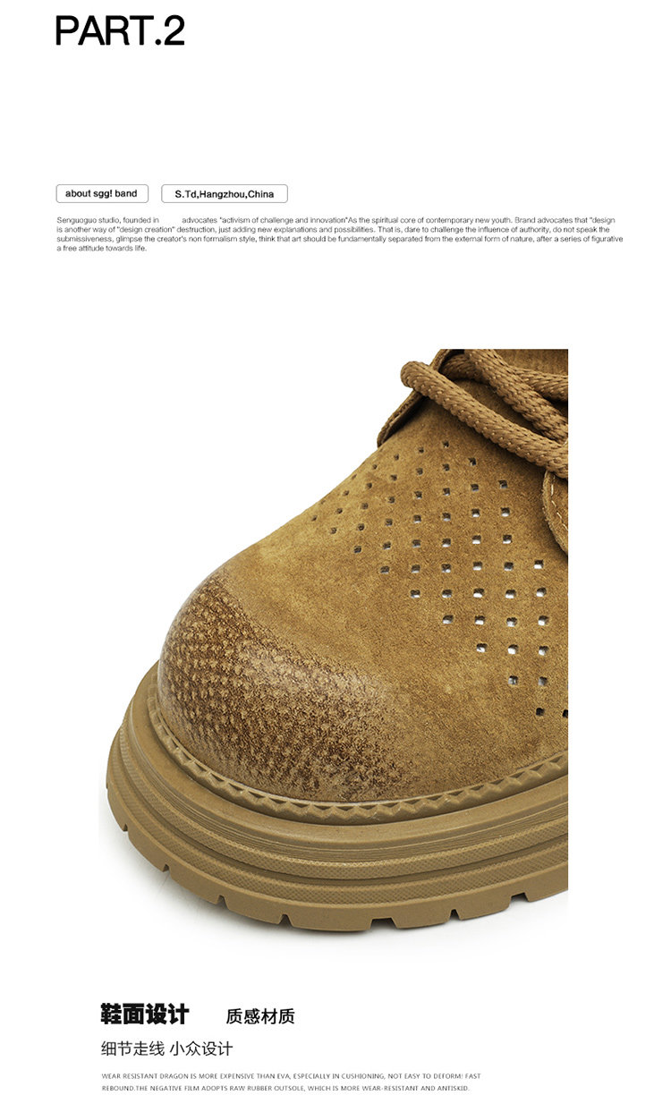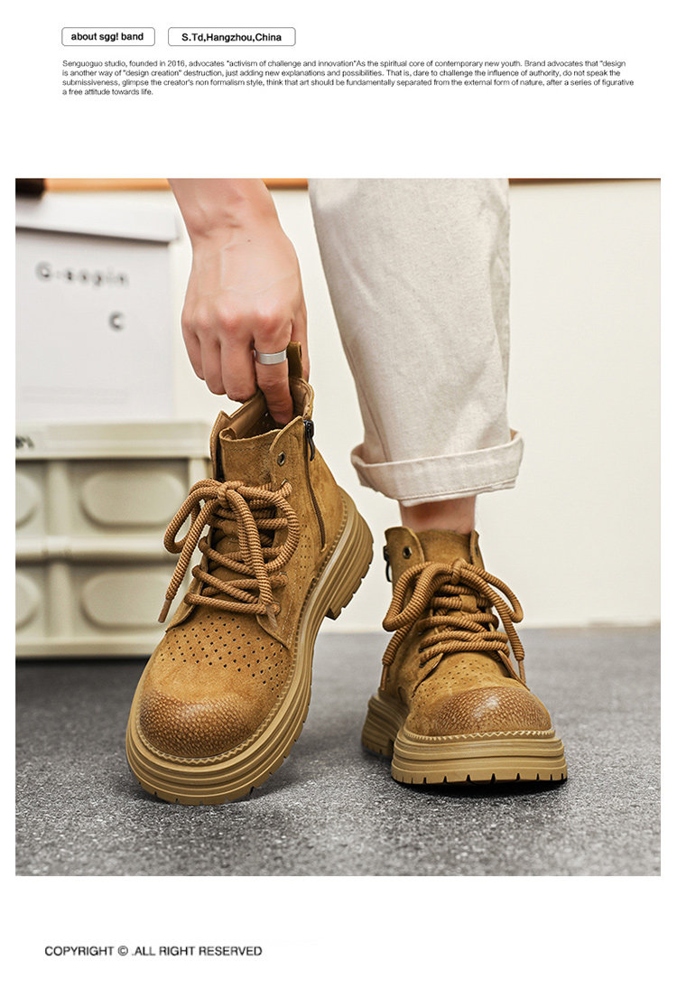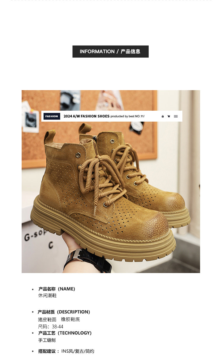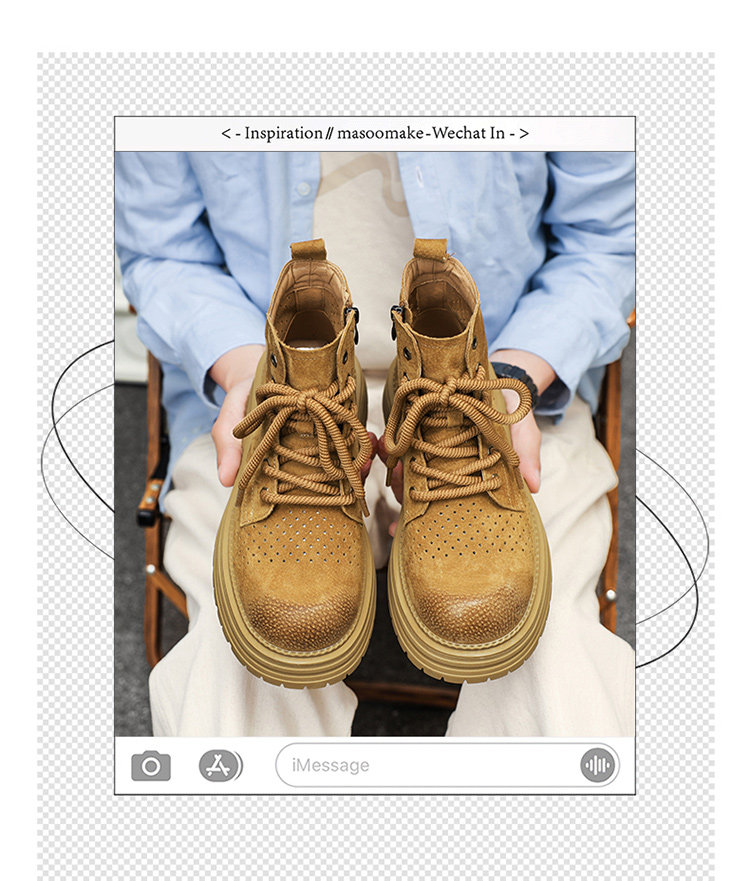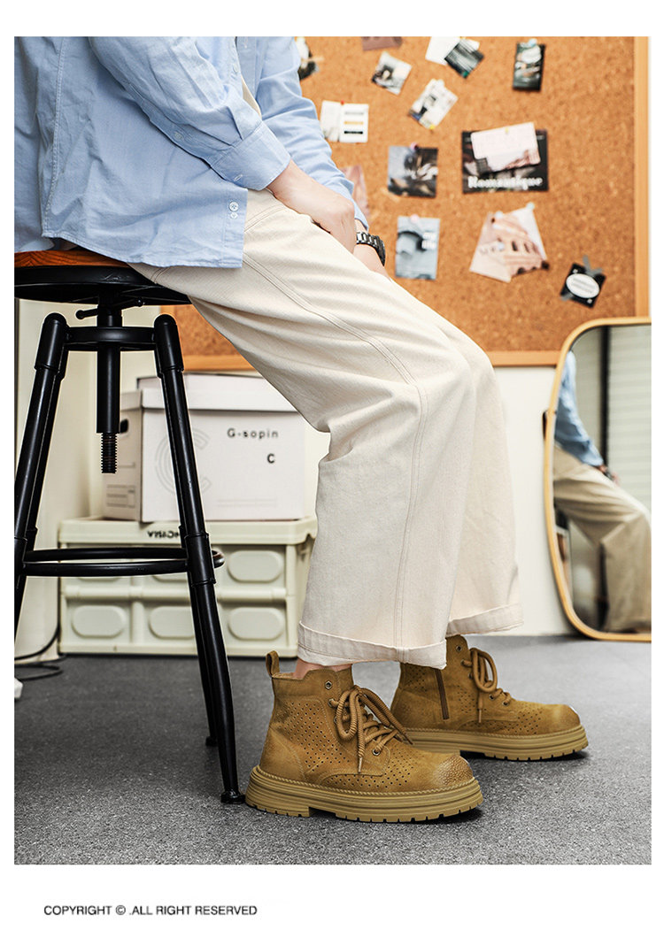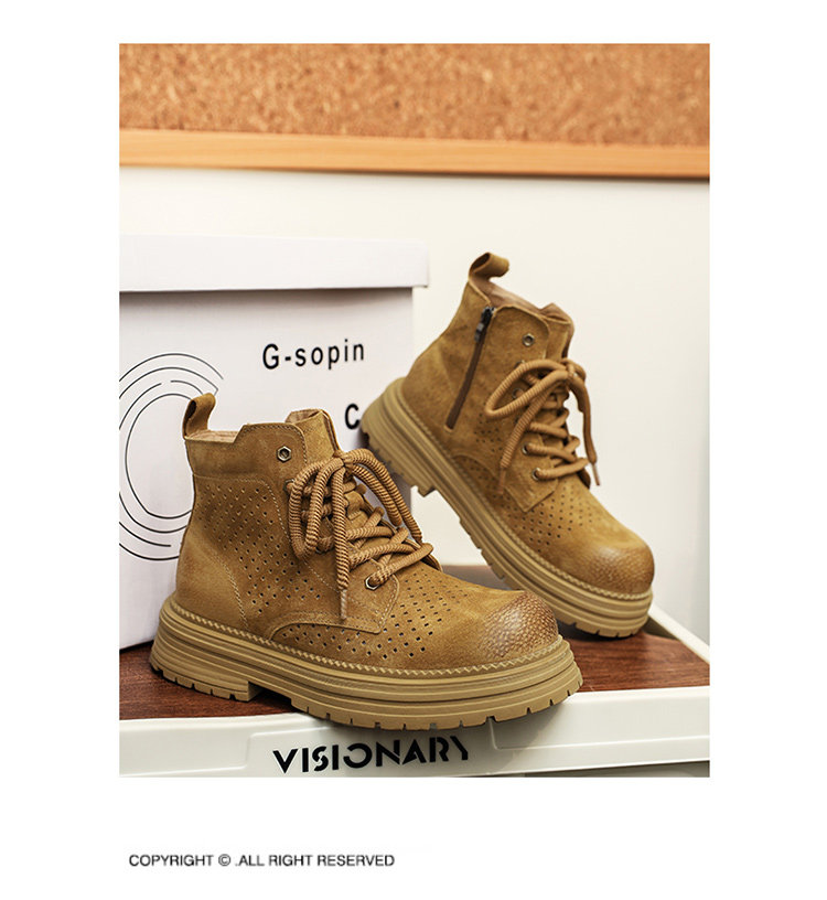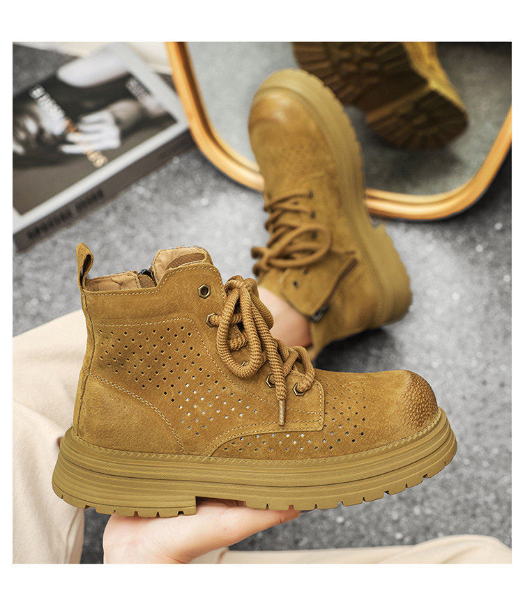 Martin Boots for Men 2025 New Summer Hollow Breathable Couple High-Top Shoes Genuine Leather Mid-Top Thick-Soled Work Boots