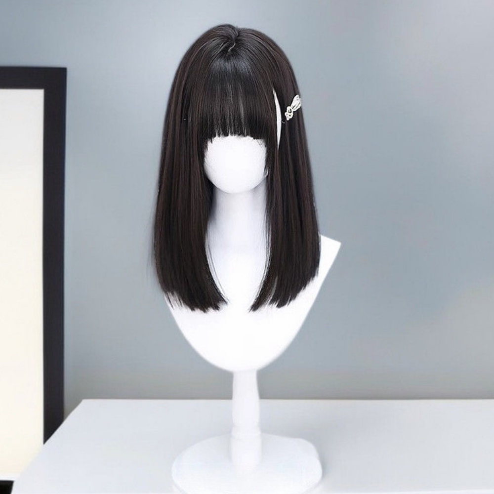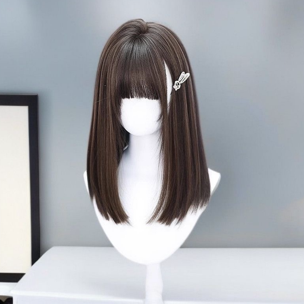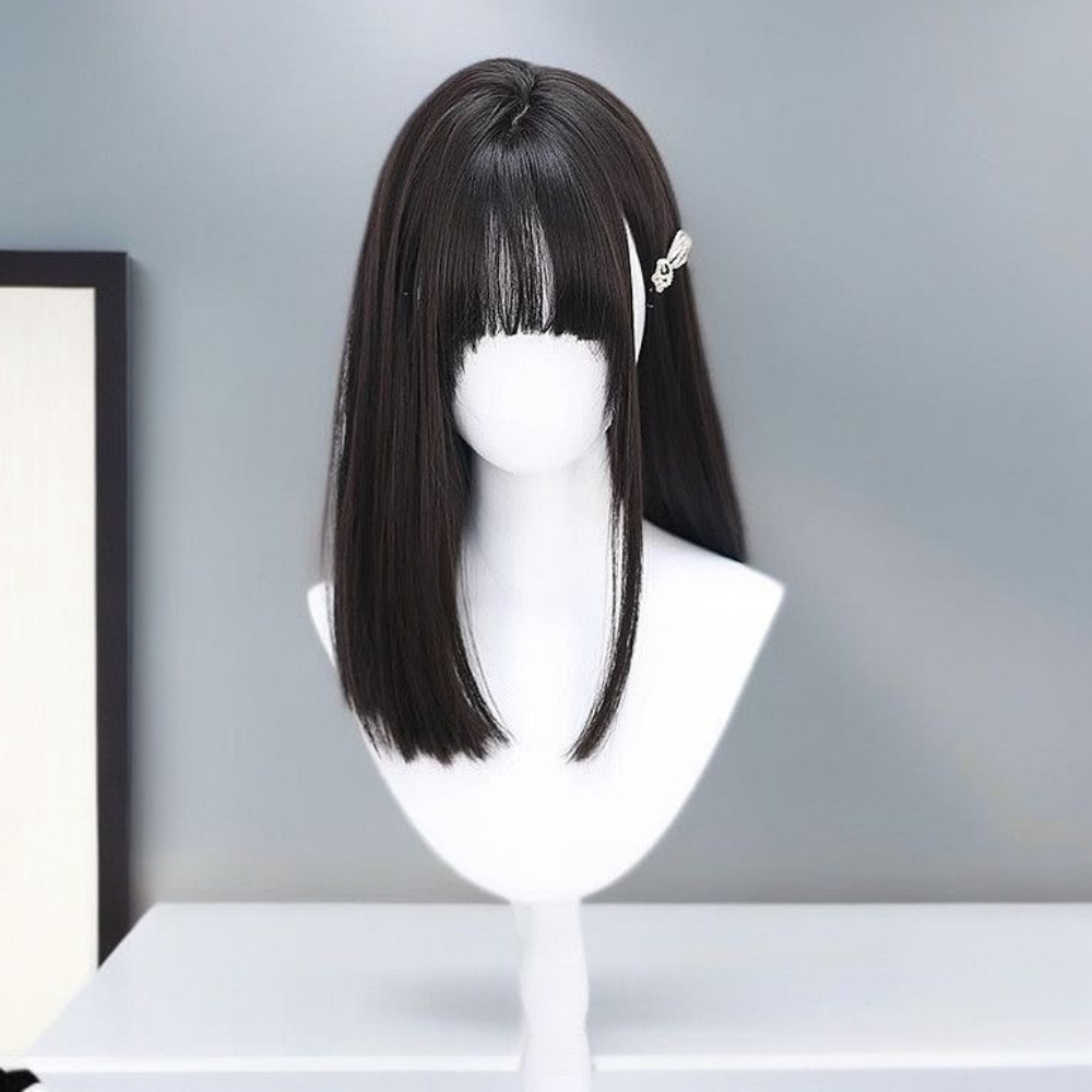 Wig for Women, Medium-Long Hair, Lolita Sweet and Natural Style, Jk Daily Wear, Long Straight Hair, Korean Style, Age-Reducing, Full Head Wig with Bangs
