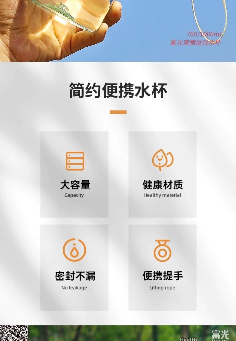 Fuguang Large Capacity Men's Summer Portable Plastic Water Cup, Thickened Cup, New Outdoor Tea Brewing Space Cup
