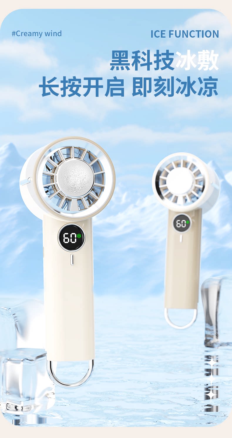 Ice-Cooled Handheld Mini Fan, USB Rechargeable, Portable Semiconductor Cooling Device, Powerful Wind