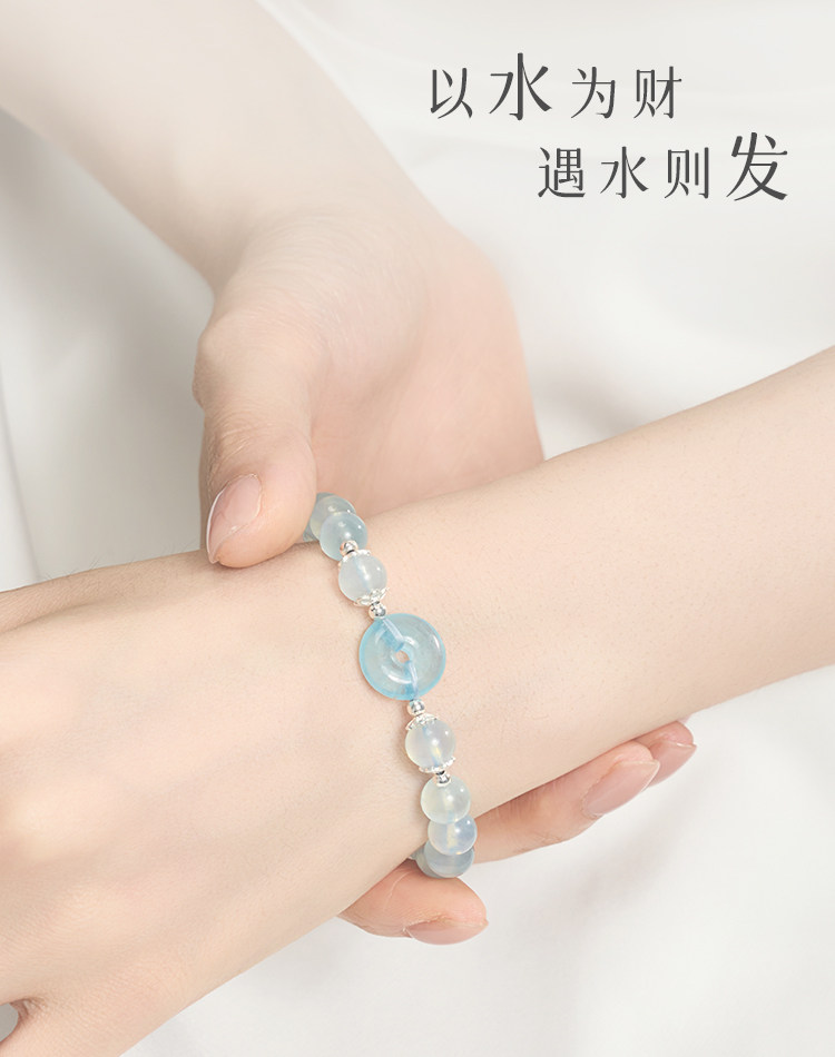 Natural aquamarine crystal bracelet for women genuine blue safety buckle bracelet for girls hydrating birthday New Year's Day gift