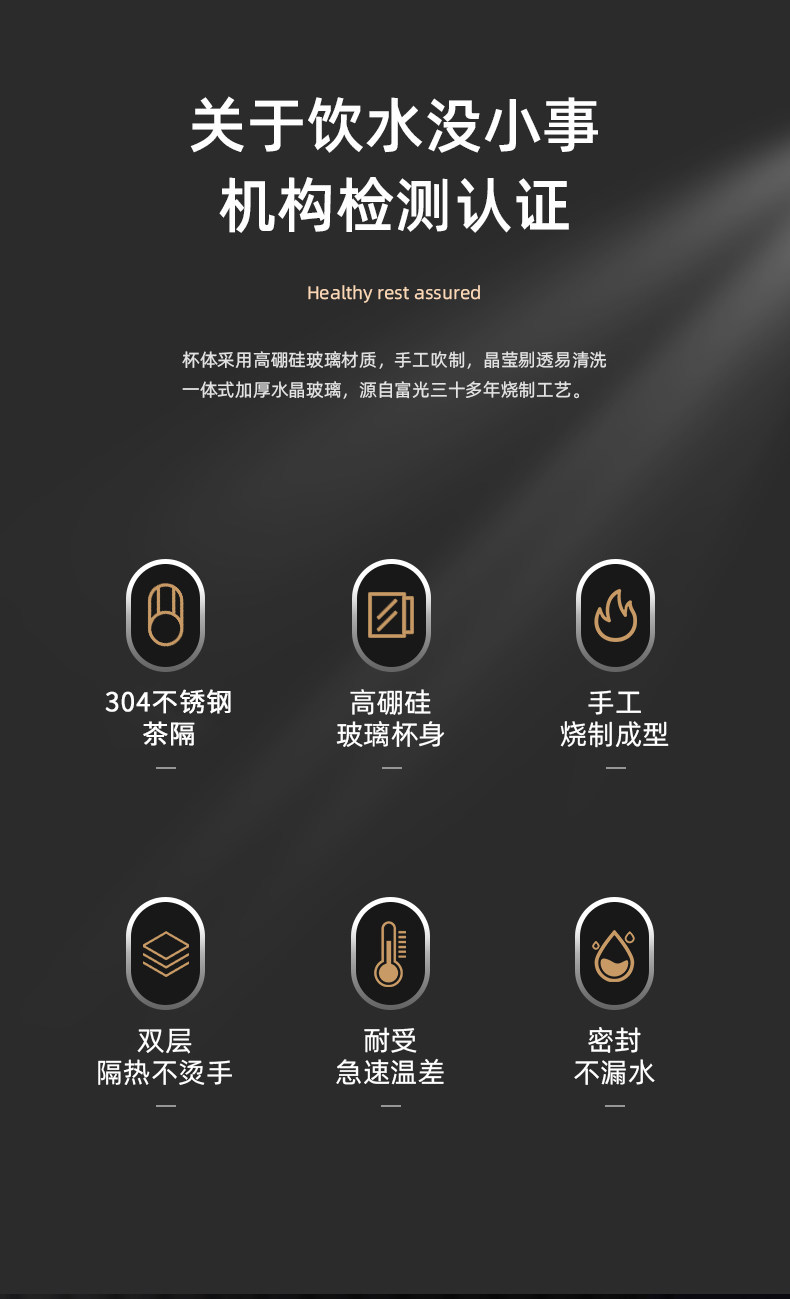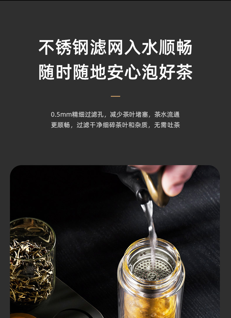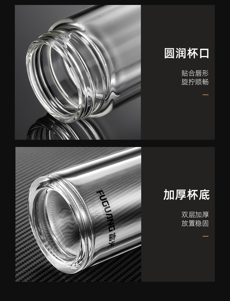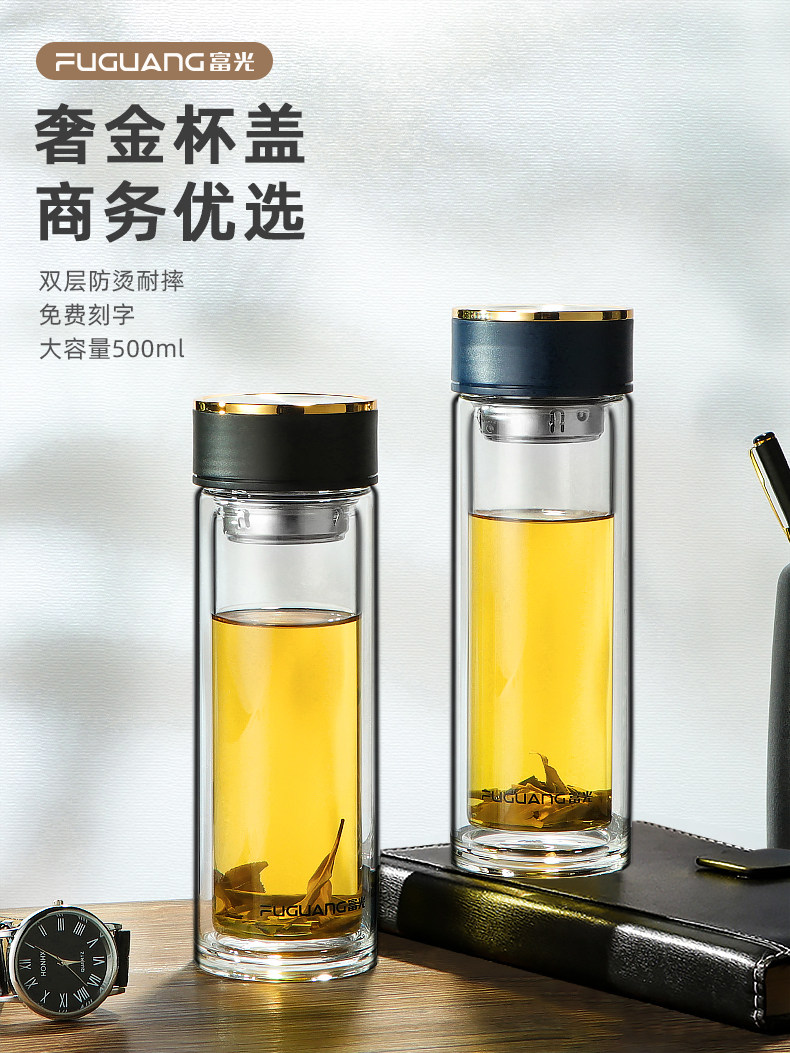 Fuguang Portable Thickened Glass Cup, Large Capacity, Men's Business Cup, Tea-Water Separation, Car Driver's Cup