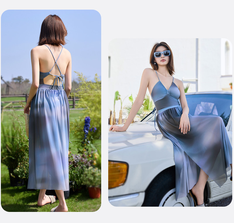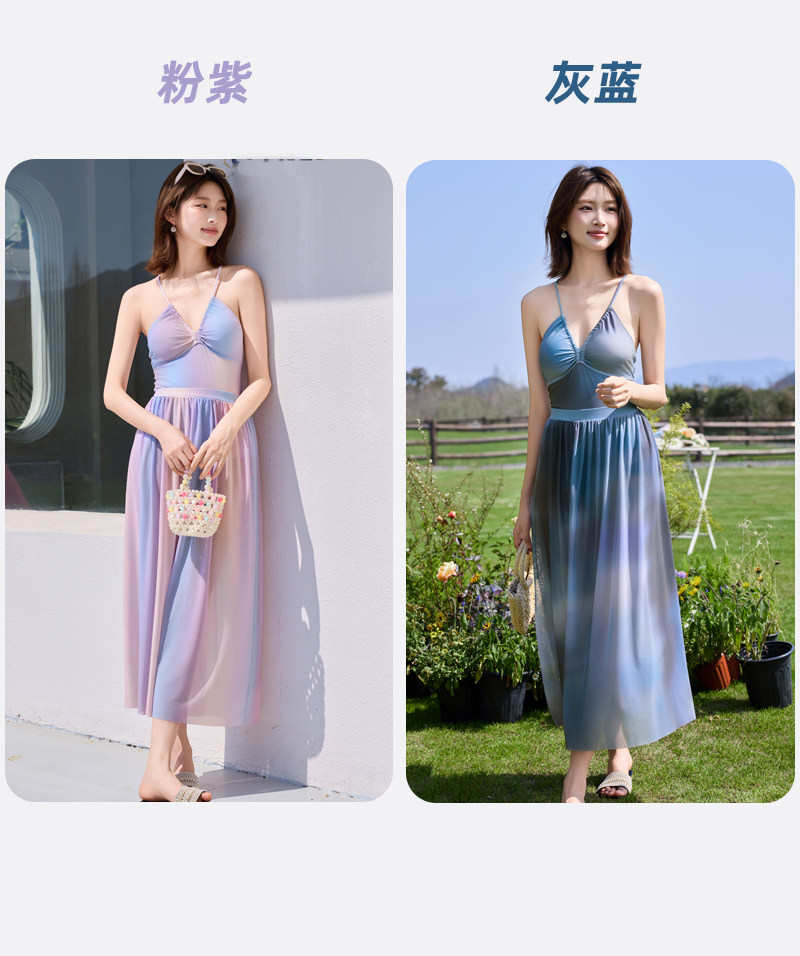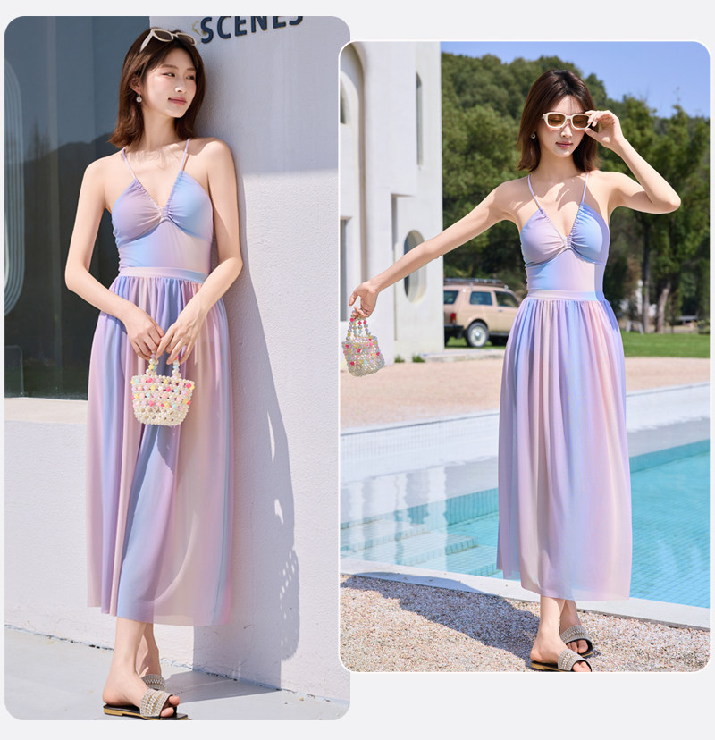 Long skirt swimsuit for women 2025 new high-end one-piece hot spring seaside vacation style sexy pure desire bikini