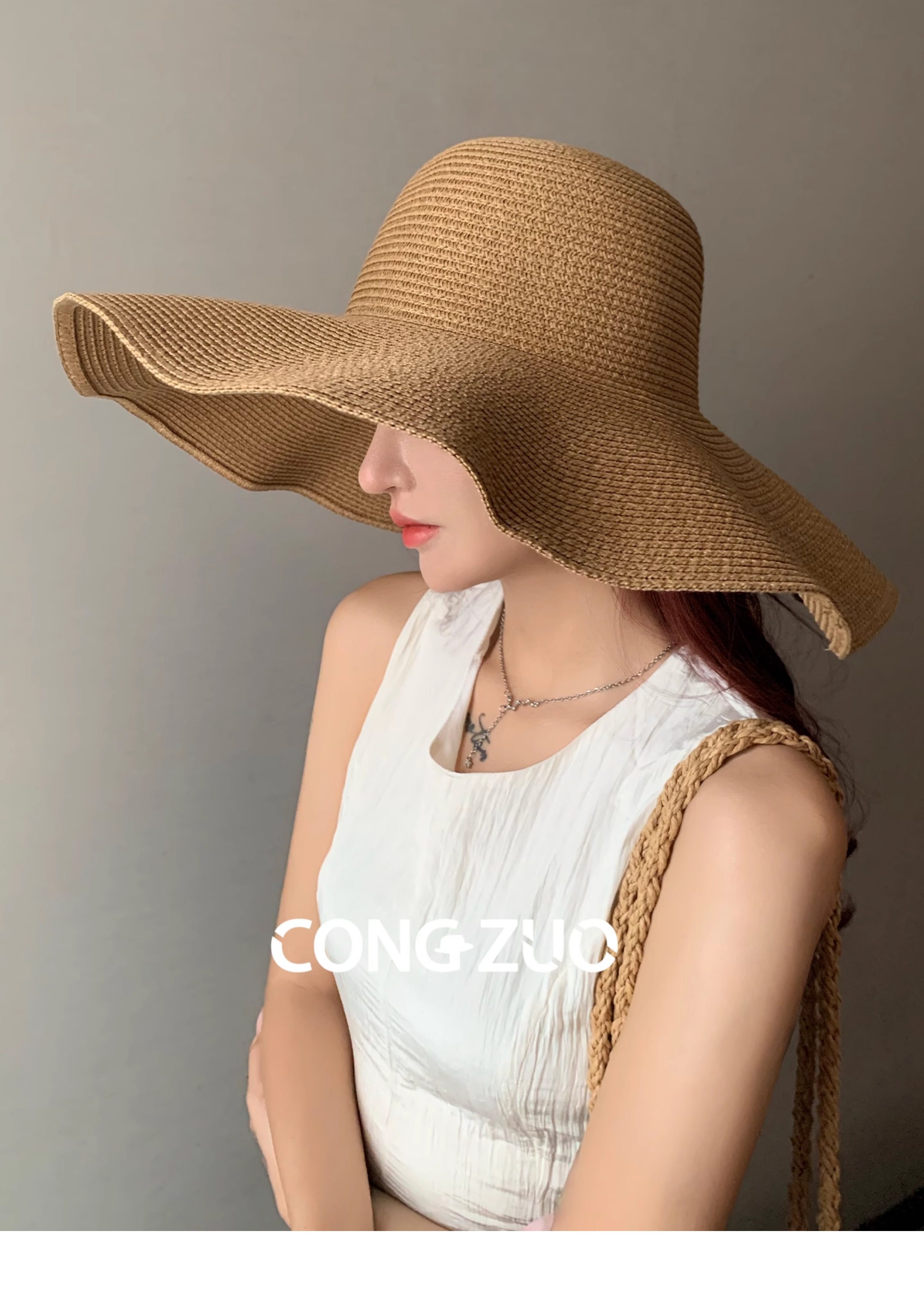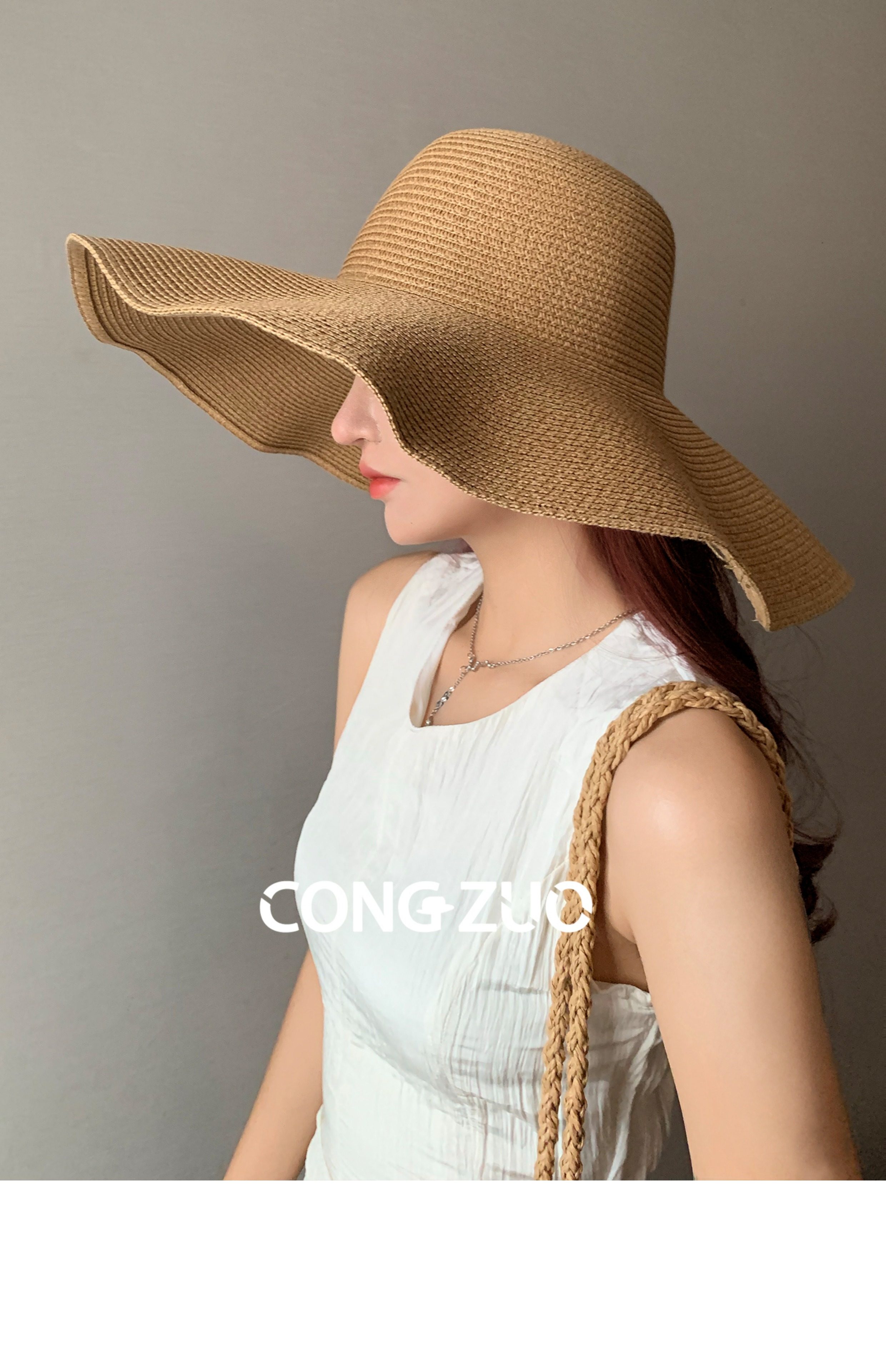 High-end version of straw hat for women with large brim, summer sun protection, UV protection, vacation seaside sun hat, straw hat