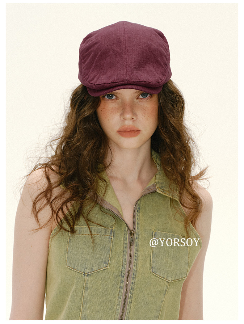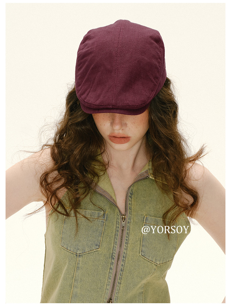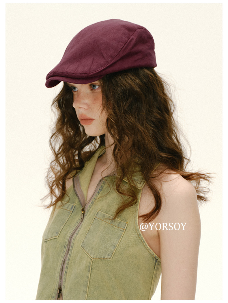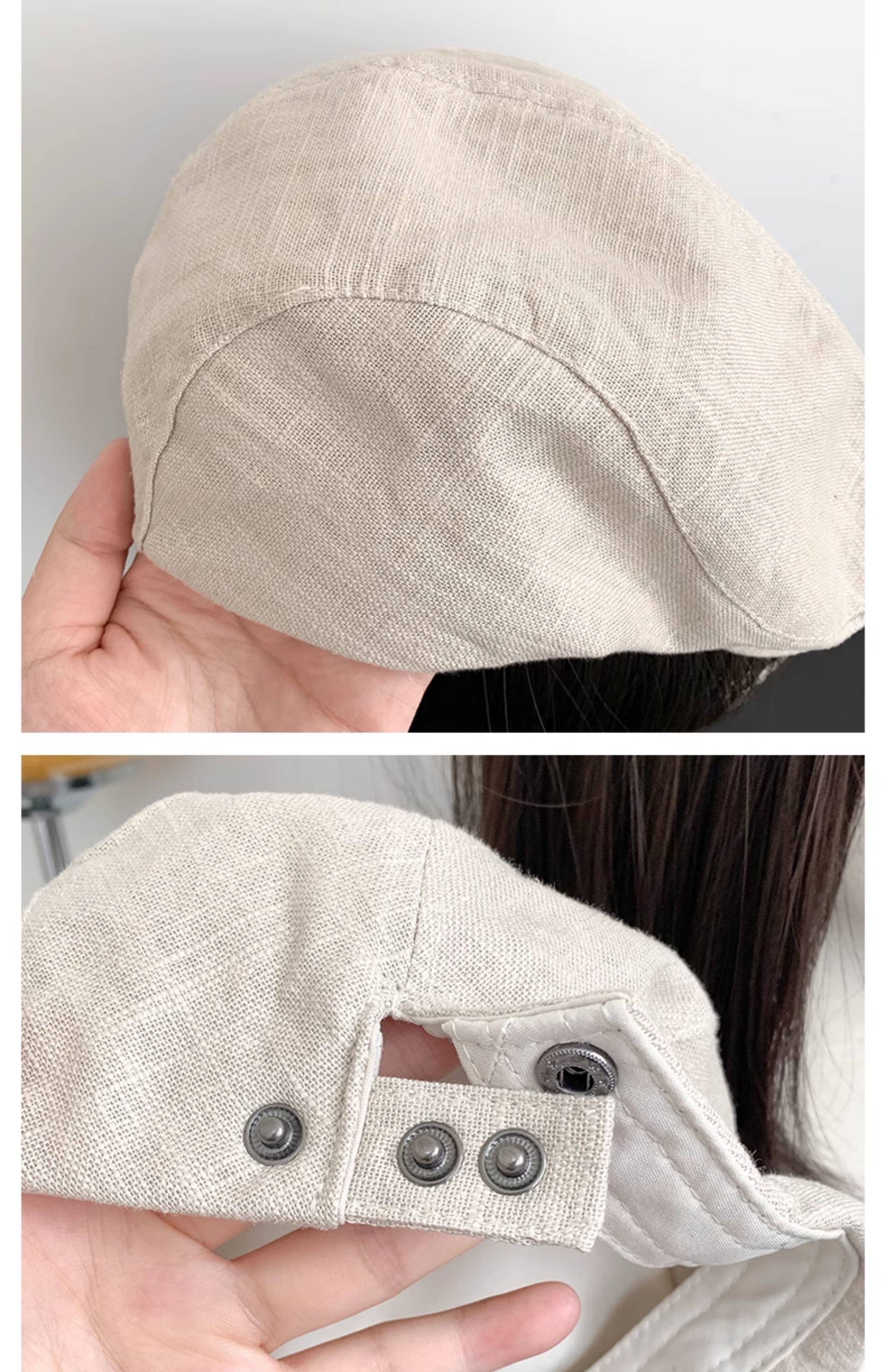 Retro White-Red Peaked Cap for Women, Summer Thin Cotton and Linen Street Newsboy Cap, Large Head Beret