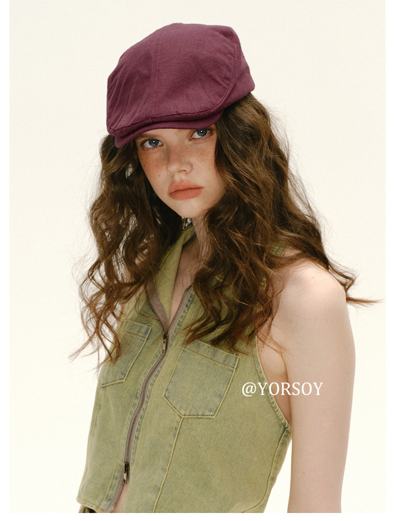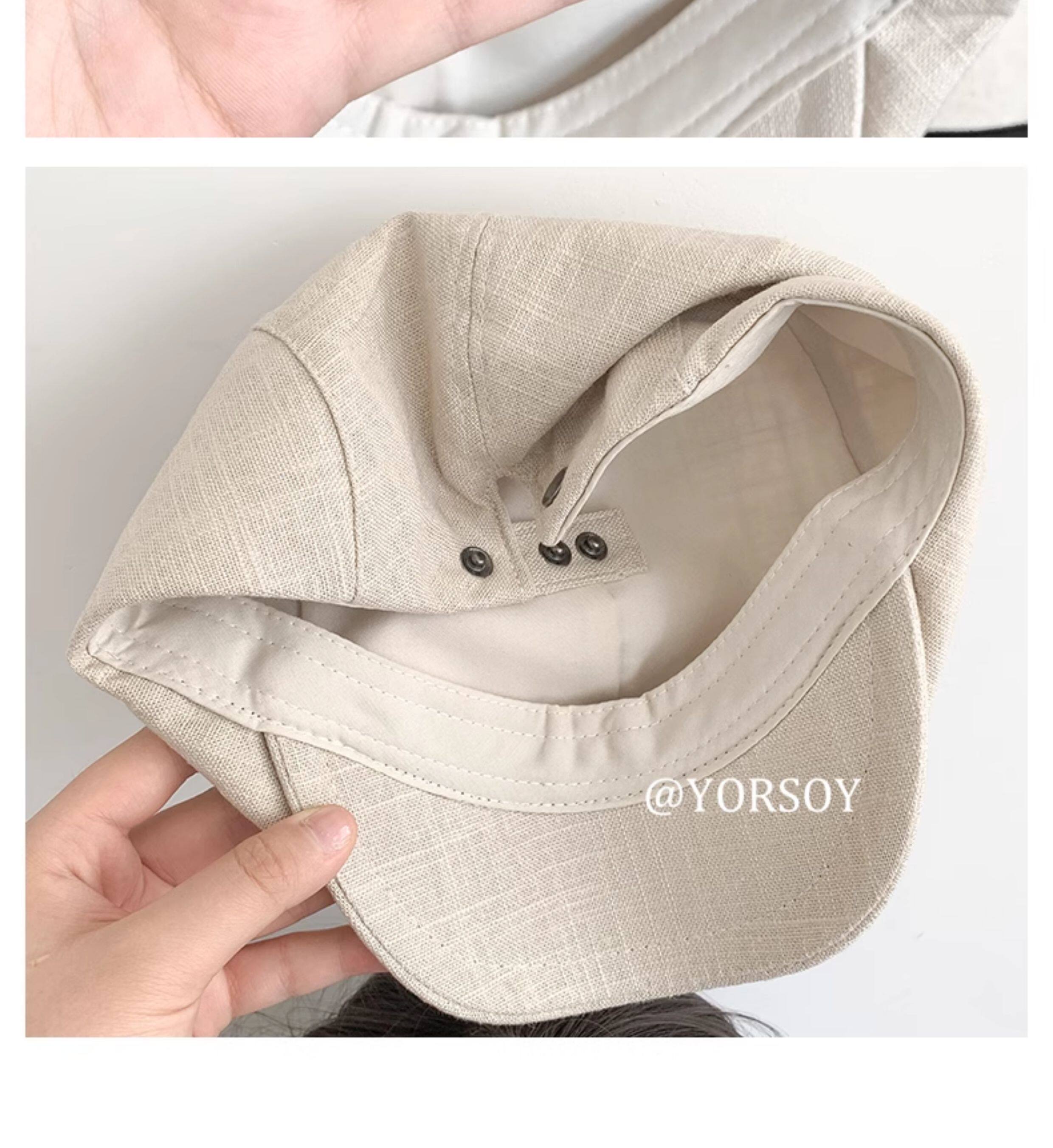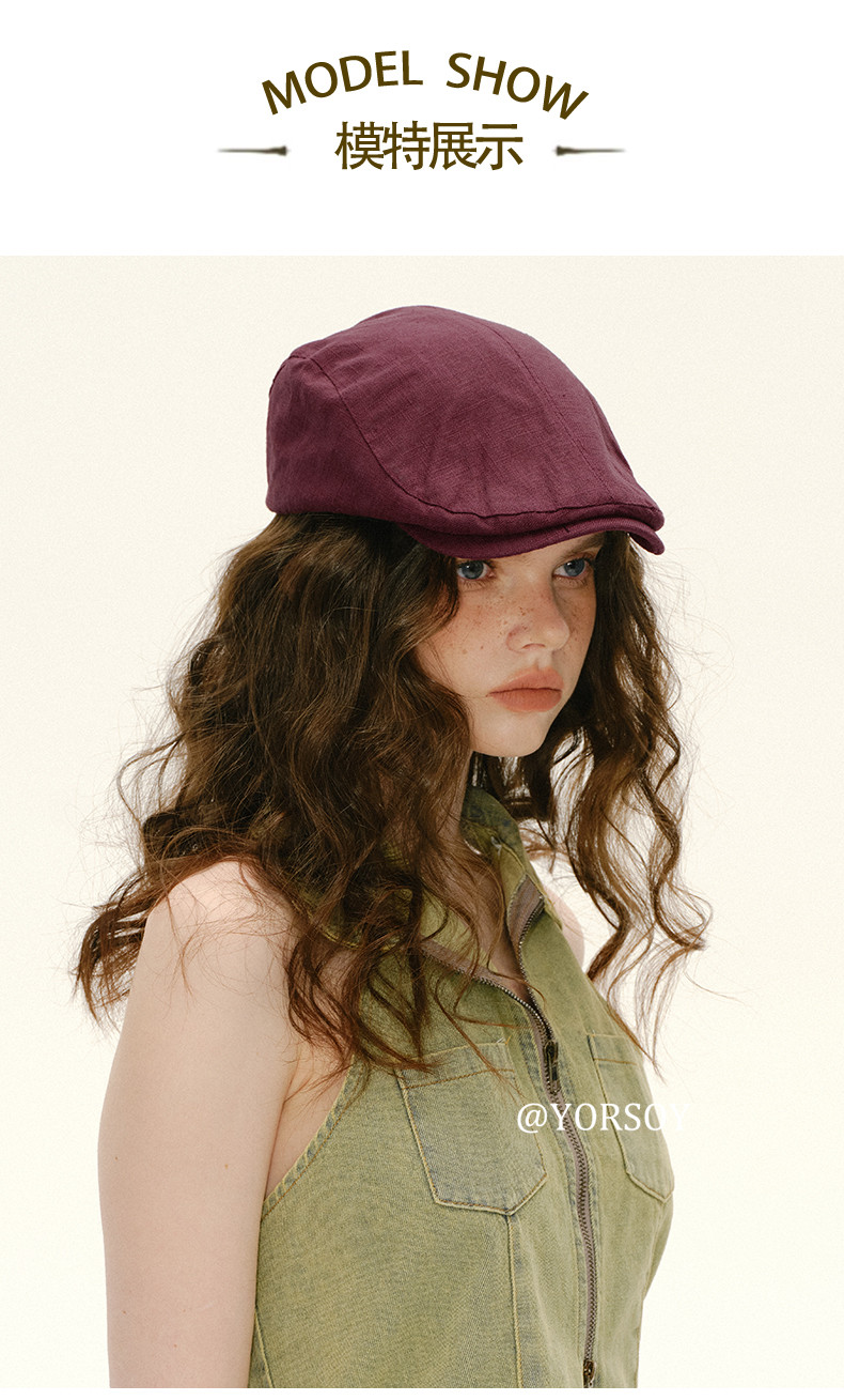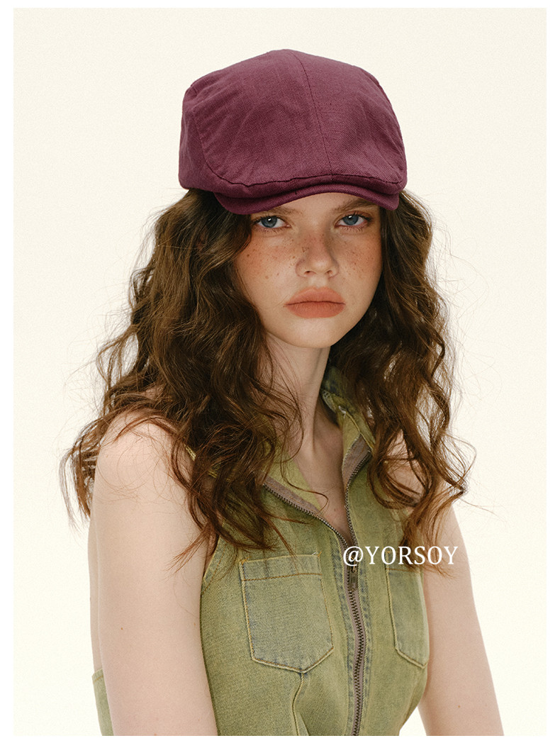 Retro White-Red Peaked Cap for Women, Summer Thin Cotton and Linen Street Newsboy Cap, Large Head Beret