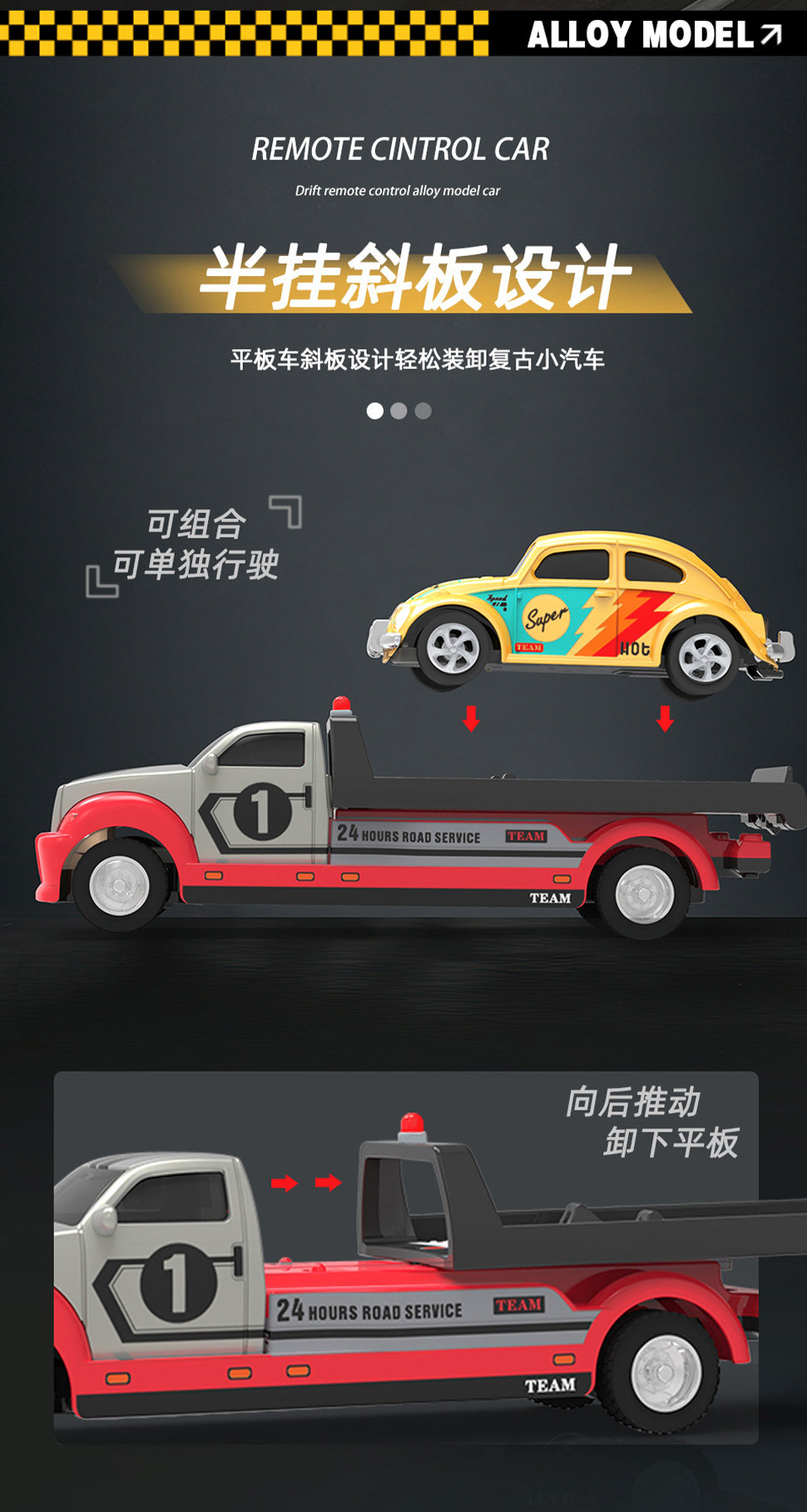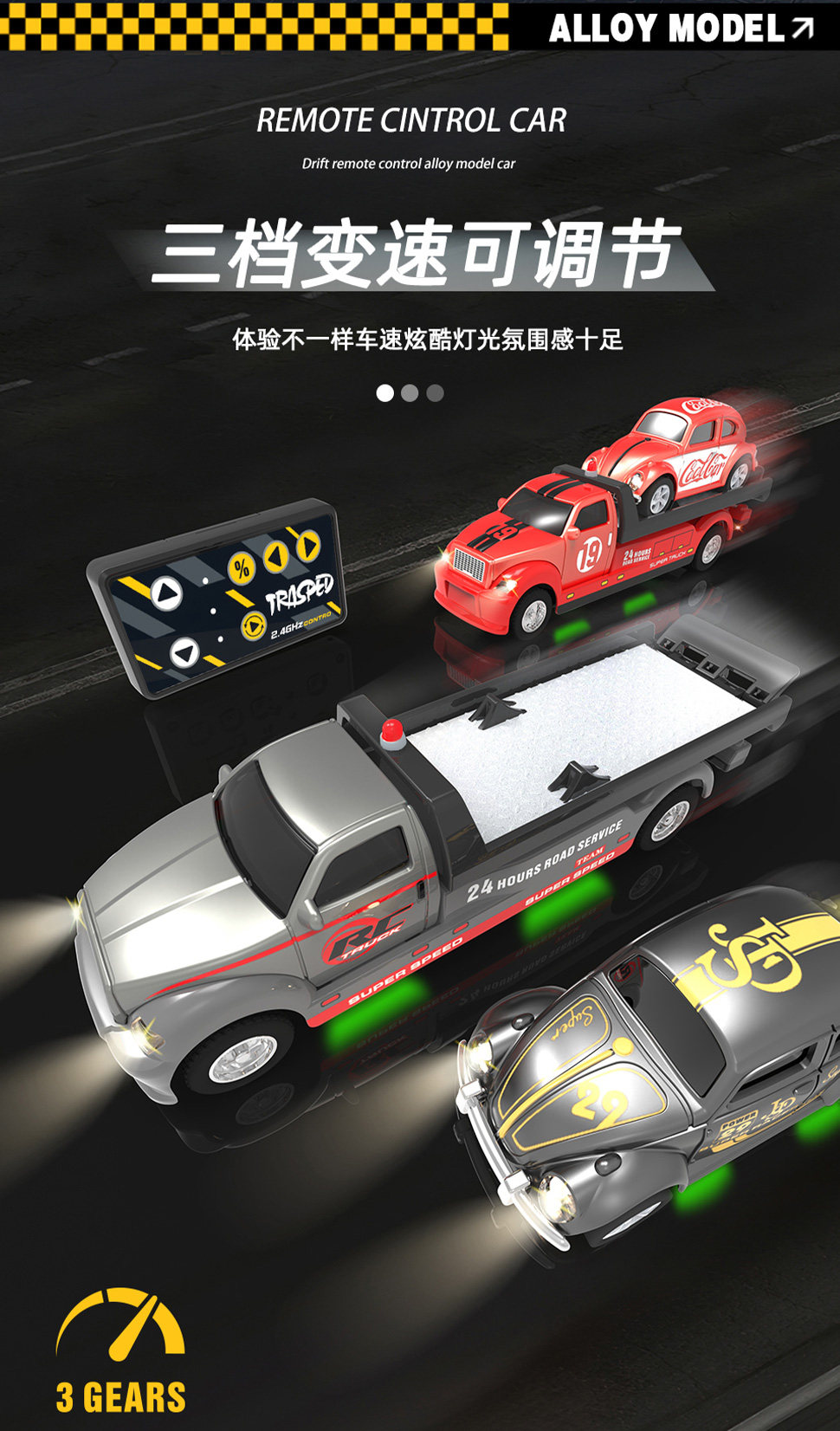 Children's mini alloy bluetooth remote control car flatbed trailer boy professional rc competition road rescue toy car